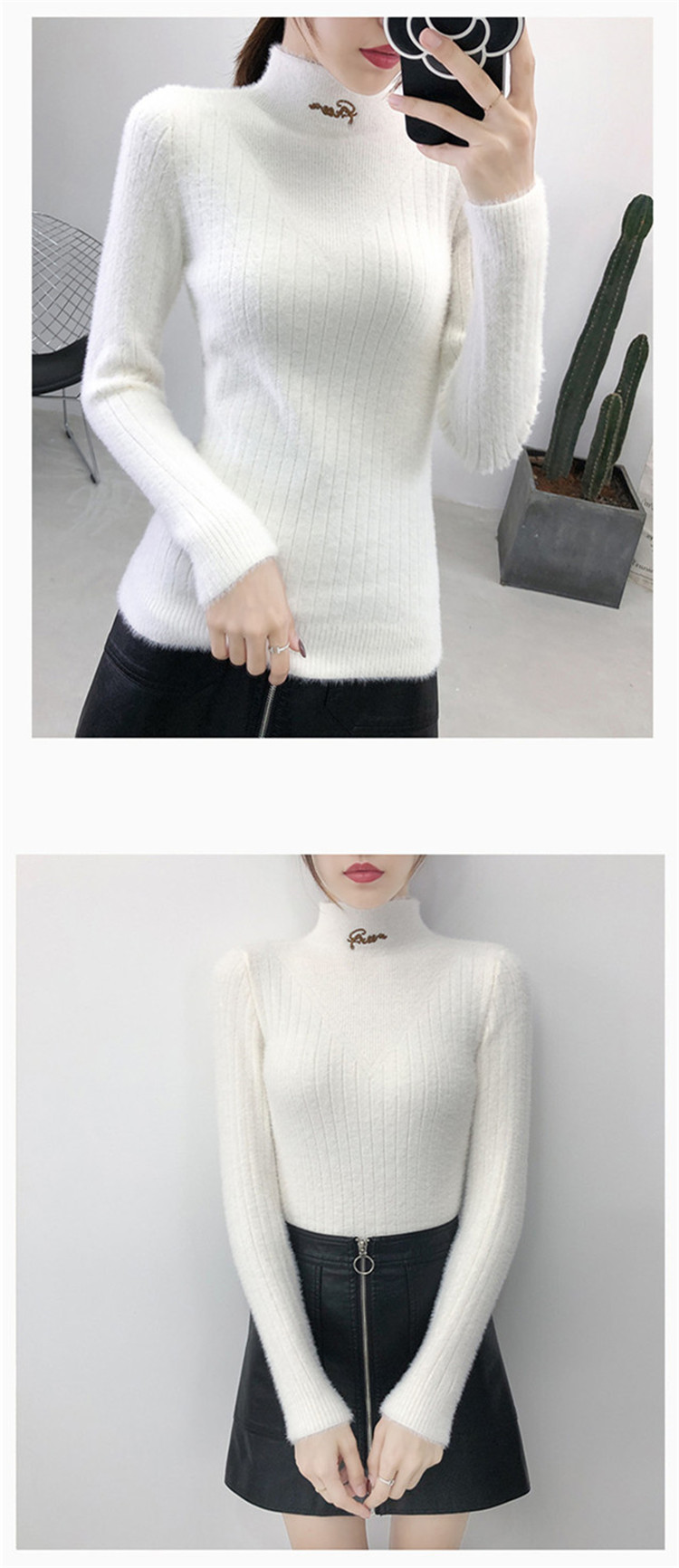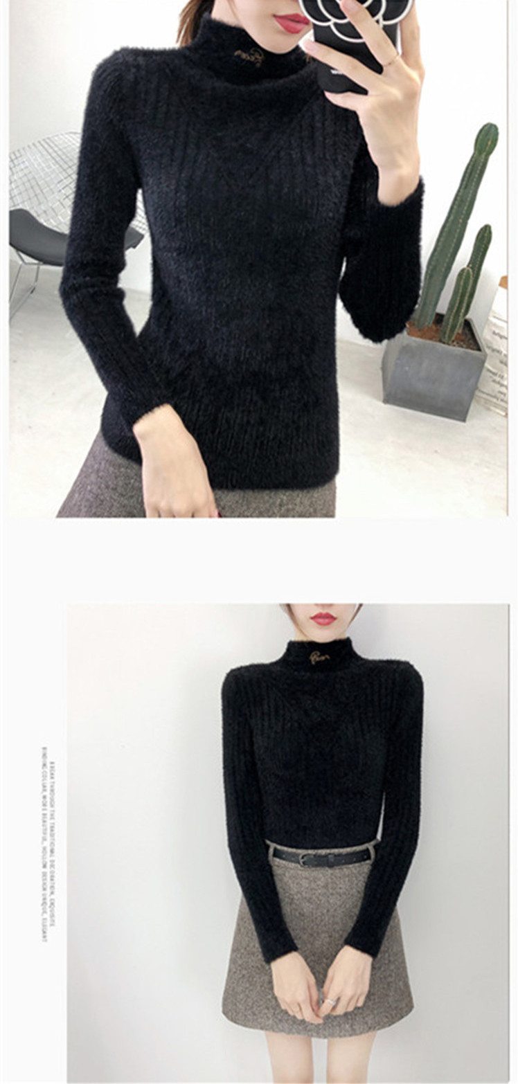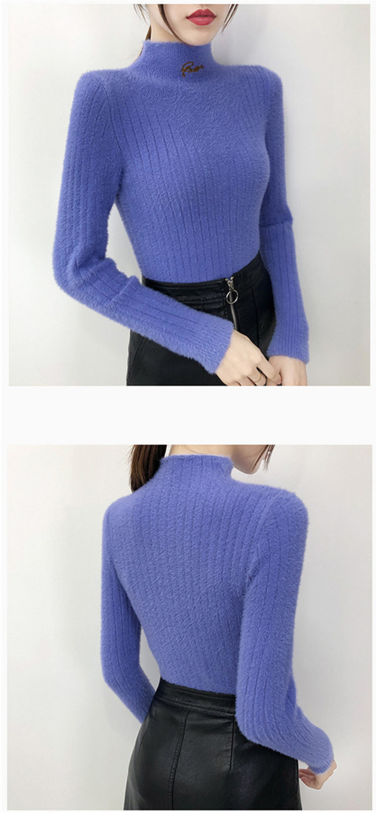 TZW-仿水貂绒毛衣洋气短款内搭半高领打底衫
