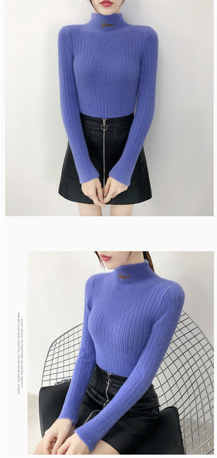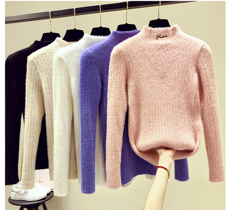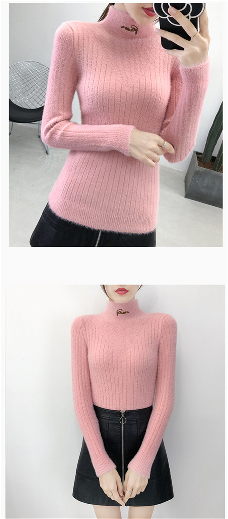TZW-仿水貂绒毛衣洋气短款内搭半高领打底衫