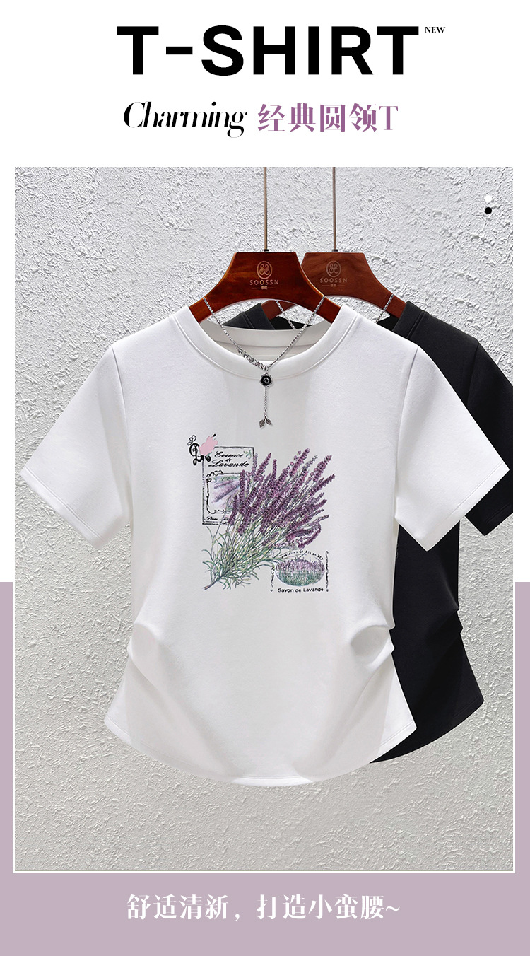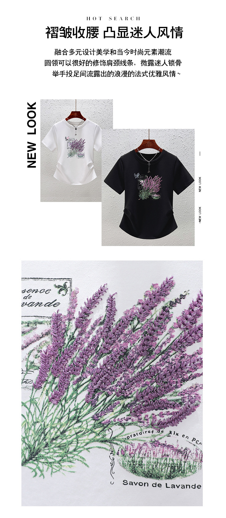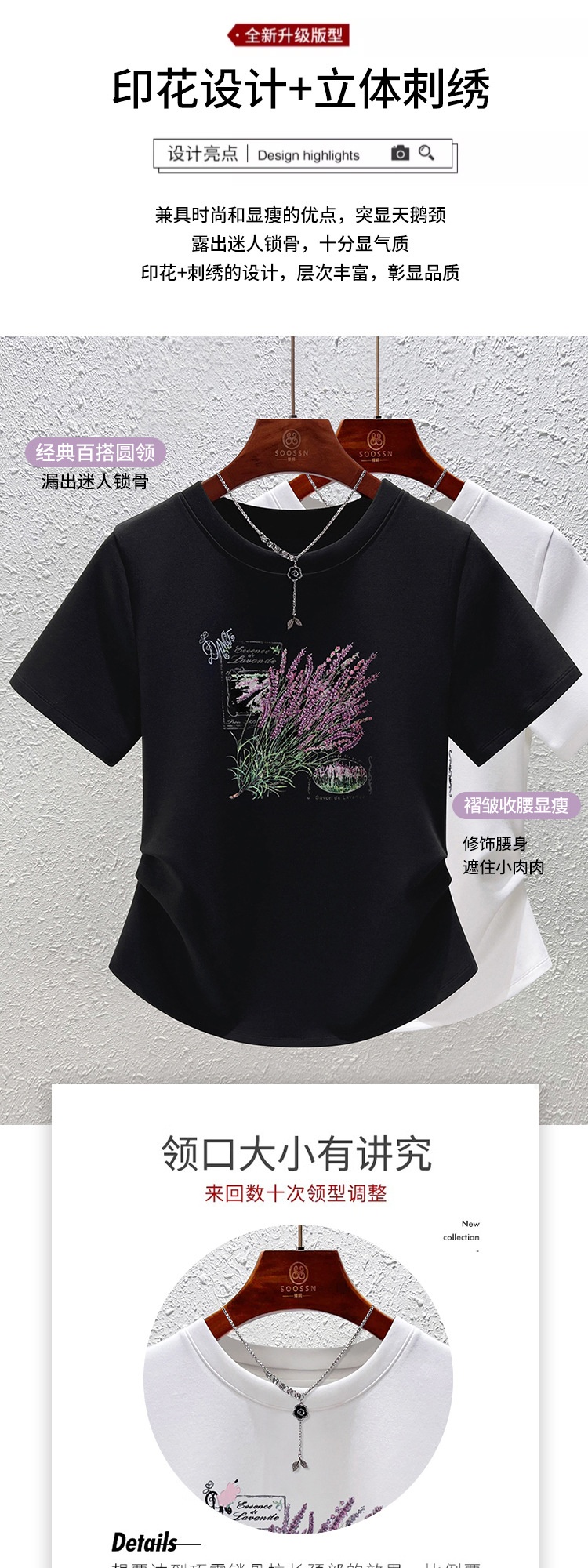 「自」全新升级【铂金会员119/天猫159/差价40】(11638)洛诗琳气质印花圆领T恤2025夏季新款重工刺绣收腰短袖上衣女