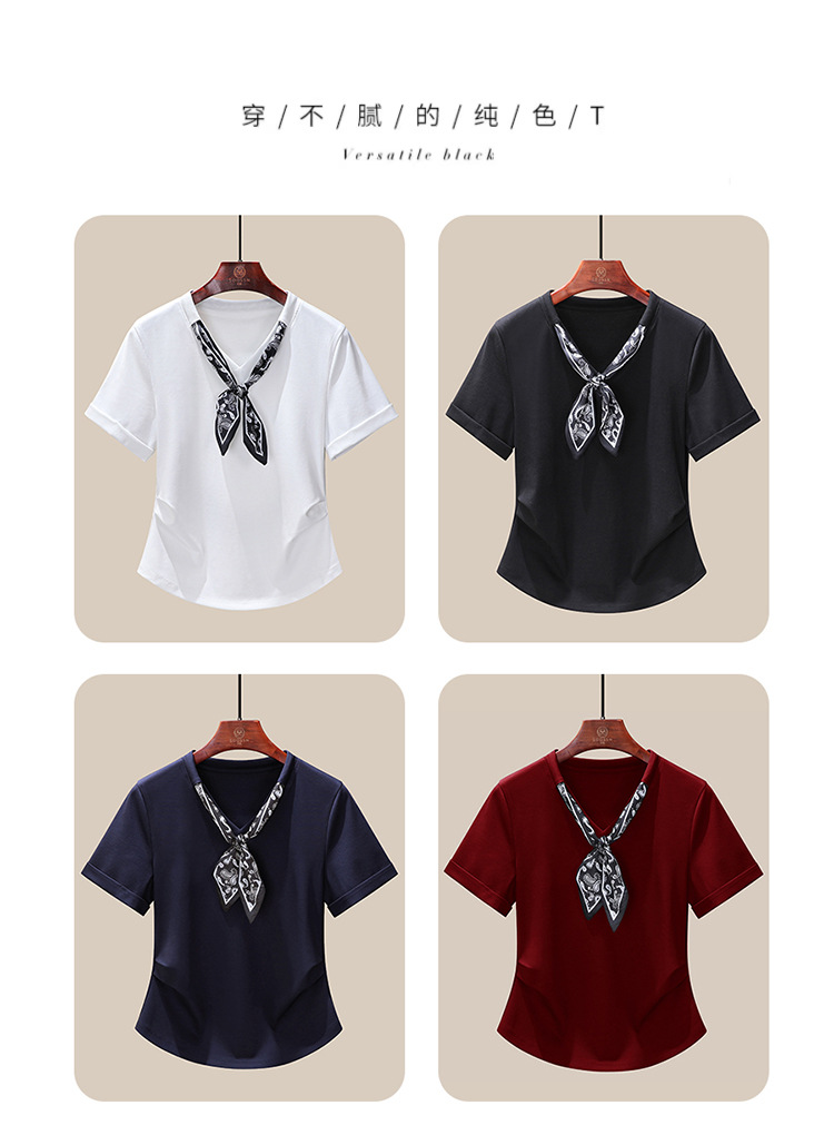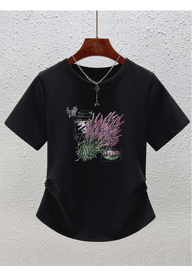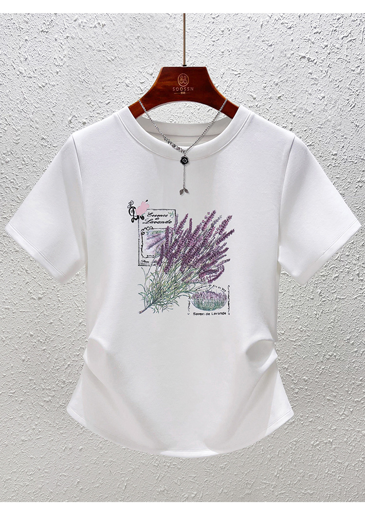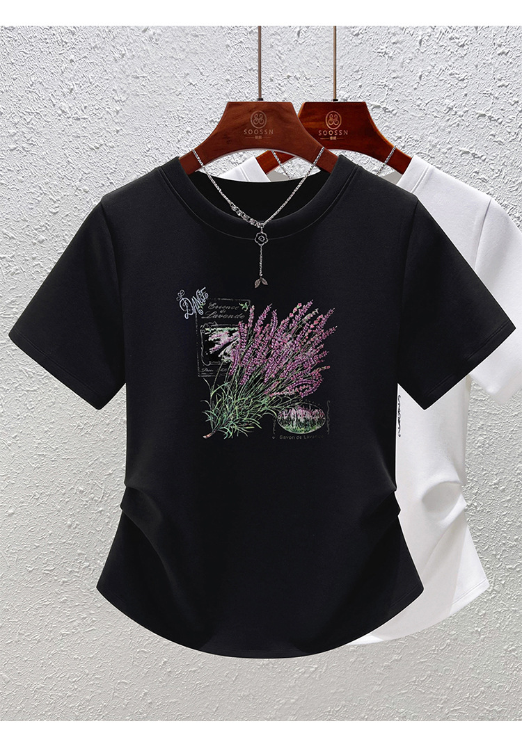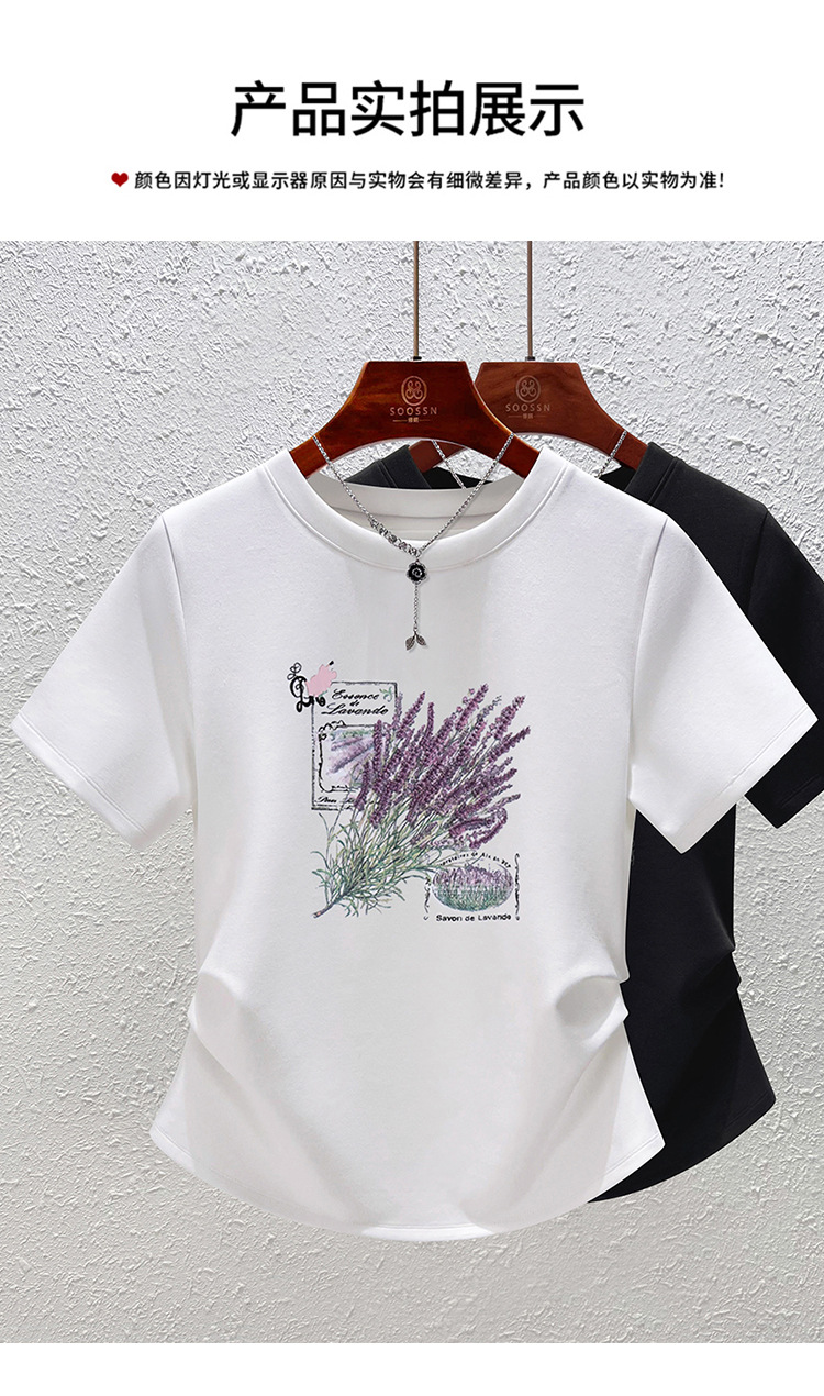 「自」全新升级【铂金会员119/天猫159/差价40】(11638)洛诗琳气质印花圆领T恤2025夏季新款重工刺绣收腰短袖上衣女