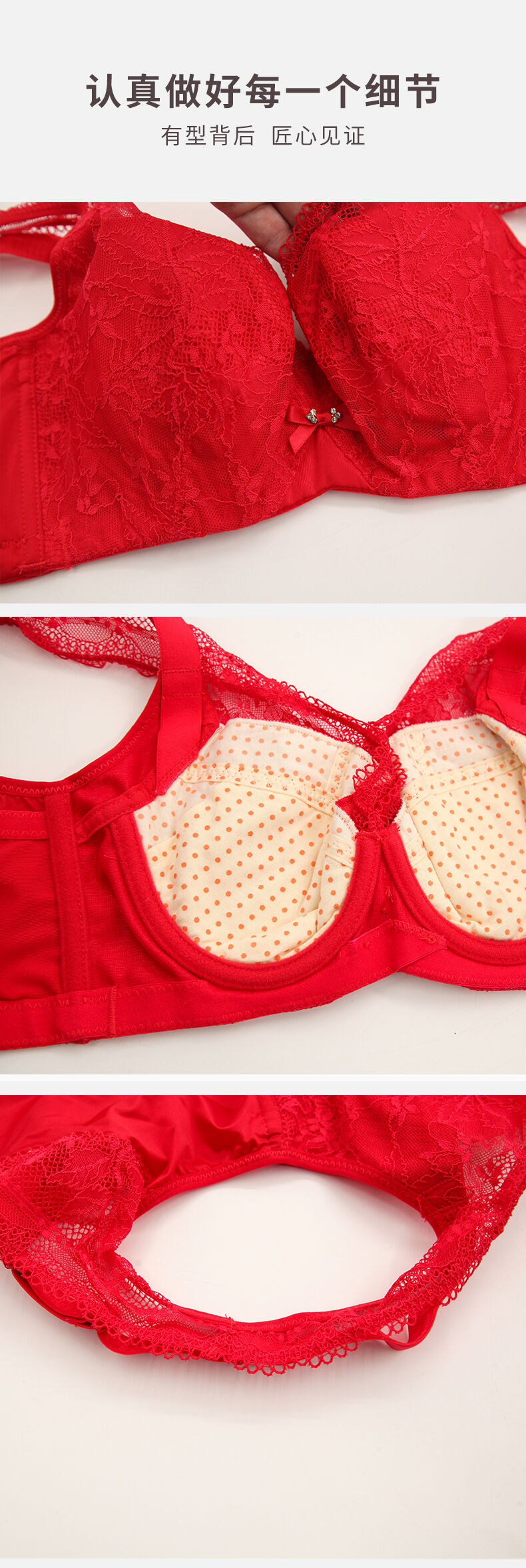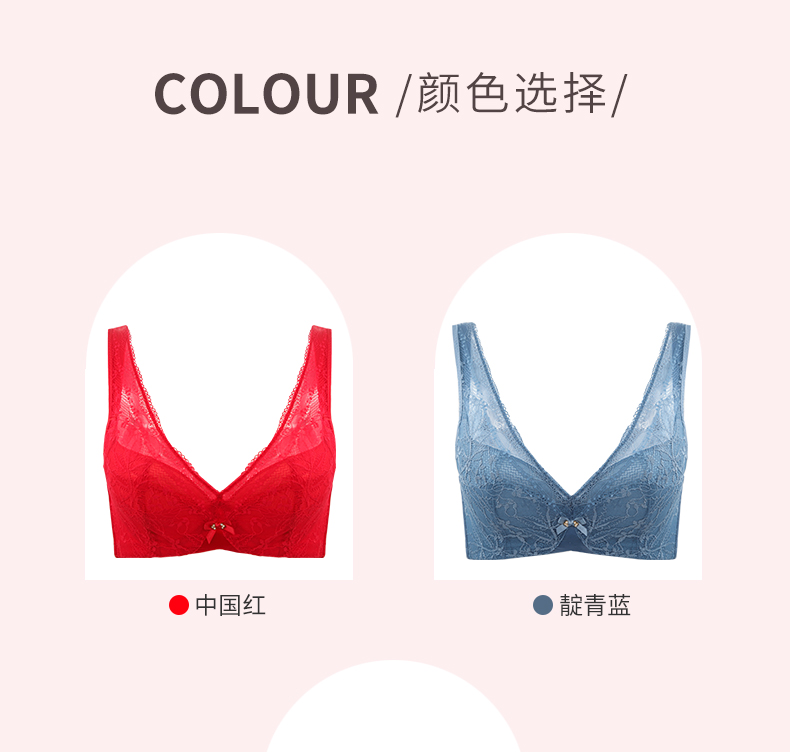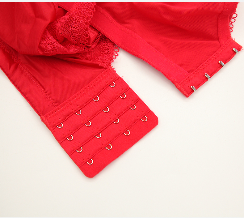 贝佳人新品全罩红色内衣女大胸显小背心式深V蕾丝花边文胸本命年