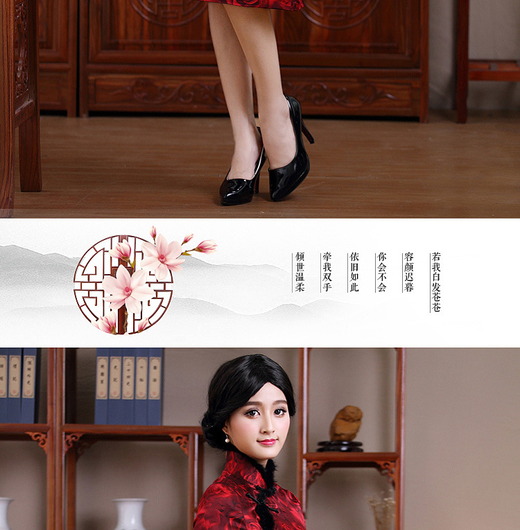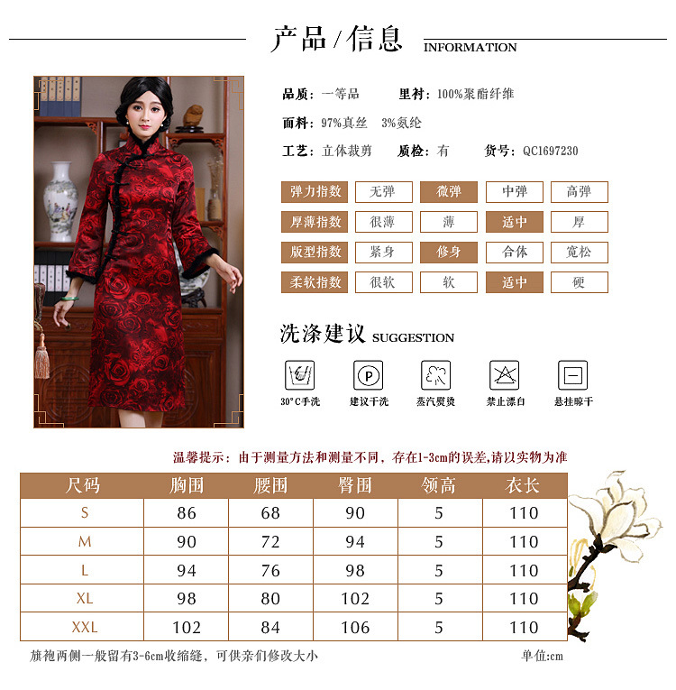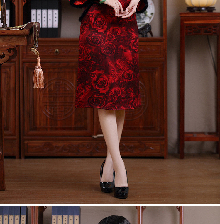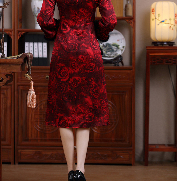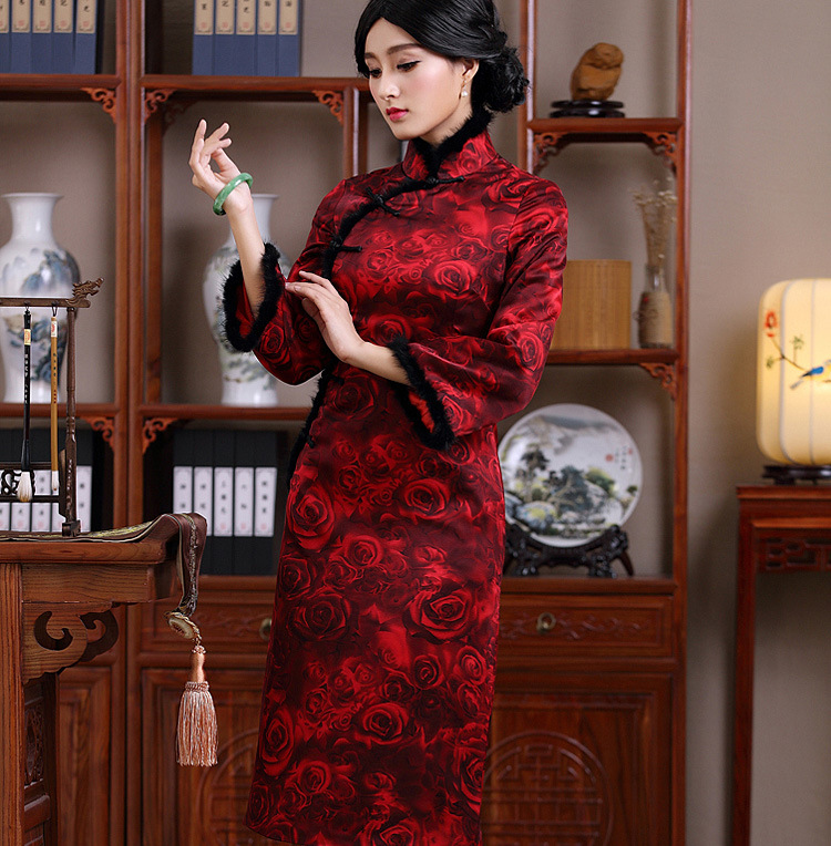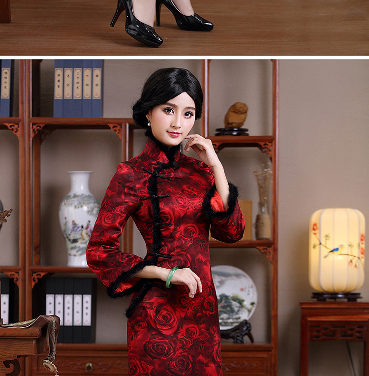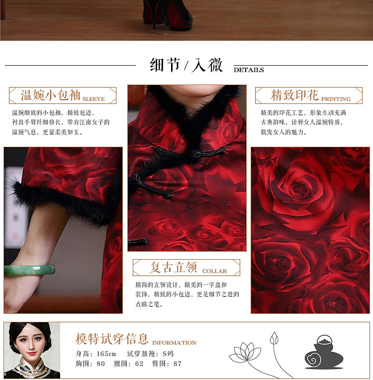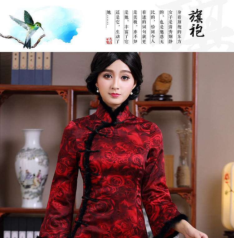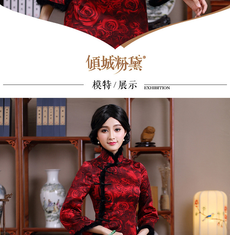 QC1697230 真丝旗袍加厚保暖夹棉毛领