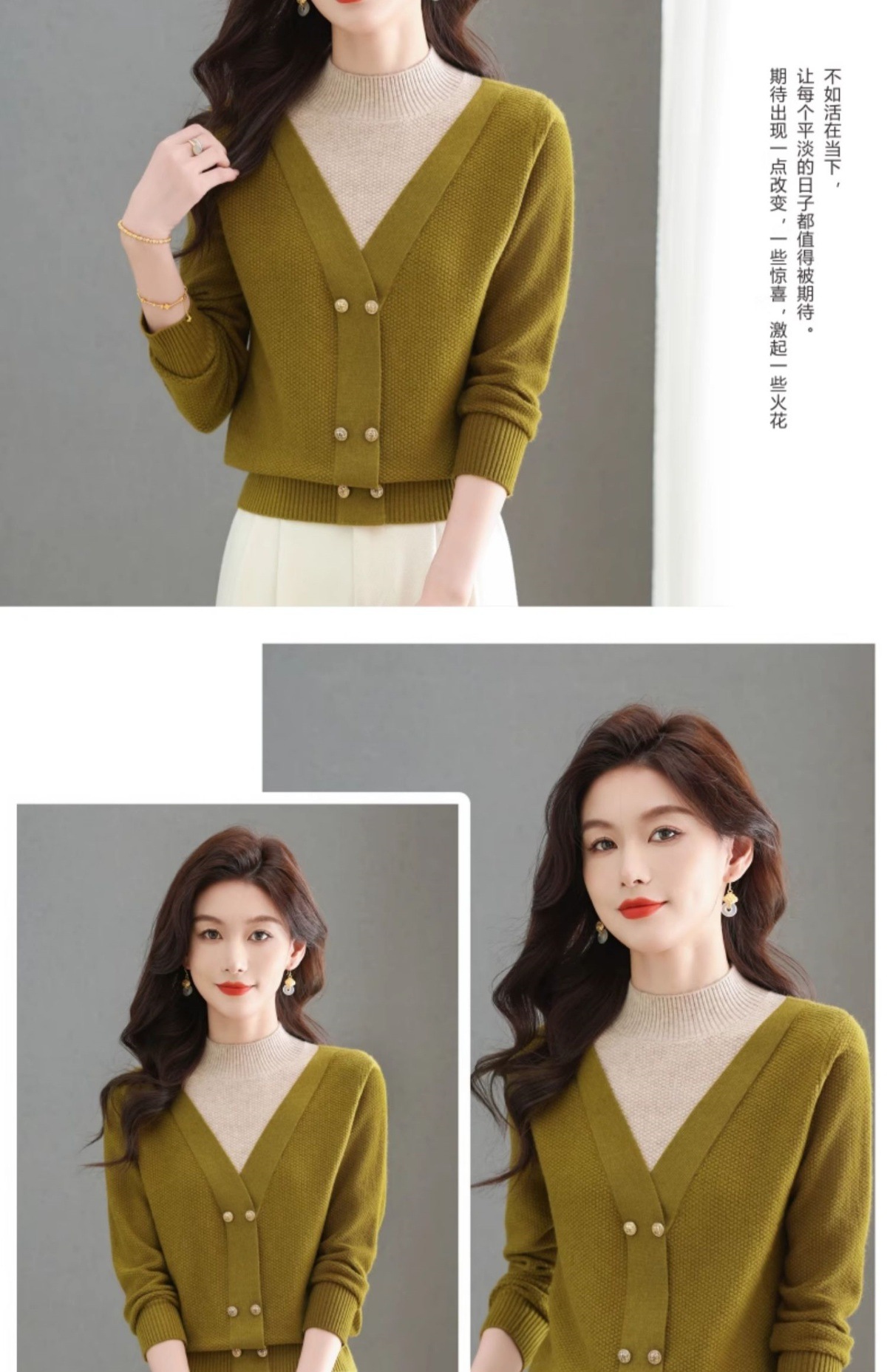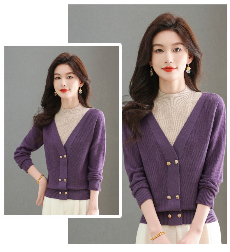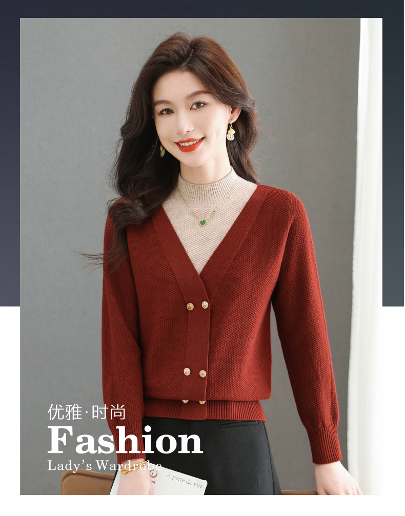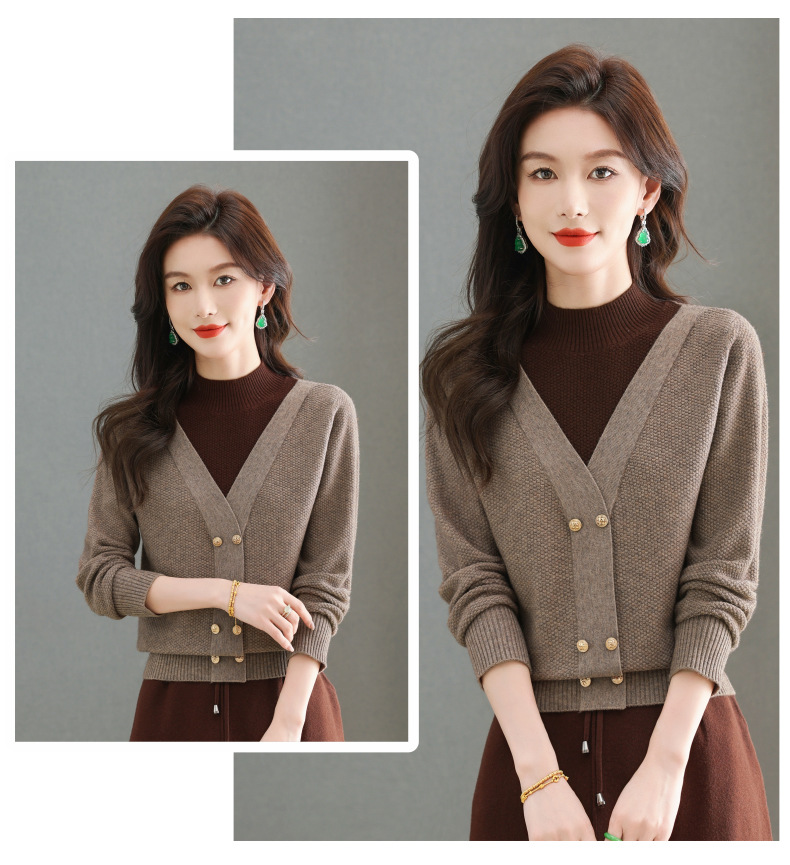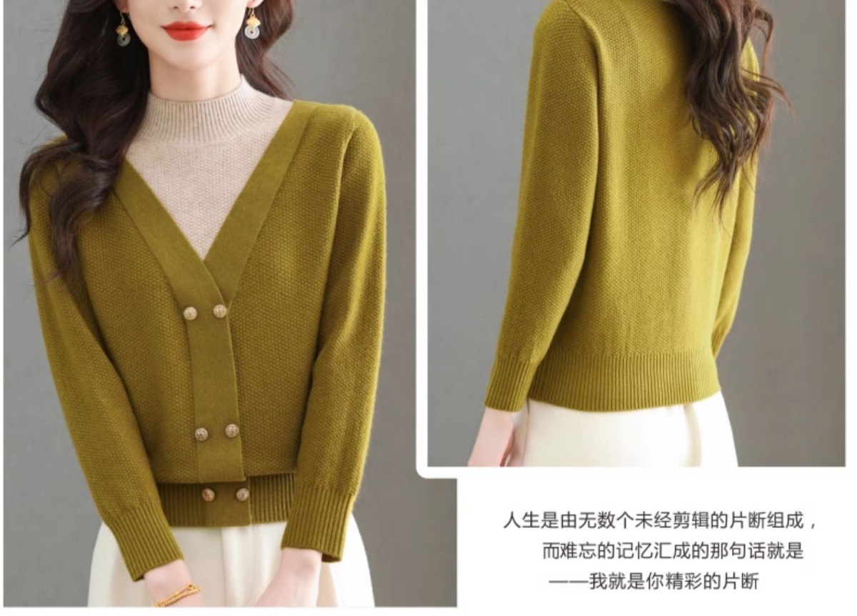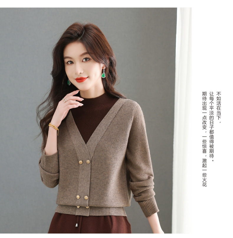 CC-101-98968假两件针织打底衫女士上衣秋冬新款半高领好看洋气厚毛衣女