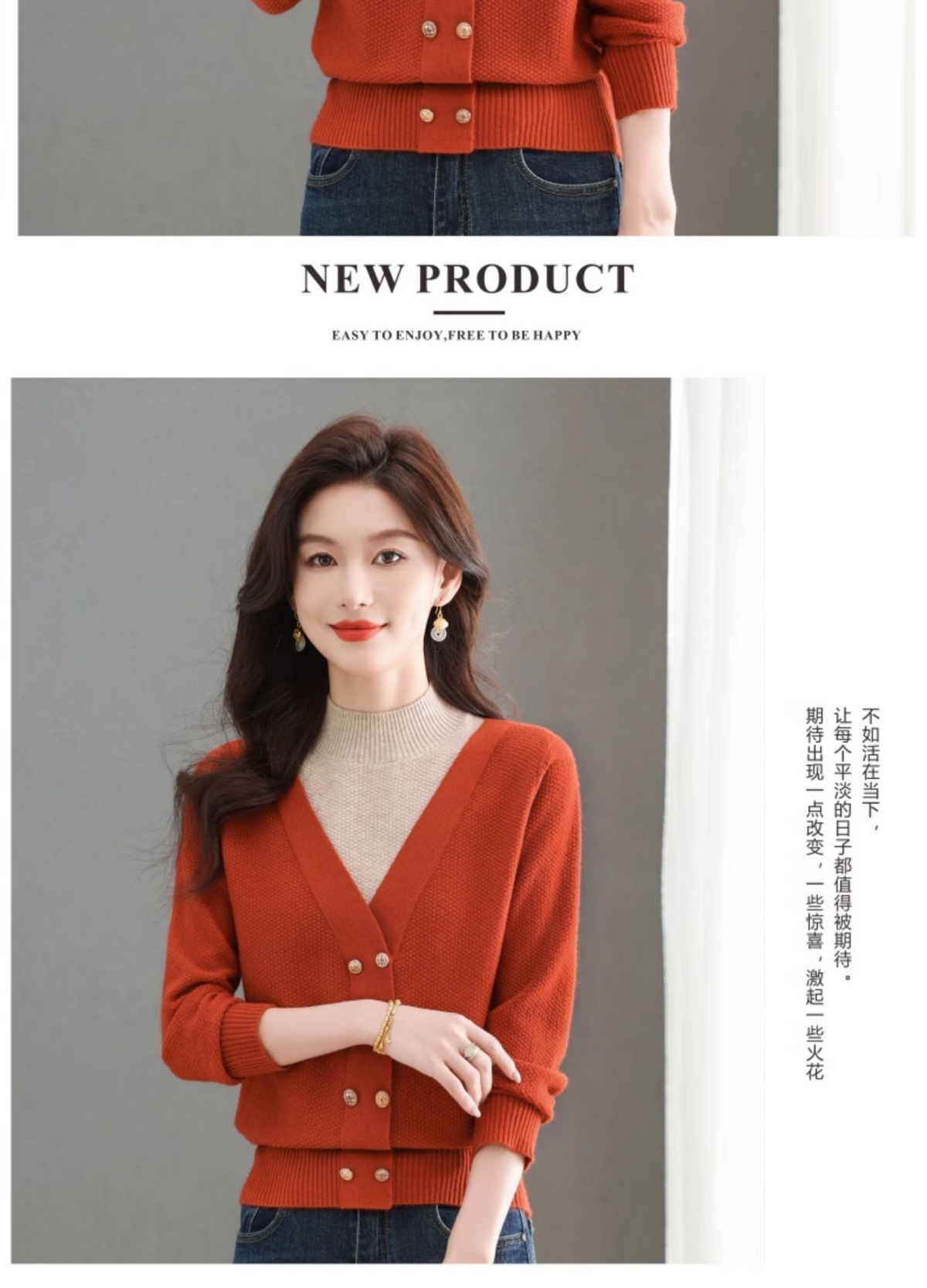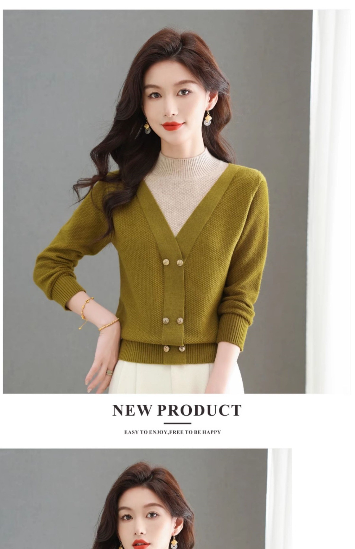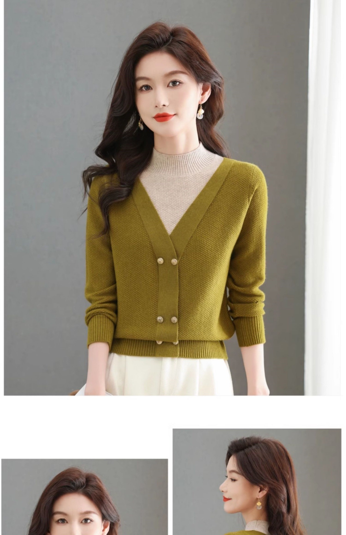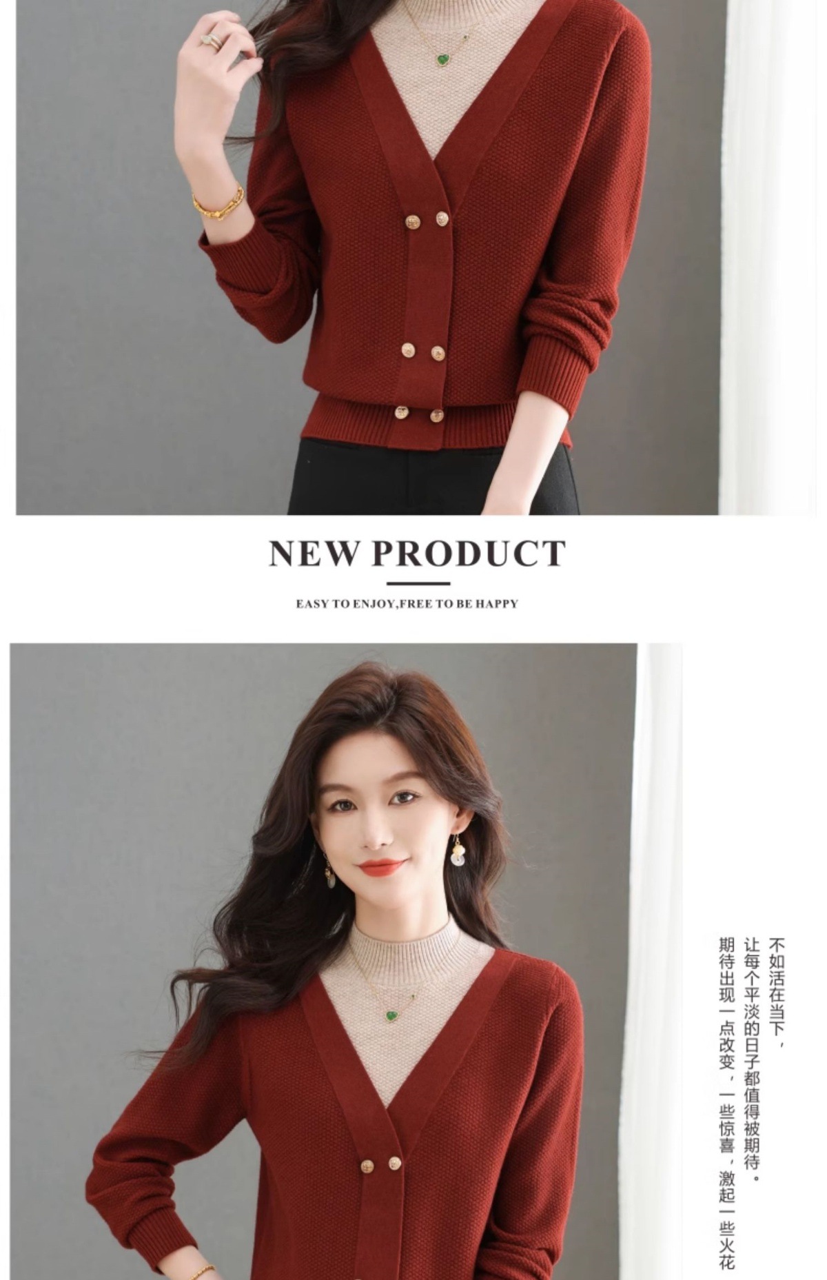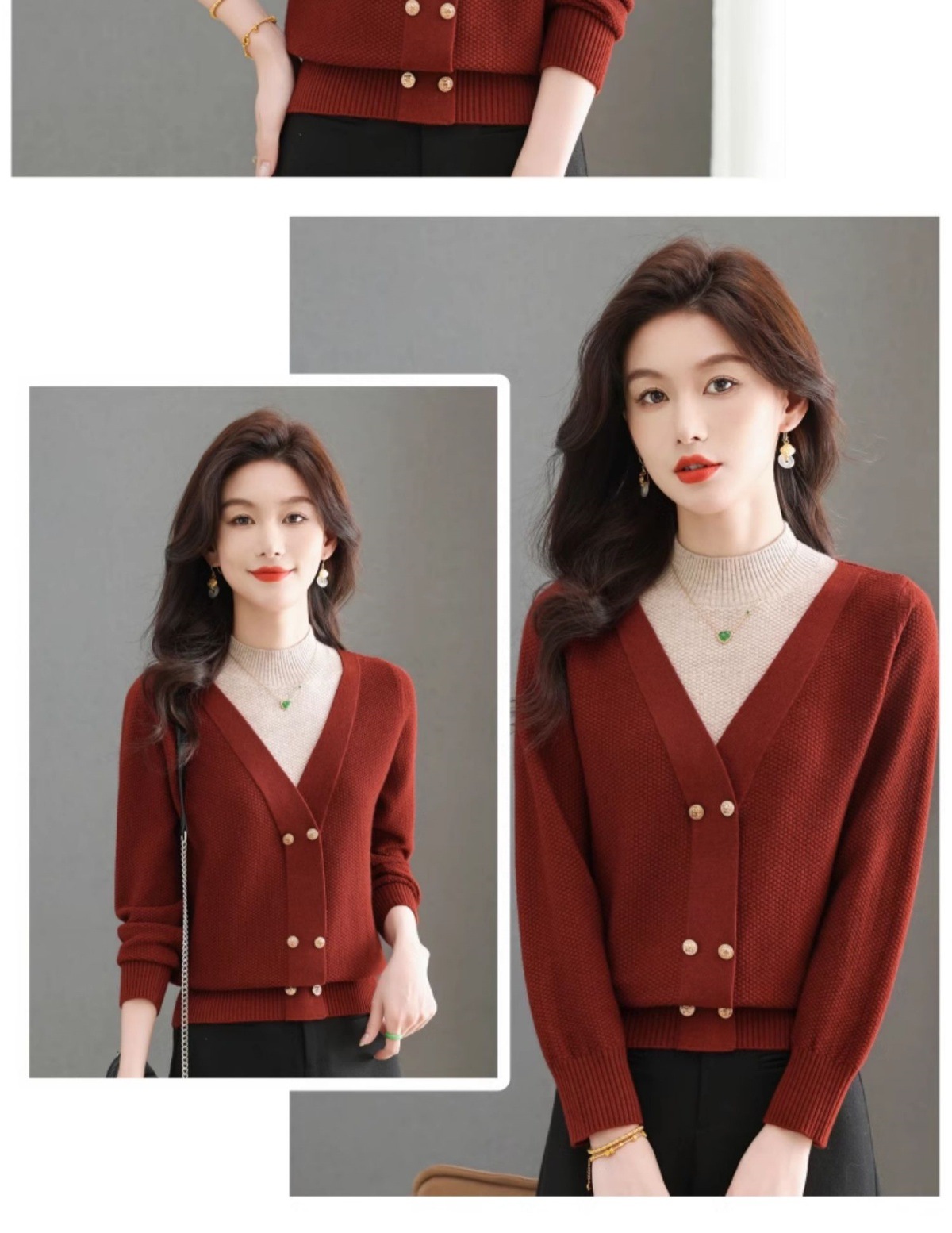CC-101-98968假两件针织打底衫女士上衣秋冬新款半高领好看洋气厚毛衣女