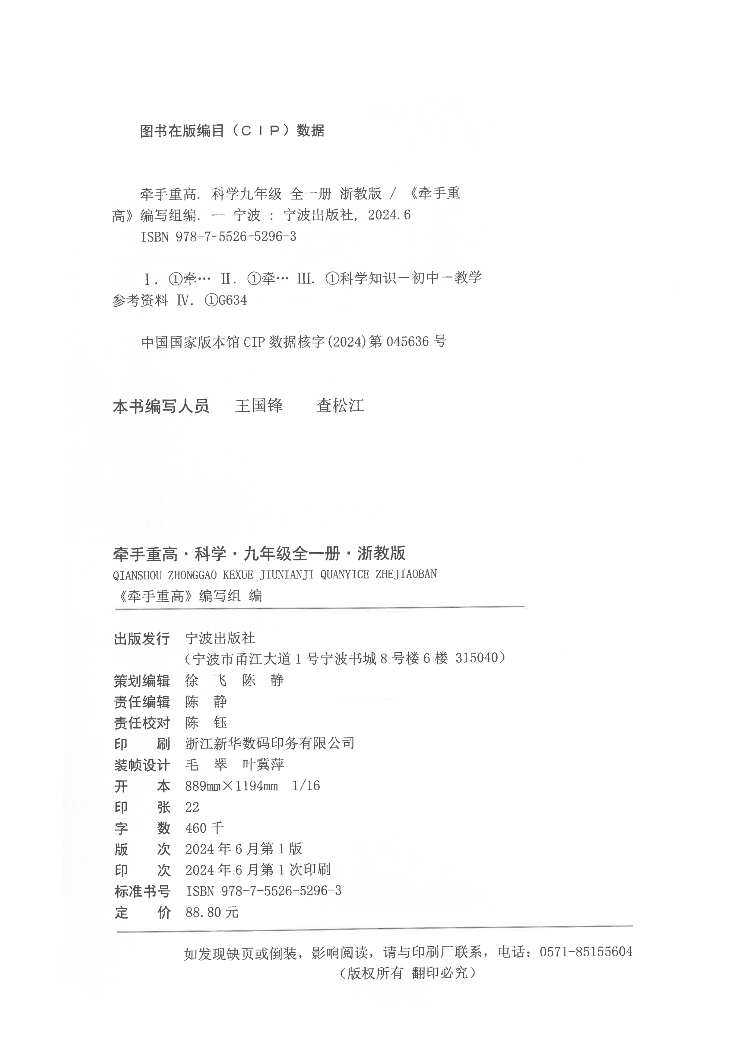 牵手重高 科学九年级全一册 浙教版