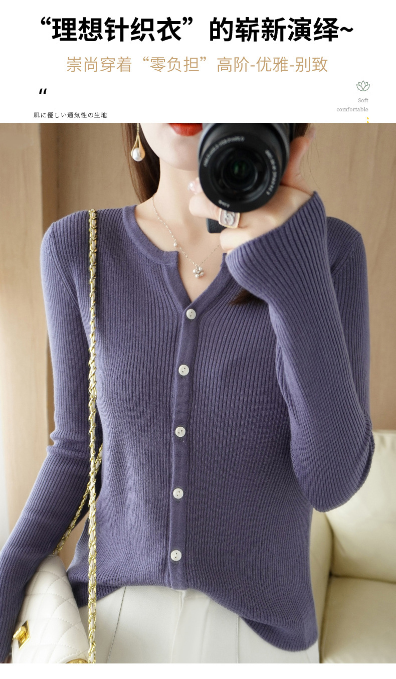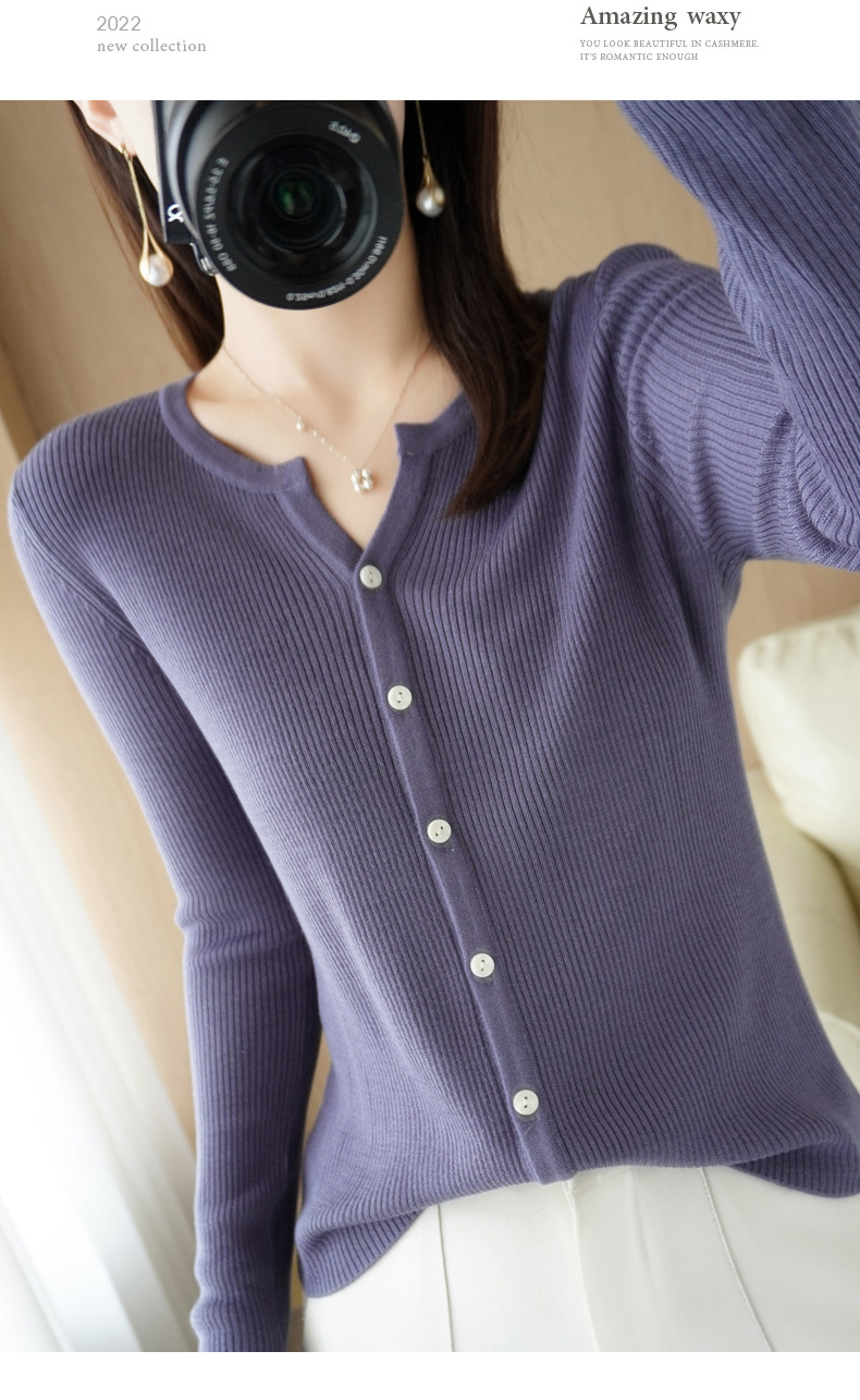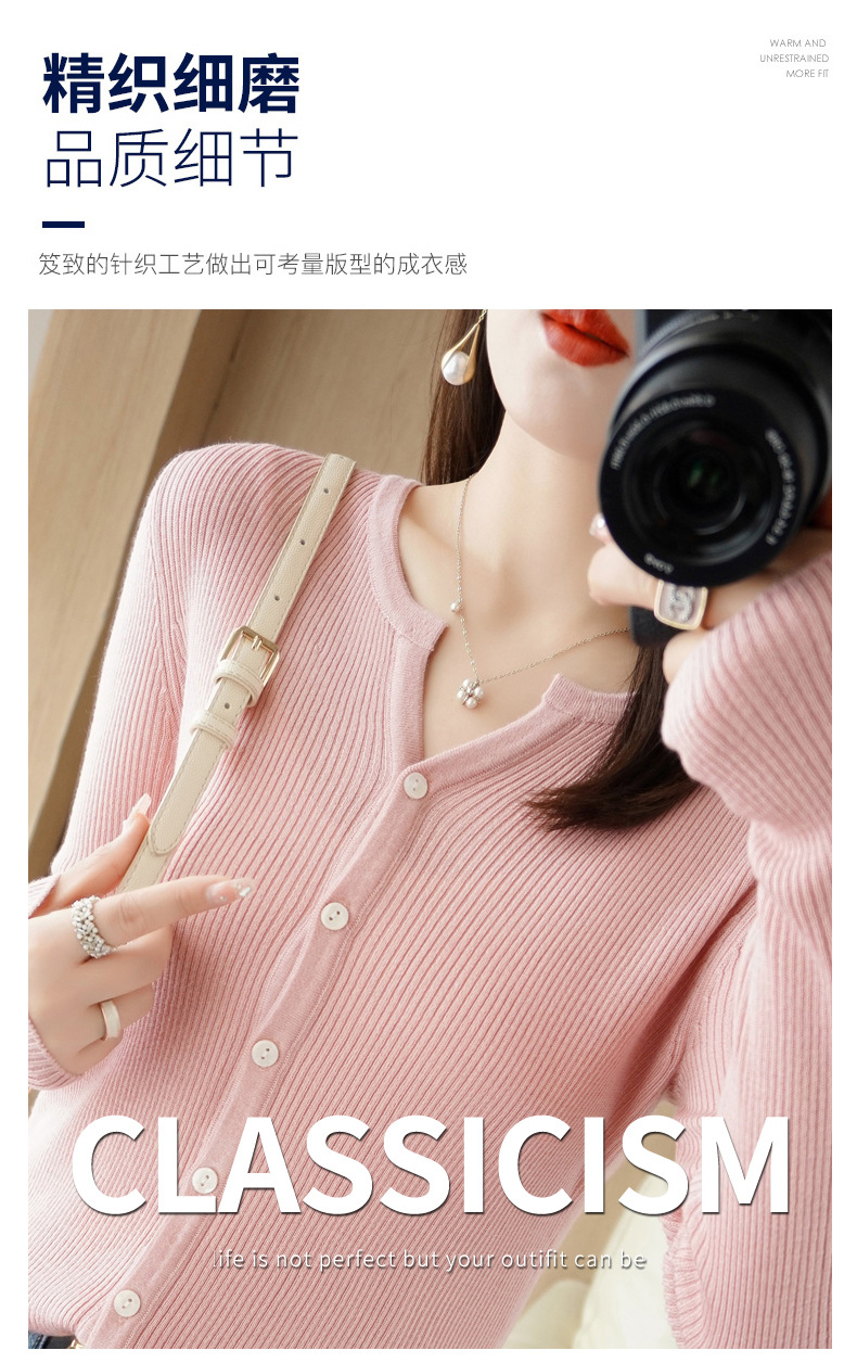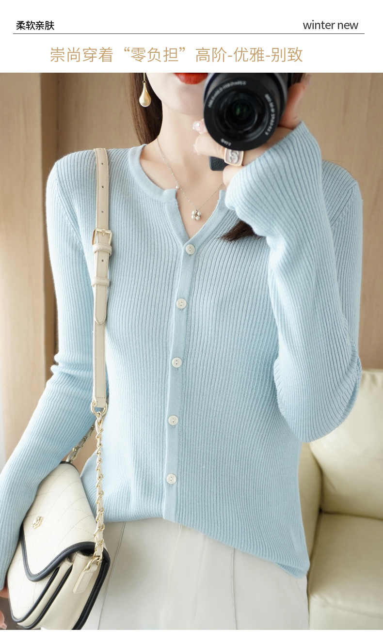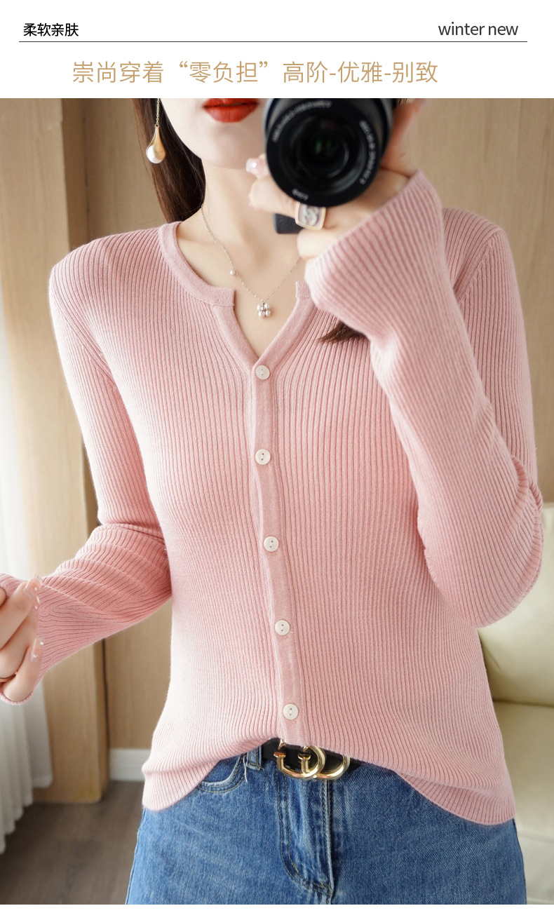 QHJY-JYCT2282小V圆领开衫秋季新款韩版打底衫抽条修身内搭外穿针织衫毛衣外套