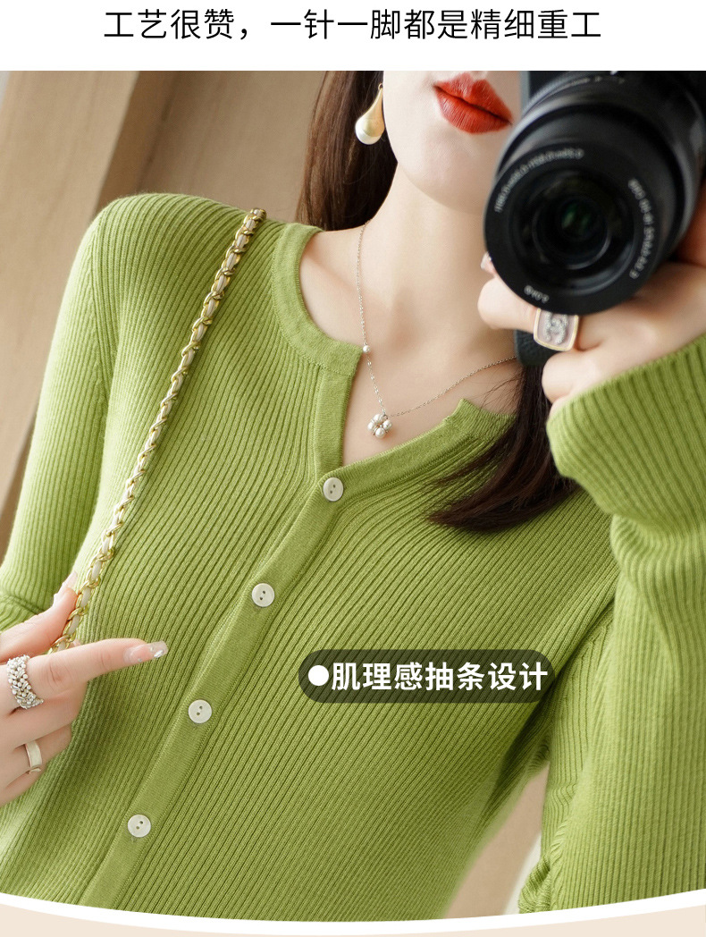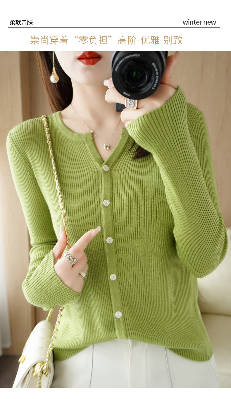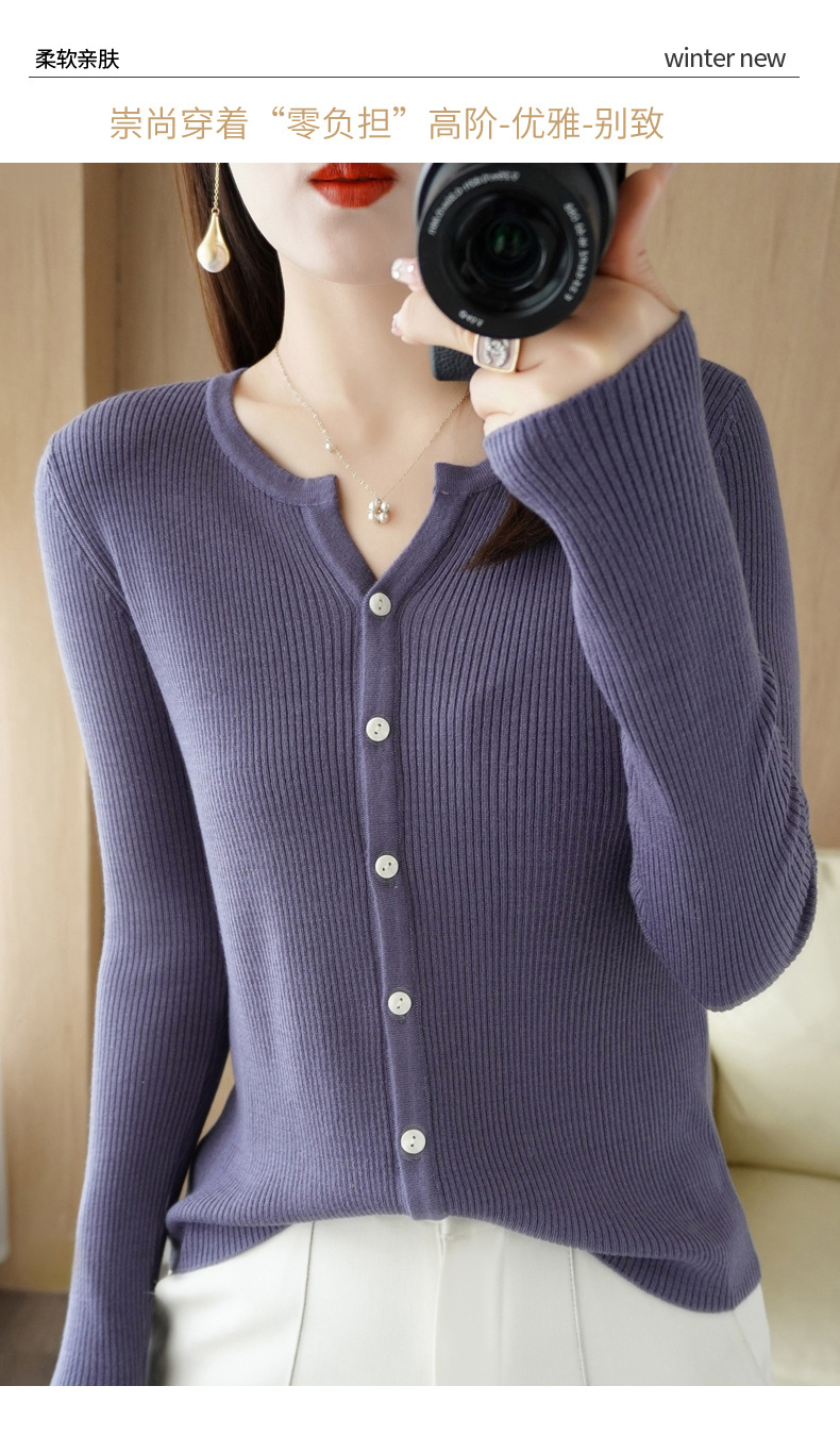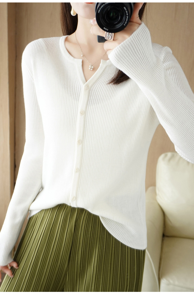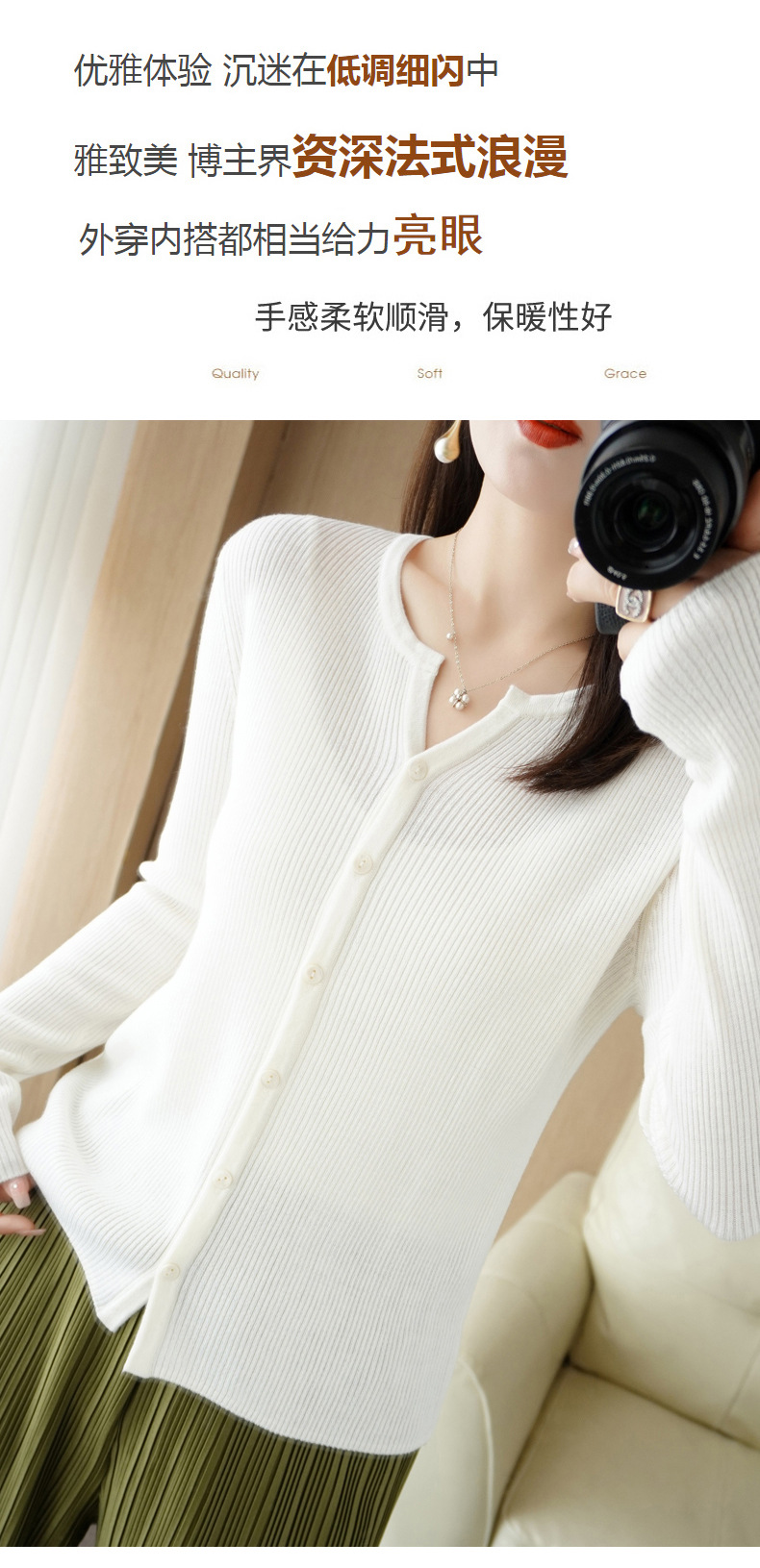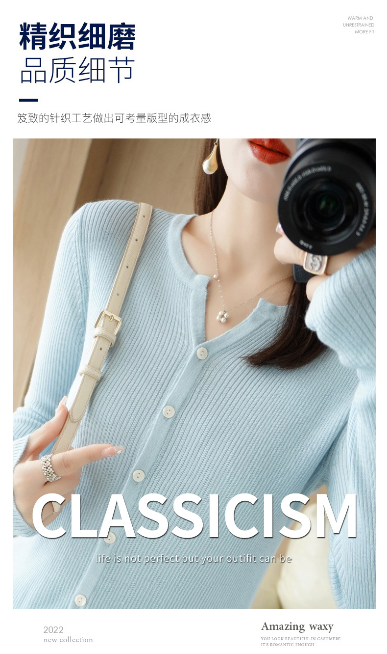 QHJY-JYCT2282小V圆领开衫秋季新款韩版打底衫抽条修身内搭外穿针织衫毛衣外套