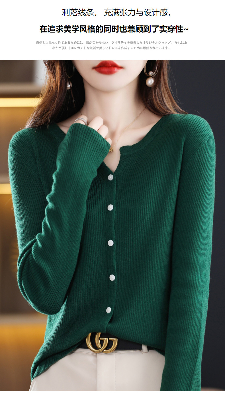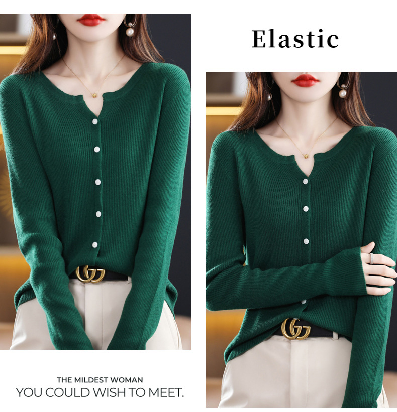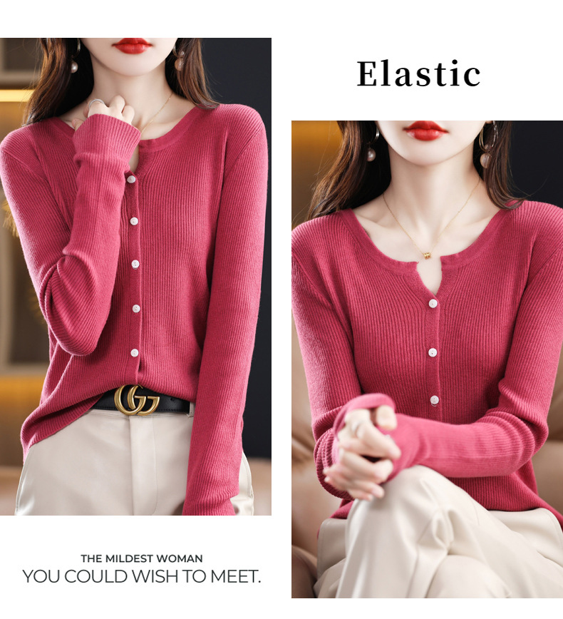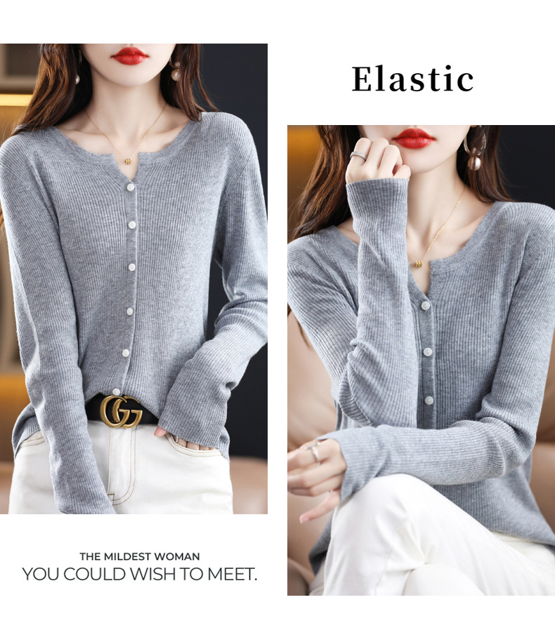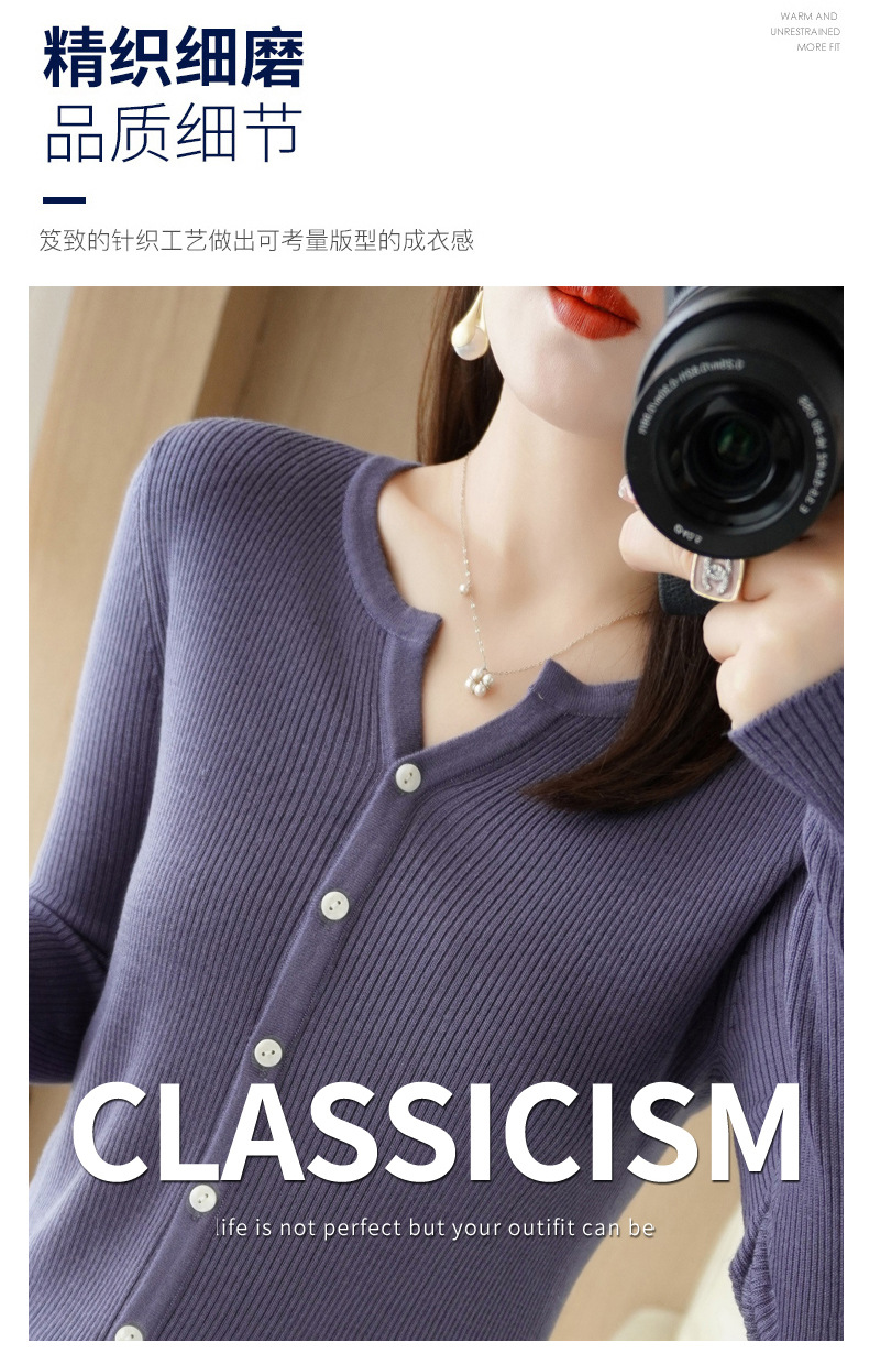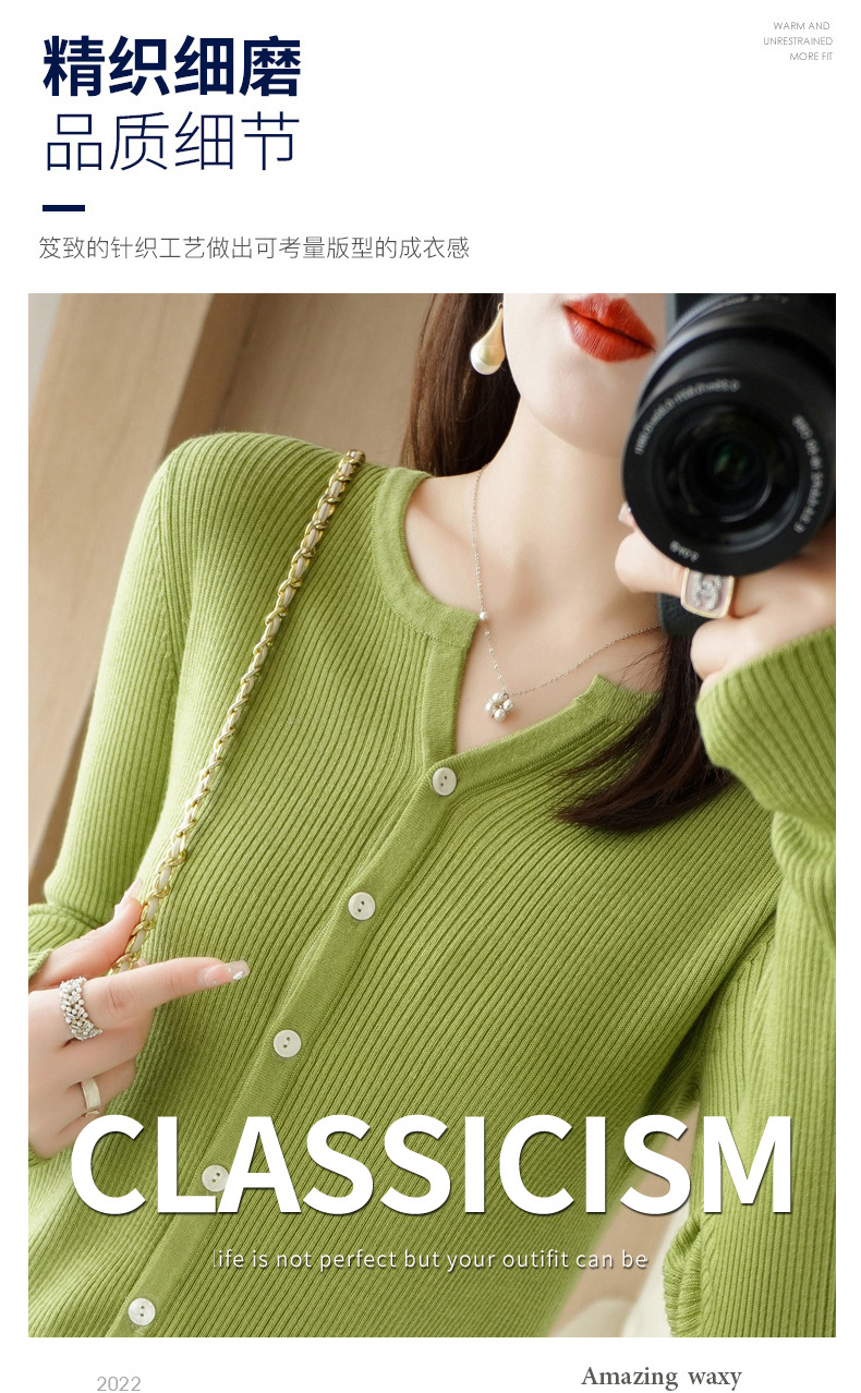 QHJY-JYCT2282小V圆领开衫秋季新款韩版打底衫抽条修身内搭外穿针织衫毛衣外套