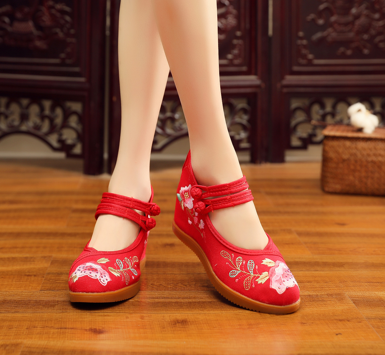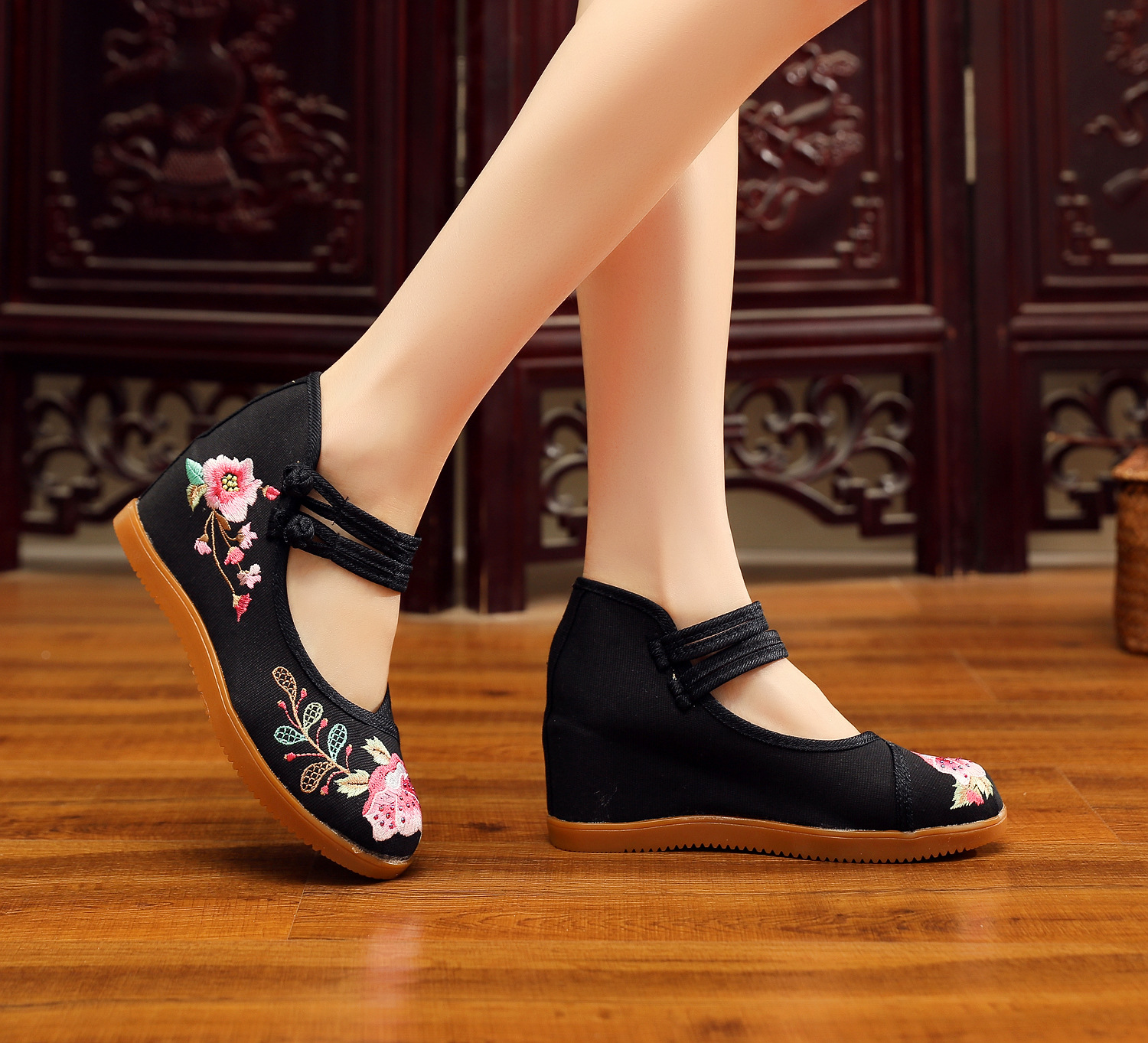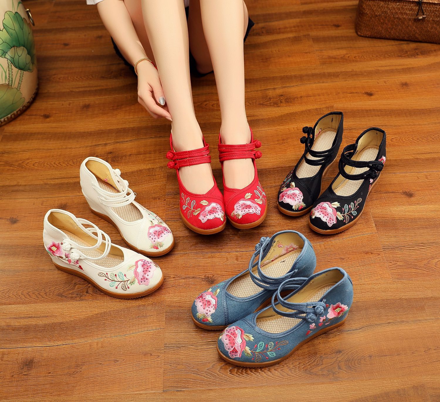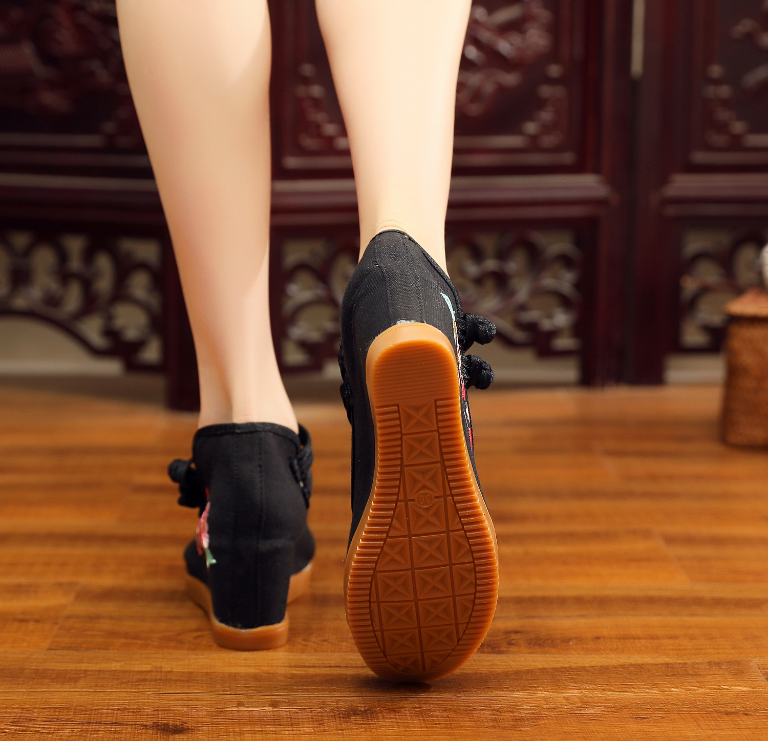 LF-858-1新款国色天香绣花布鞋民族风牛筋底内增高广场舞蹈妈妈单鞋WY