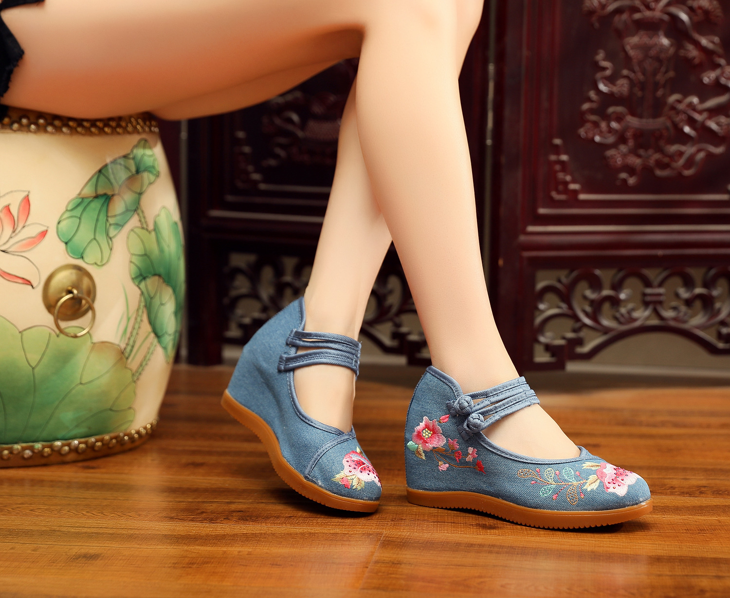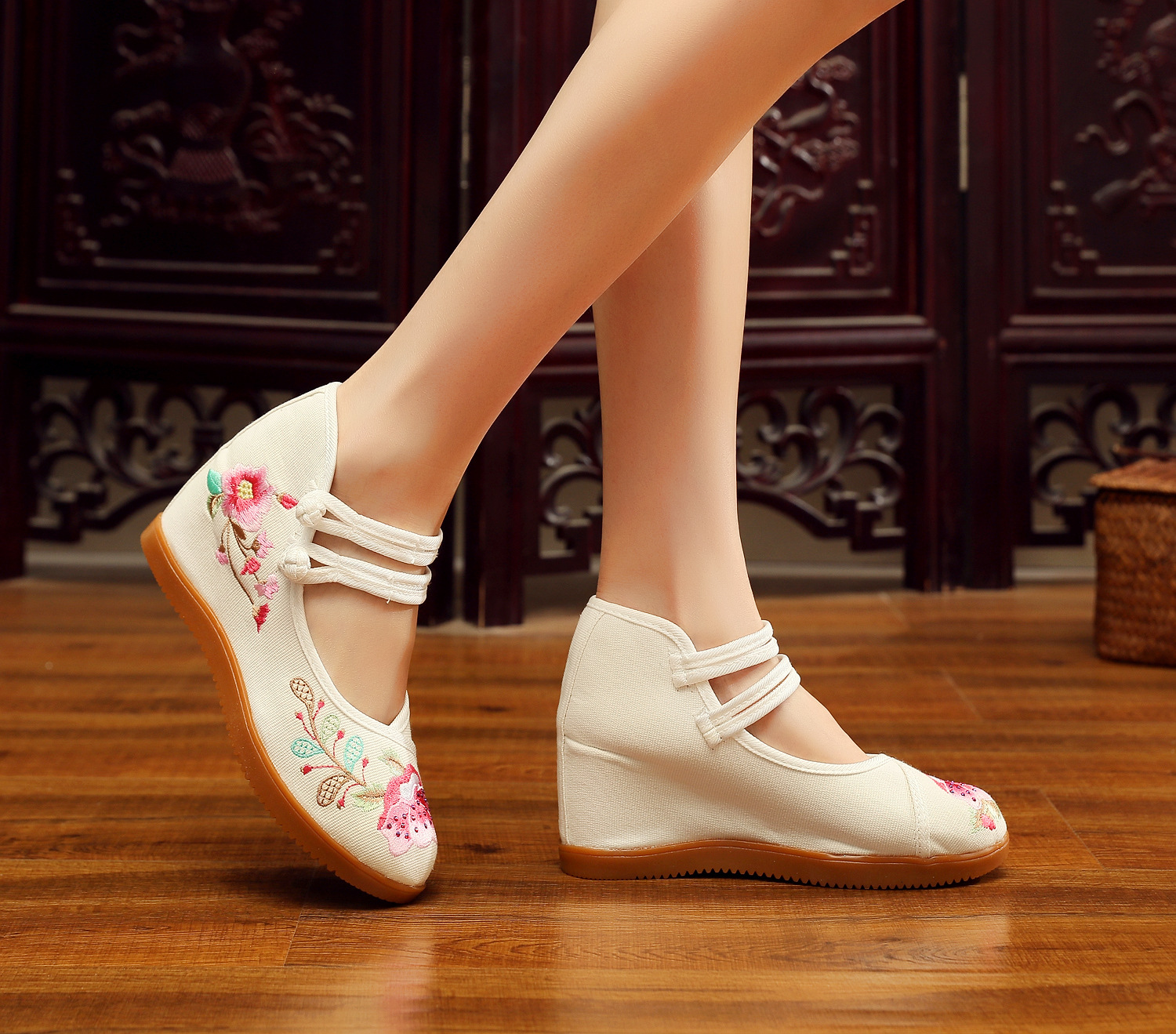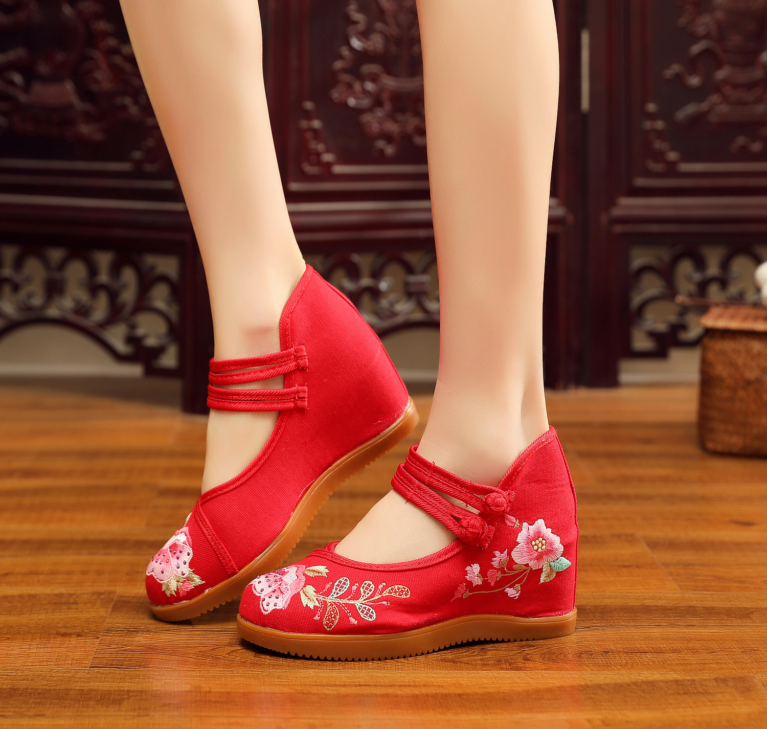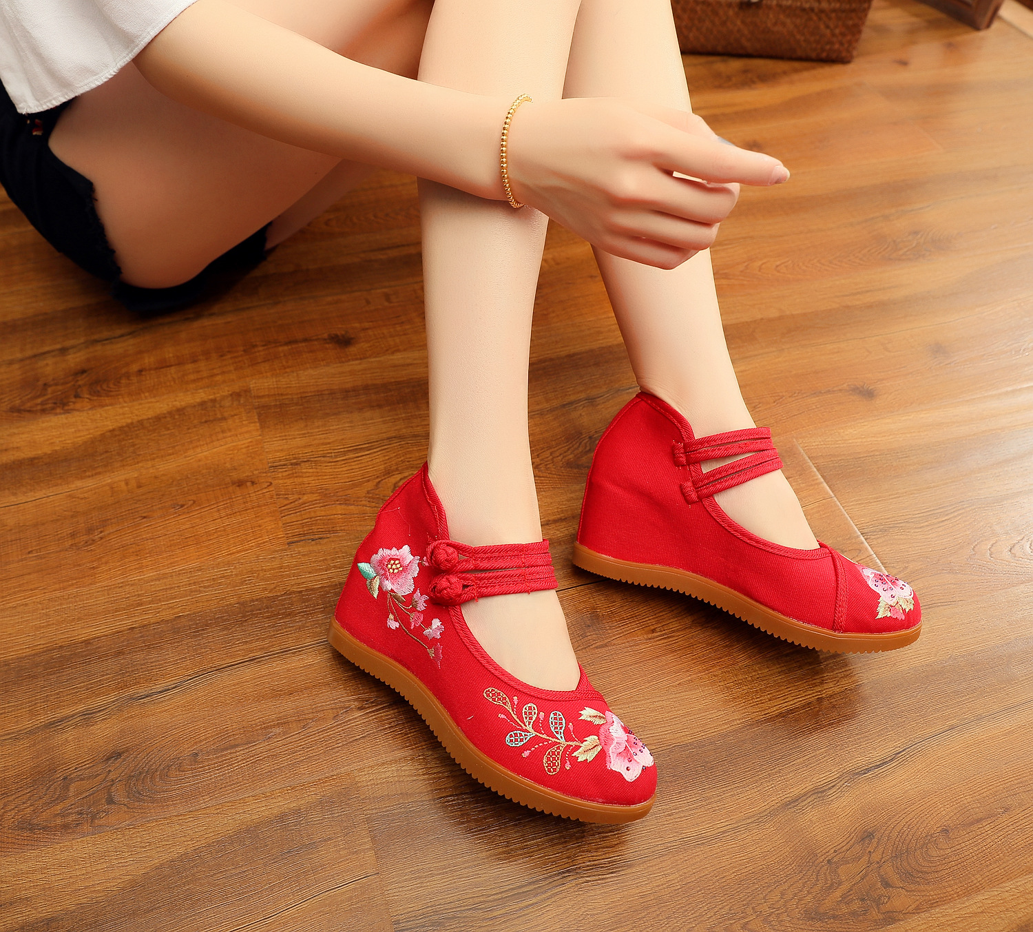 LF-858-1新款国色天香绣花布鞋民族风牛筋底内增高广场舞蹈妈妈单鞋WY