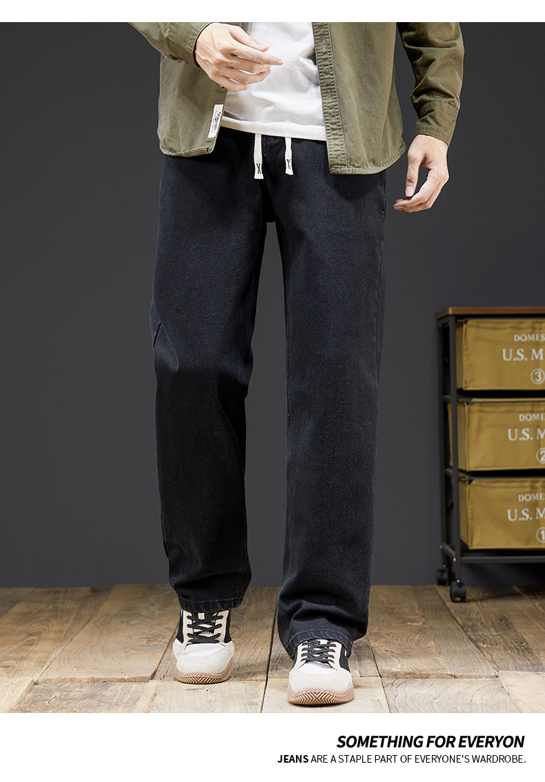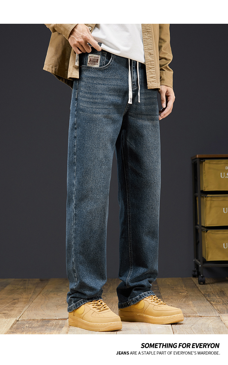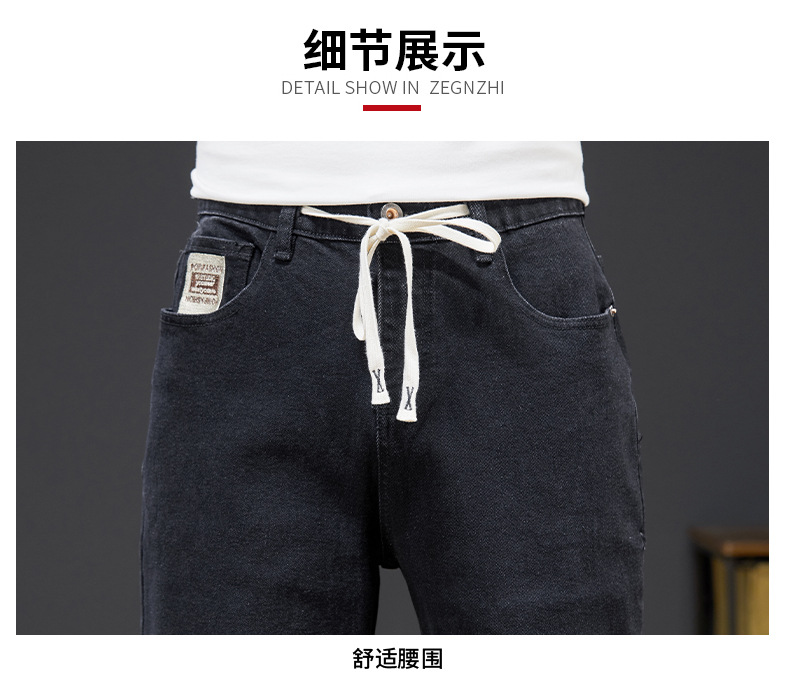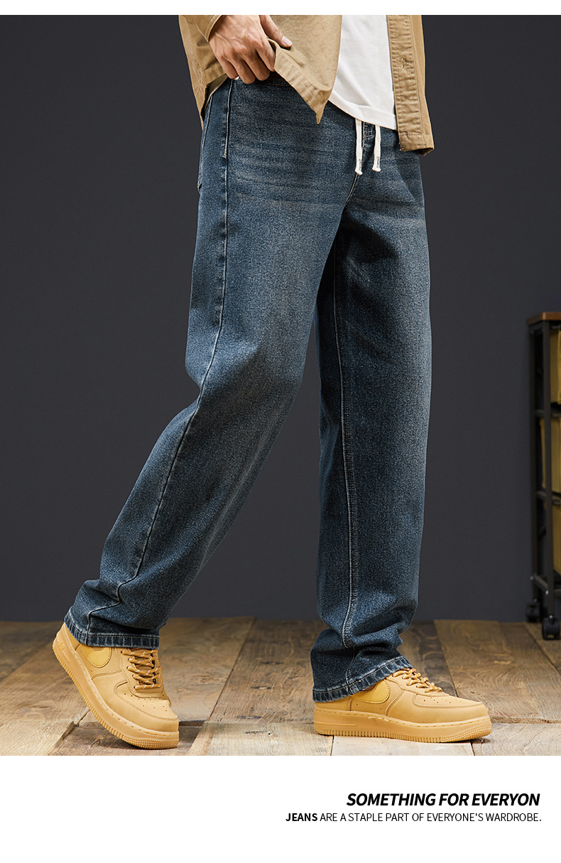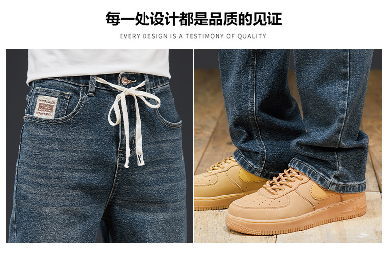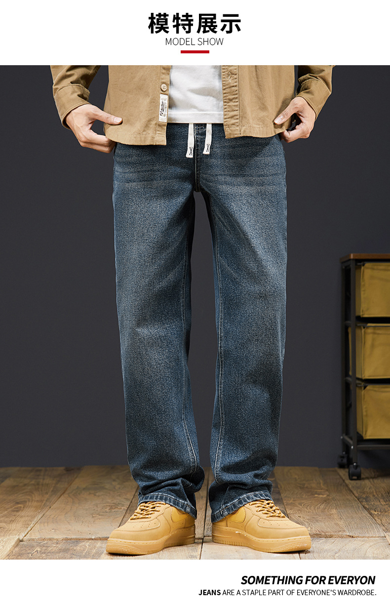 【DYG】大依优型大码男装重工阔脚牛仔裤男宽松刺绣松紧腰运动牛仔长裤男装