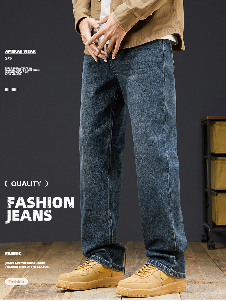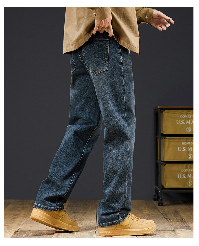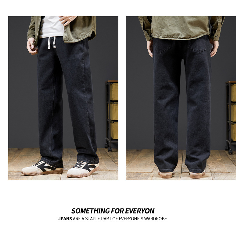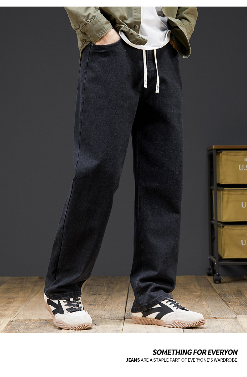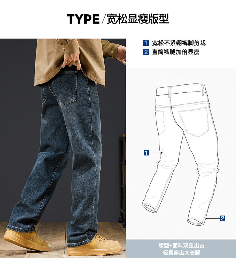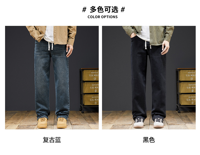 【DYG】大依优型大码男装重工阔脚牛仔裤男宽松刺绣松紧腰运动牛仔长裤男装