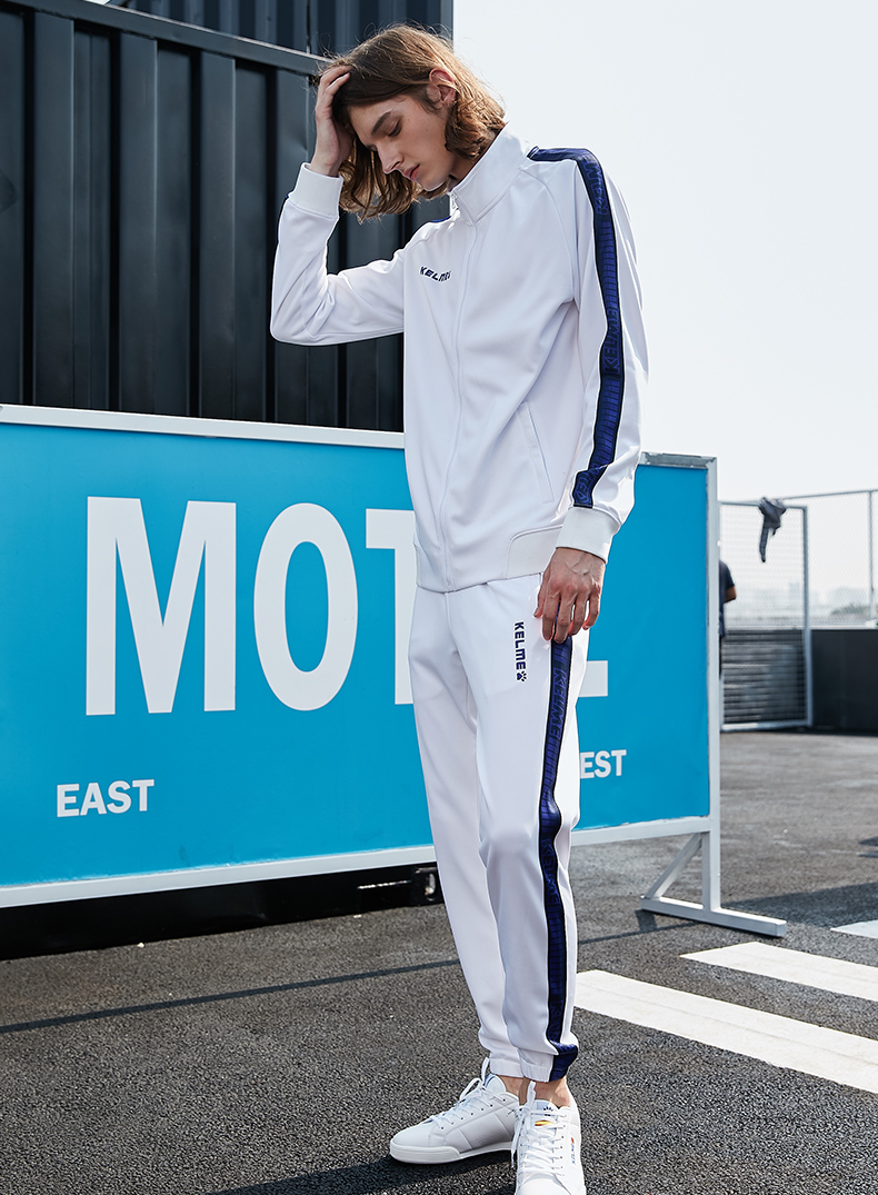 KELME 卡尔美 男士运动外套复古串标休闲立领跑步外套针织卫衣