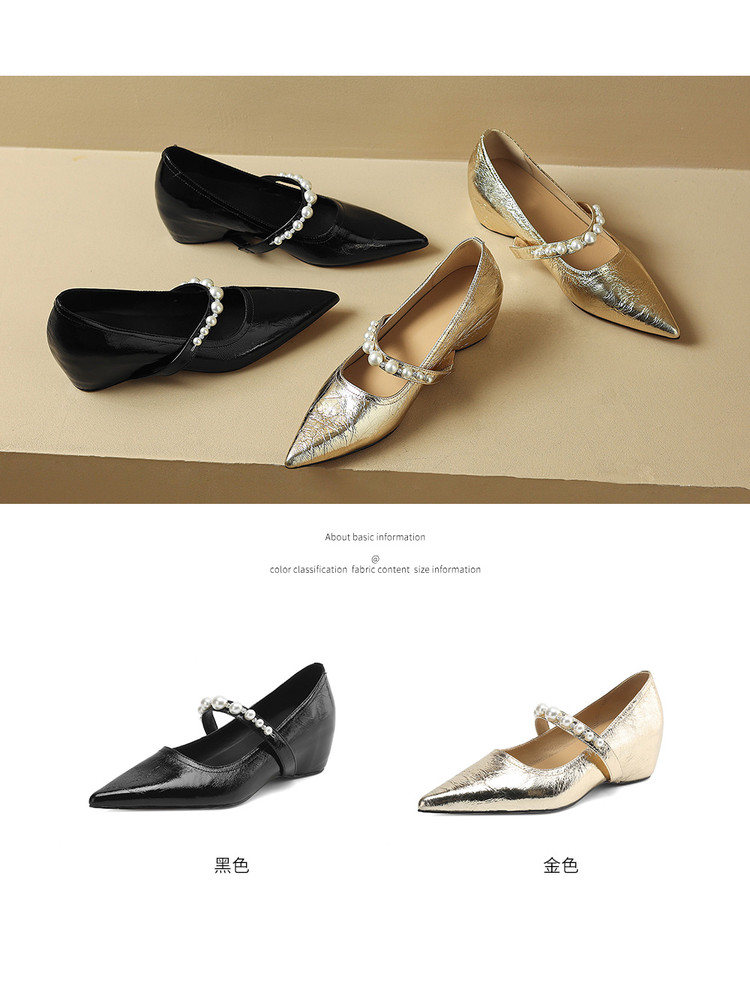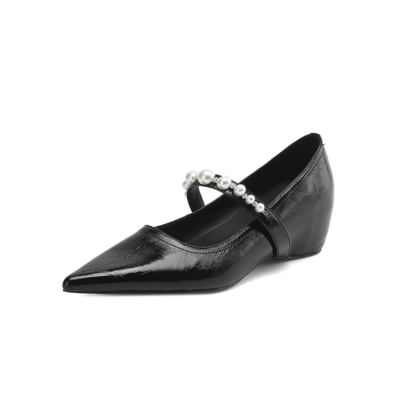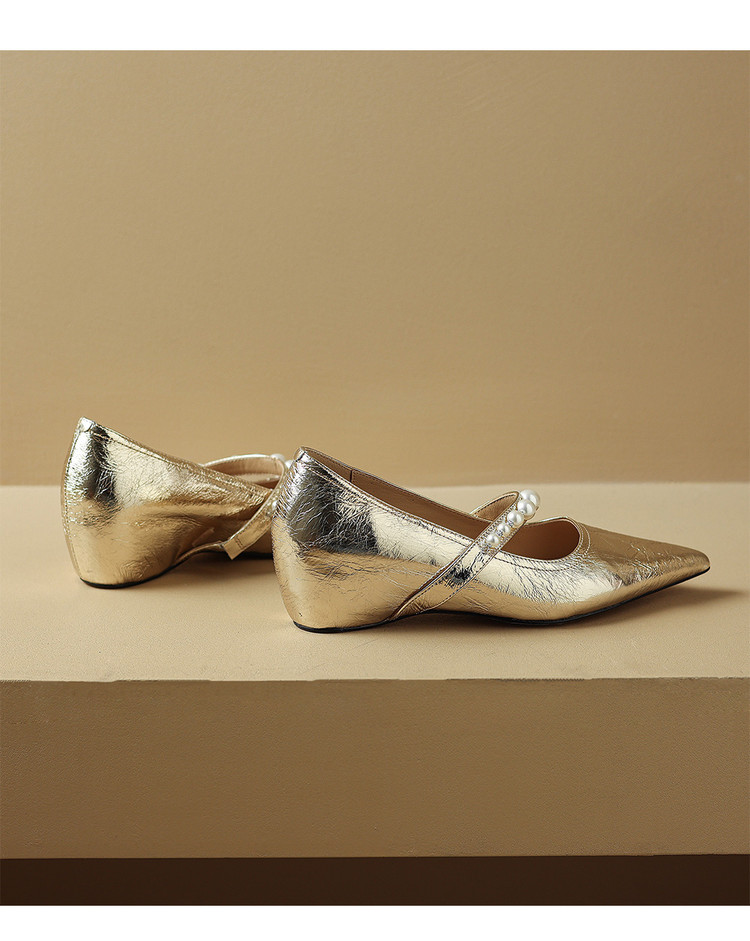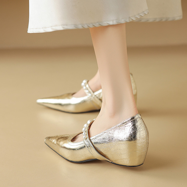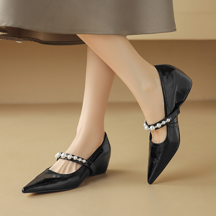 【预售5天】法式珍珠坡跟玛丽珍鞋春夏季新款尖头浅口一字带内增高单鞋女NDXC&7025