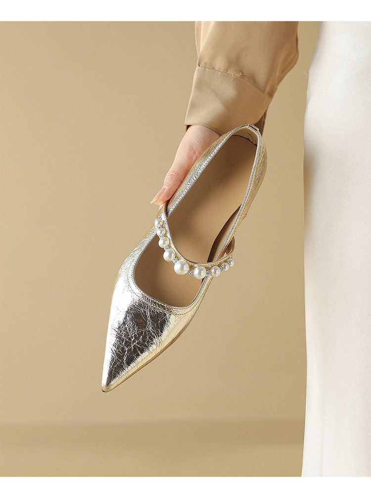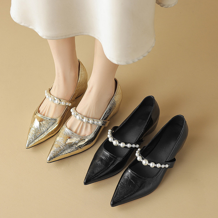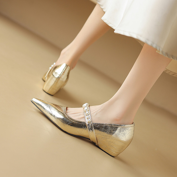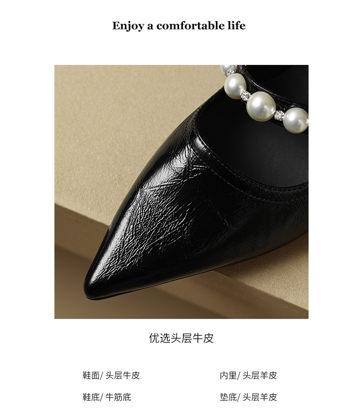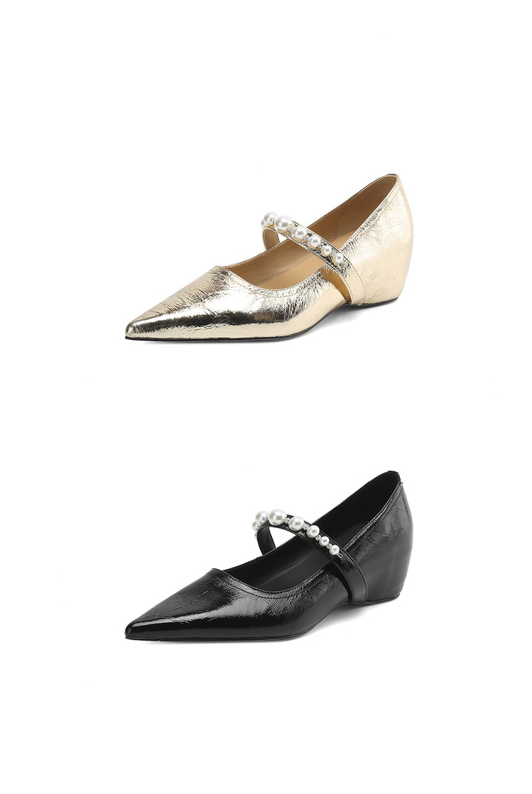 【预售5天】法式珍珠坡跟玛丽珍鞋春夏季新款尖头浅口一字带内增高单鞋女NDXC&7025
