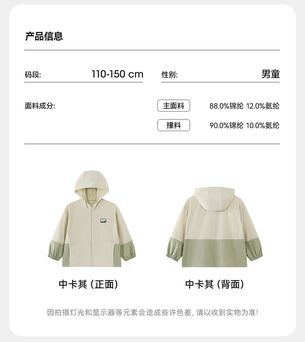 【商场同款】英氏儿童防晒衫夏季男童户外防晒外套冰感速干连帽衫