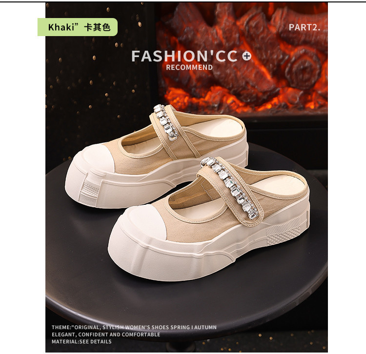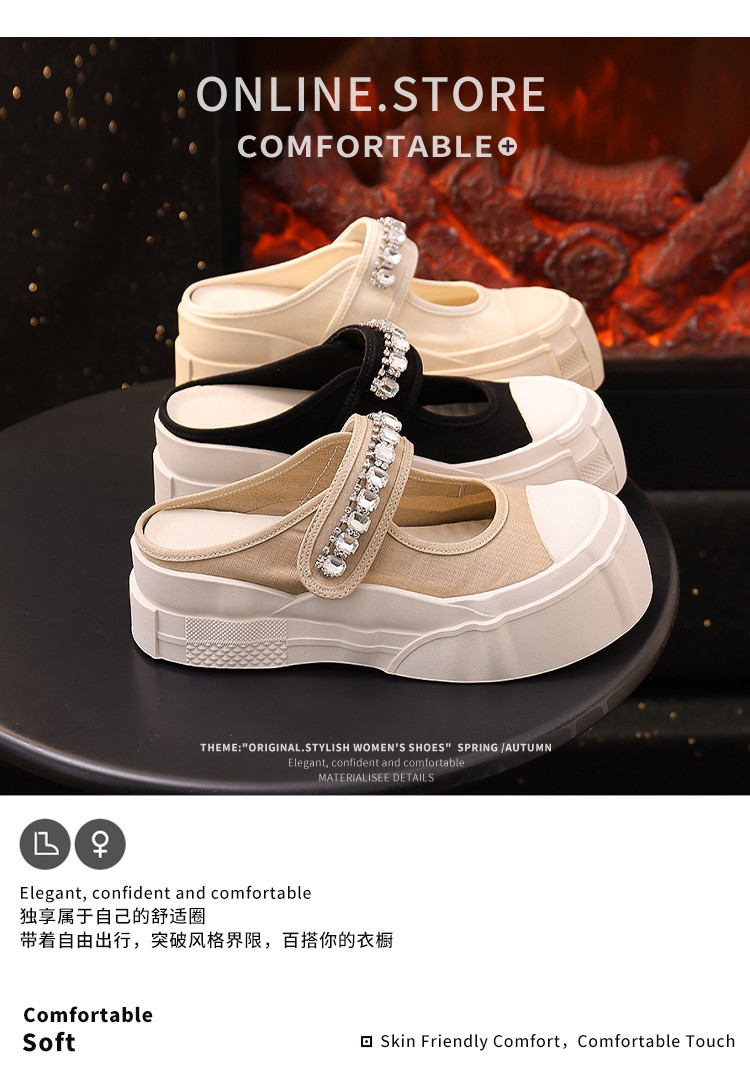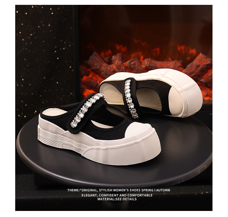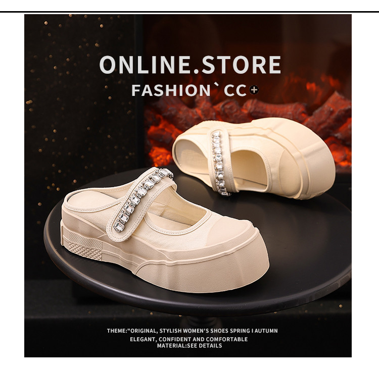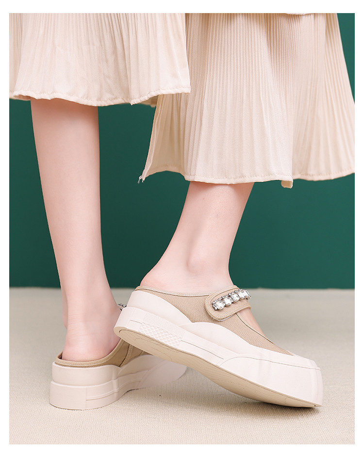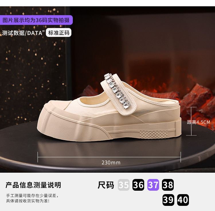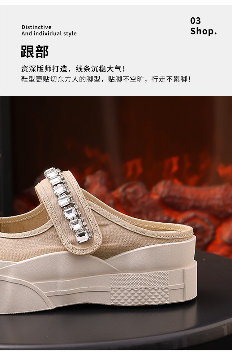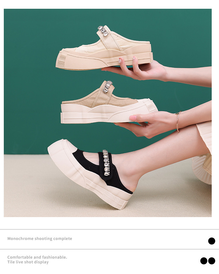 帆布包头拖鞋,新款大头魔术贴凉拖厚底外穿水钻半拖鞋ML10221
