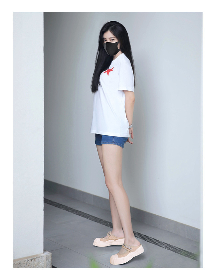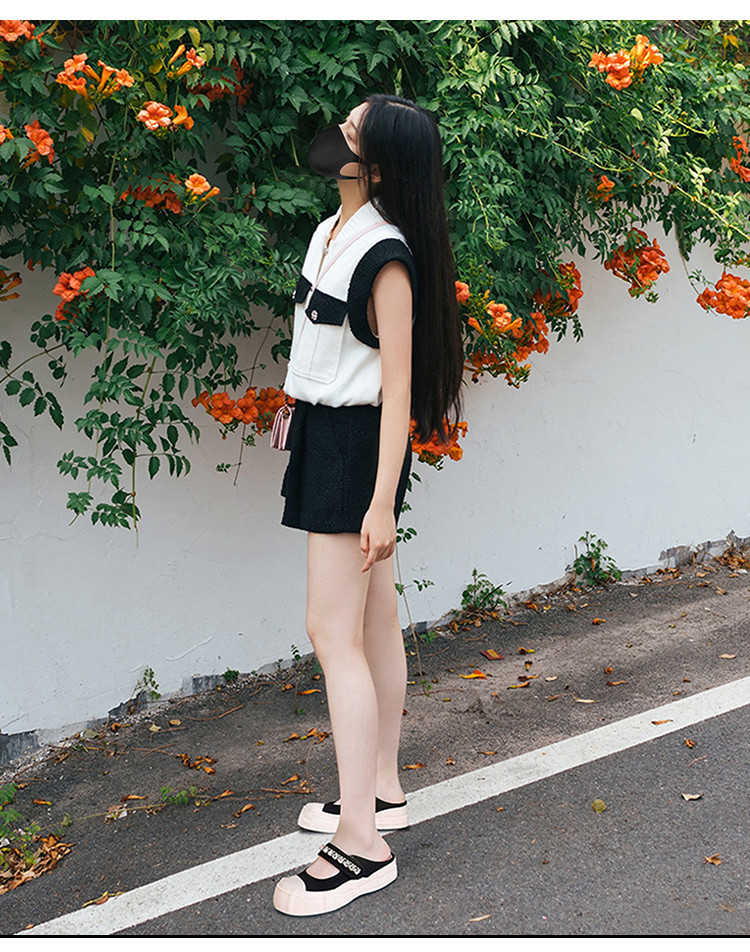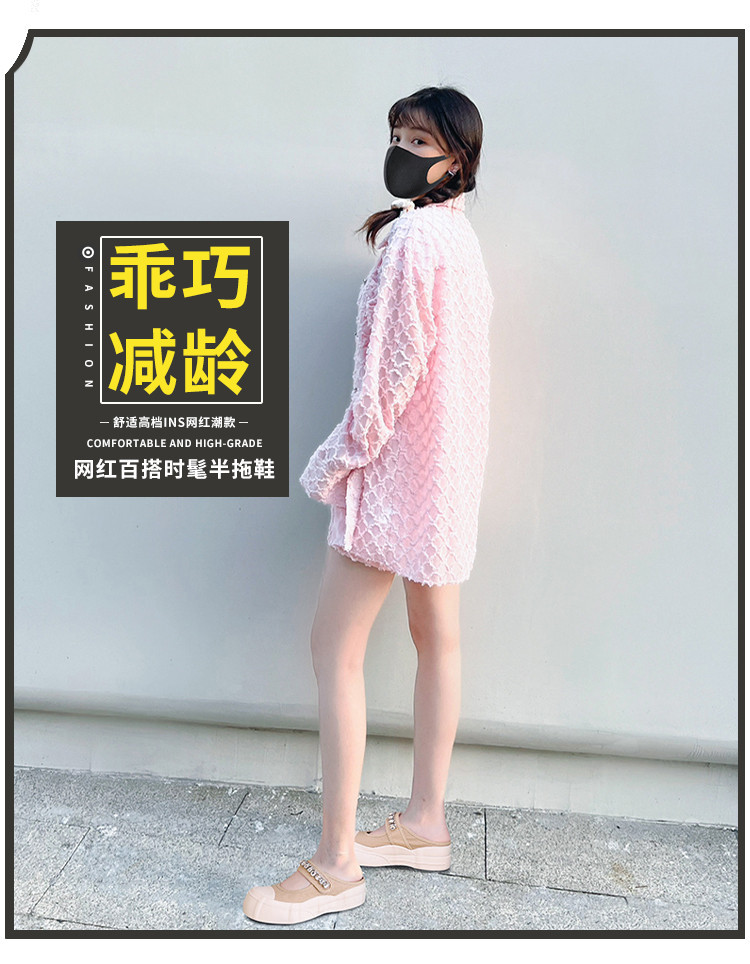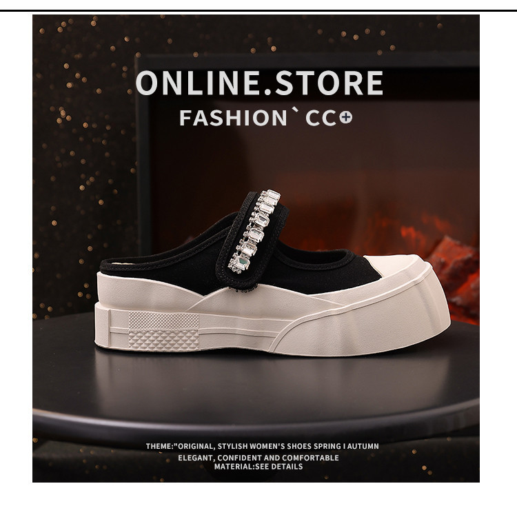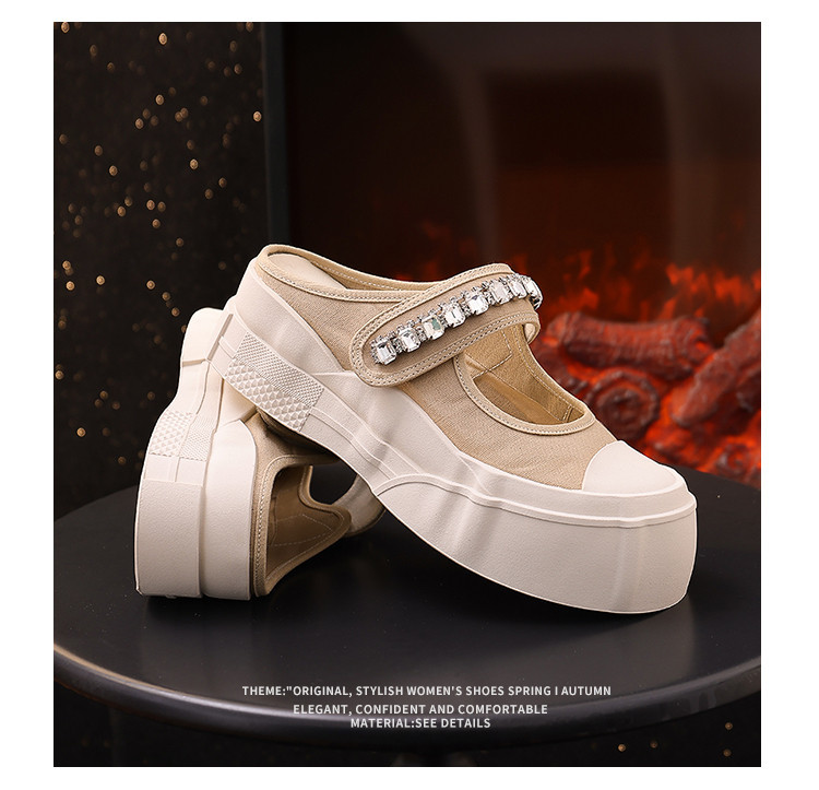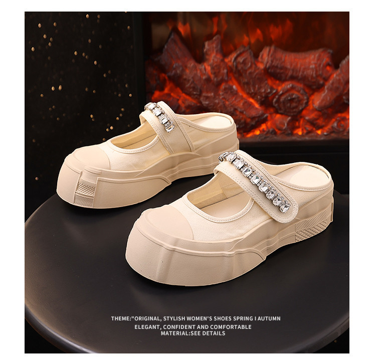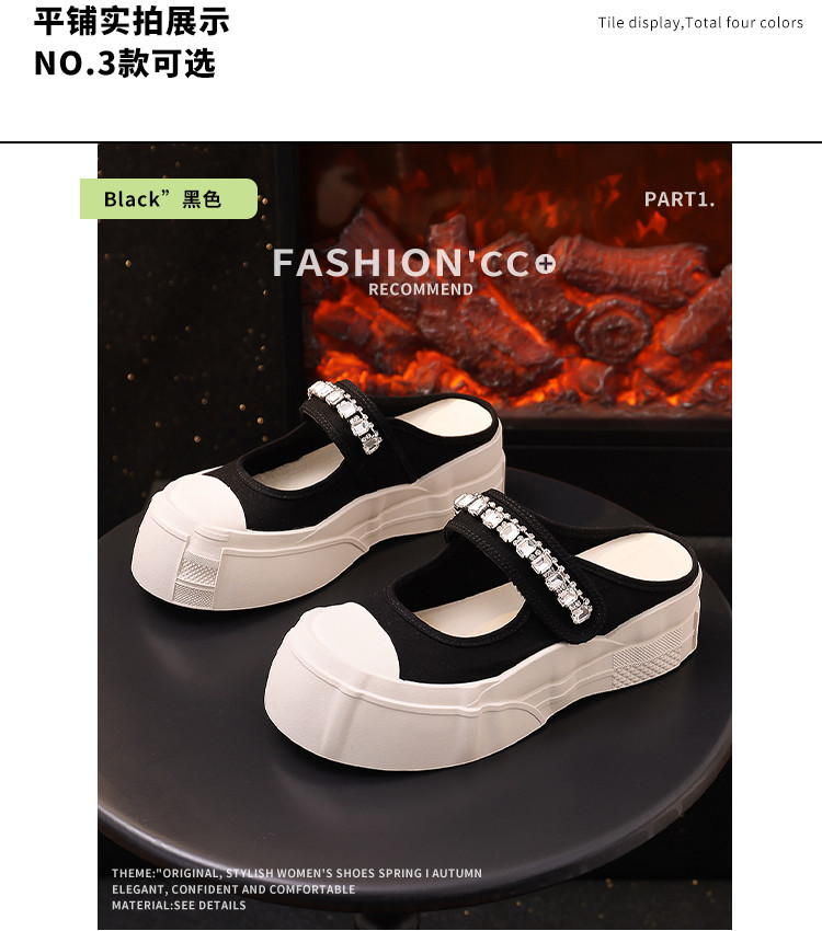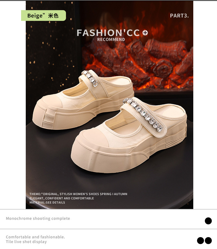 帆布包头拖鞋,新款大头魔术贴凉拖厚底外穿水钻半拖鞋ML10221