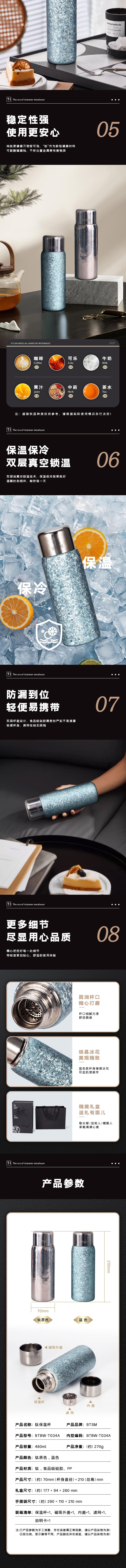 BTSM 磁吸盖钛保温杯蓝色480ml BTBW-T034A-1