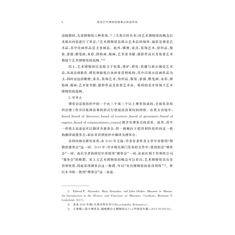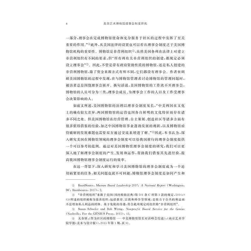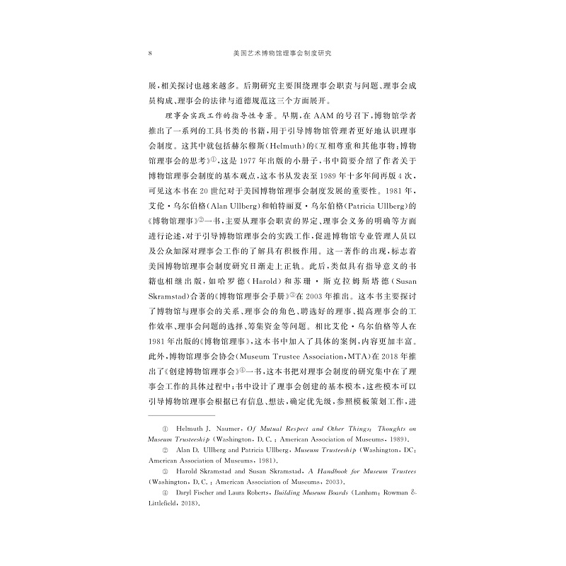 理事会制度是国内美术馆和博物馆机构关注的热点,本书是国内diyi本研究美国艺术博物馆理事会治理机制的系统专著。本书研究了美国艺术博物馆、理事会制度的发展历程、基本内容、内部机制,理事会制度背后的政治体制、社会文化、政策制度、经济发展、管理技术环境。深入探究了理事会制度在美国成功运行的根源,总结了理事会制度的效用及问题,提出了构建博物馆理事会制度的中国路径。对博物馆、美术馆等公共文化机构主管部门负责人,博物馆、美术馆等文化艺术机构管理者、工作者等均大有裨益。