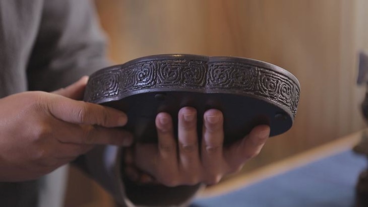 壶承边缘上,立体雕刻着古建筑上常见的回字纹,