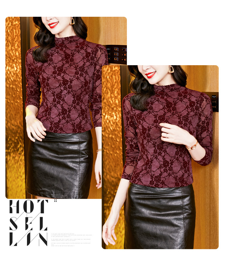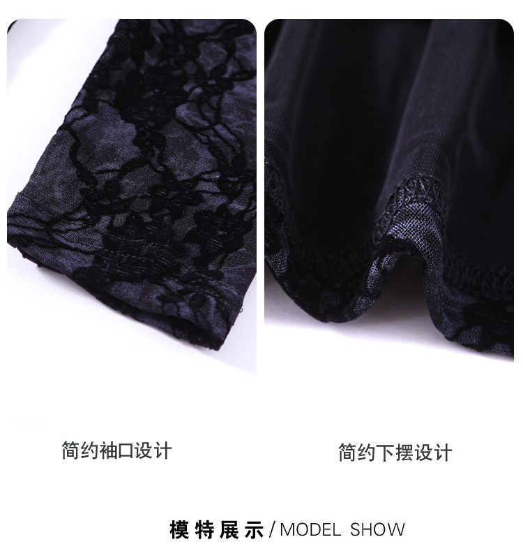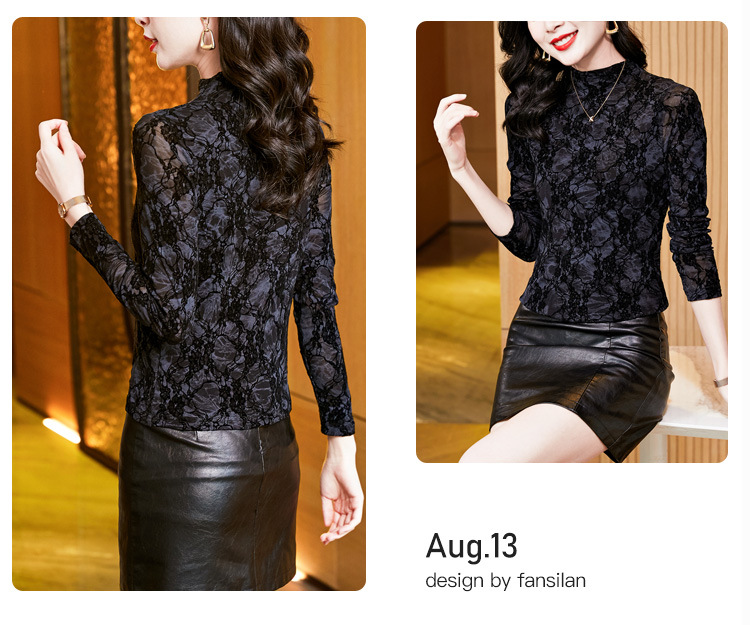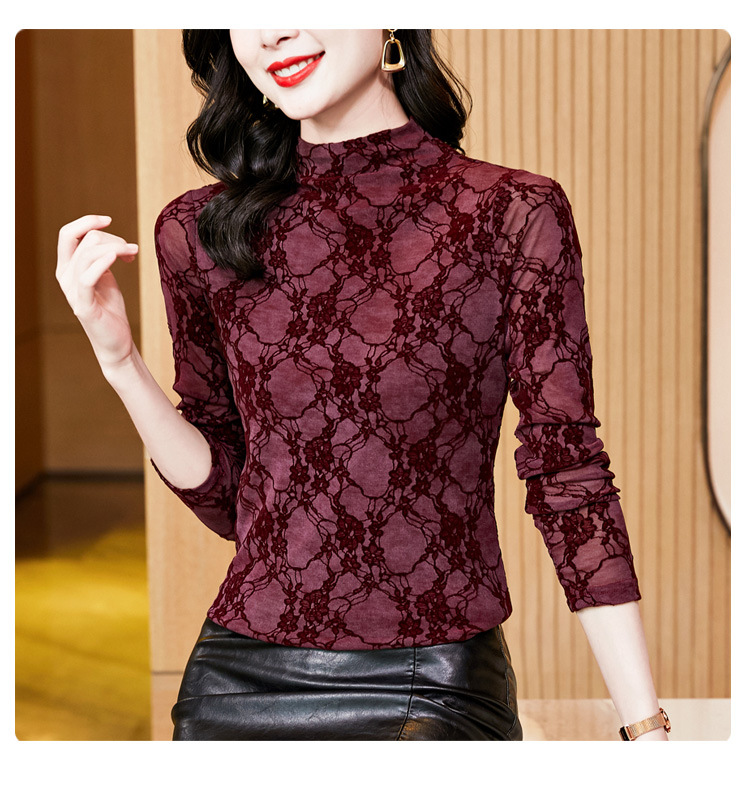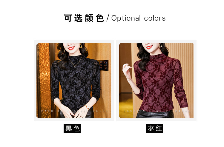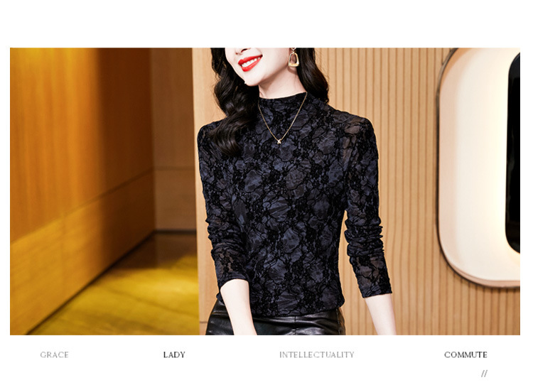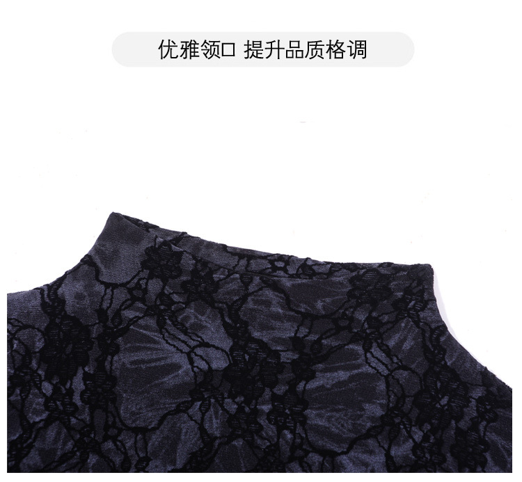 KQL E37M2932洋气百搭植绒扎染高领长袖网纱打底衫修身显瘦T恤