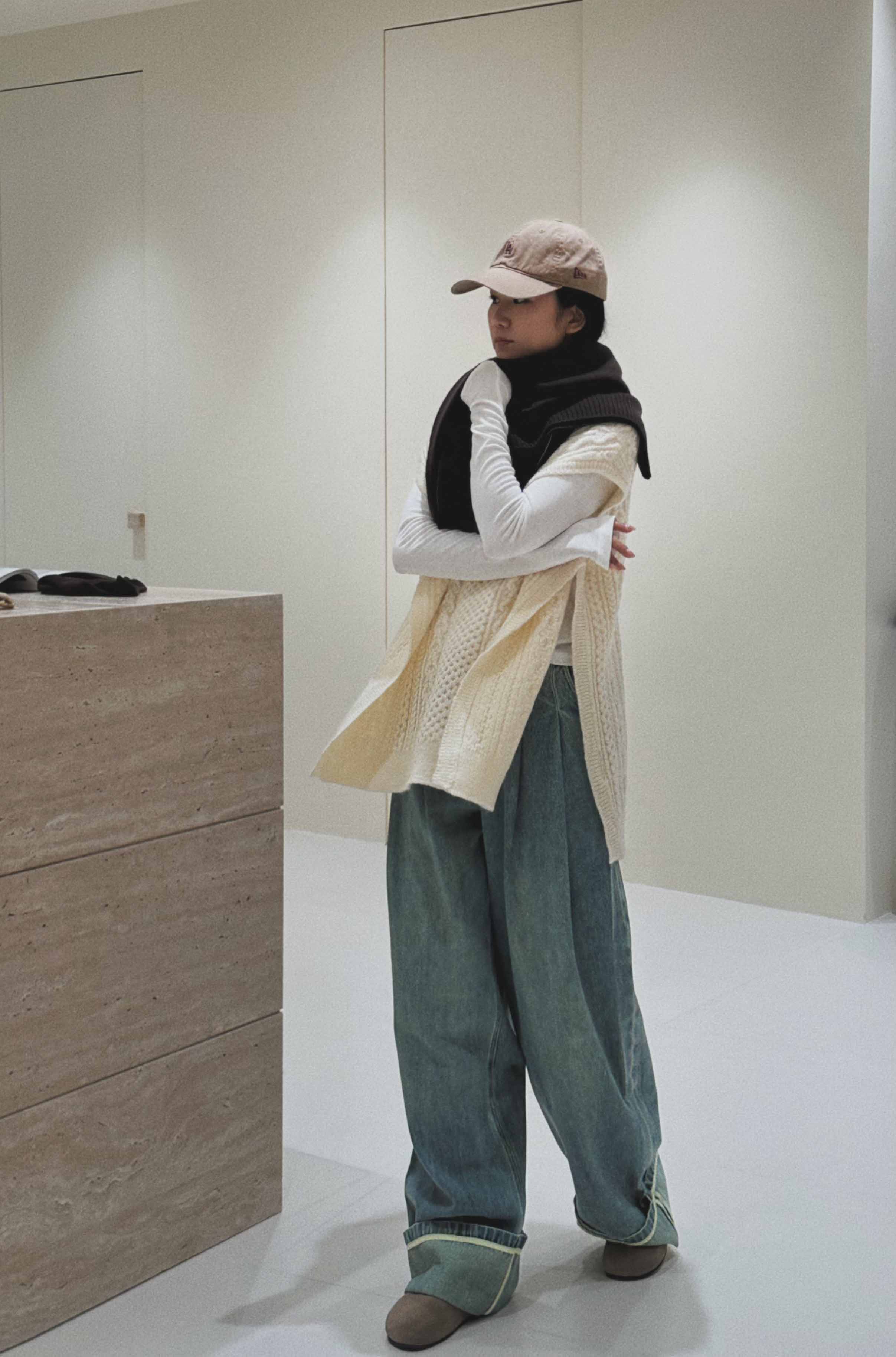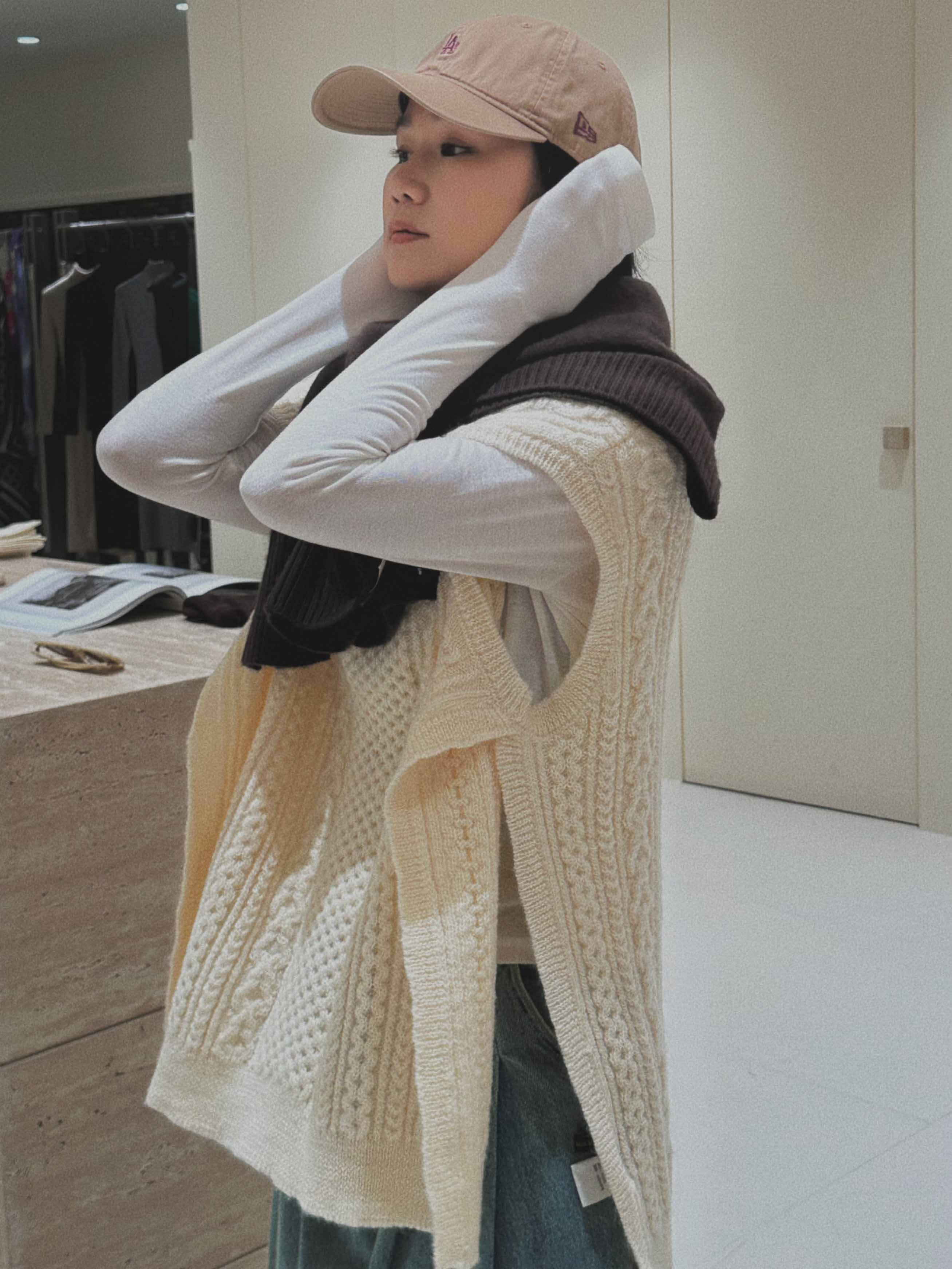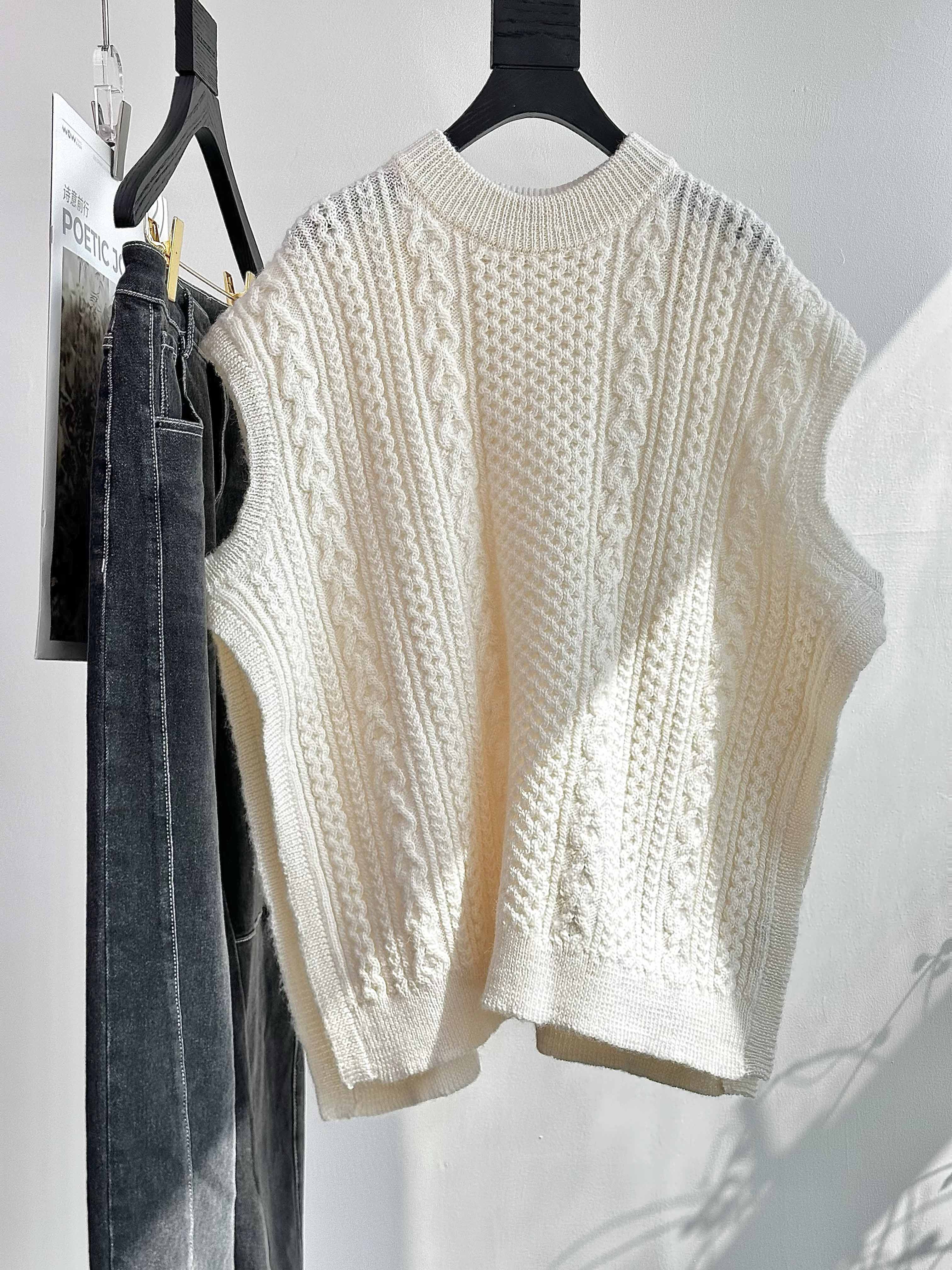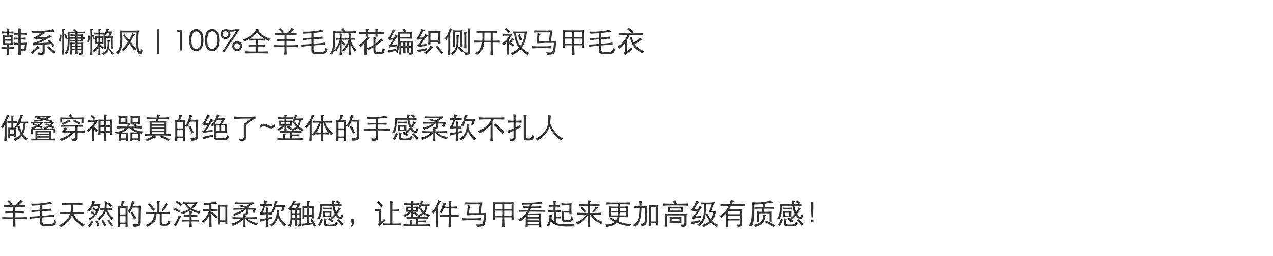 顺丰包邮32847洛诗琳韩系慵懒风100羊毛麻花侧开衩马甲毛衣58146