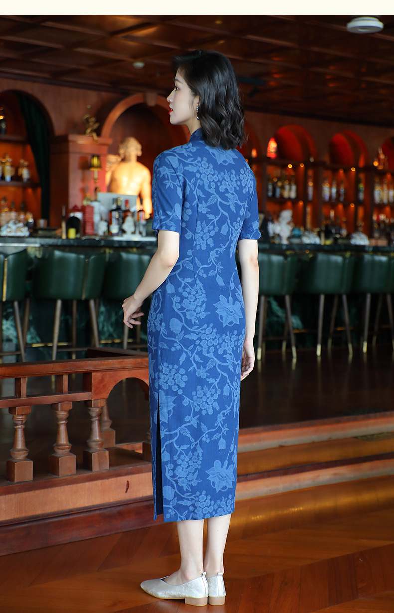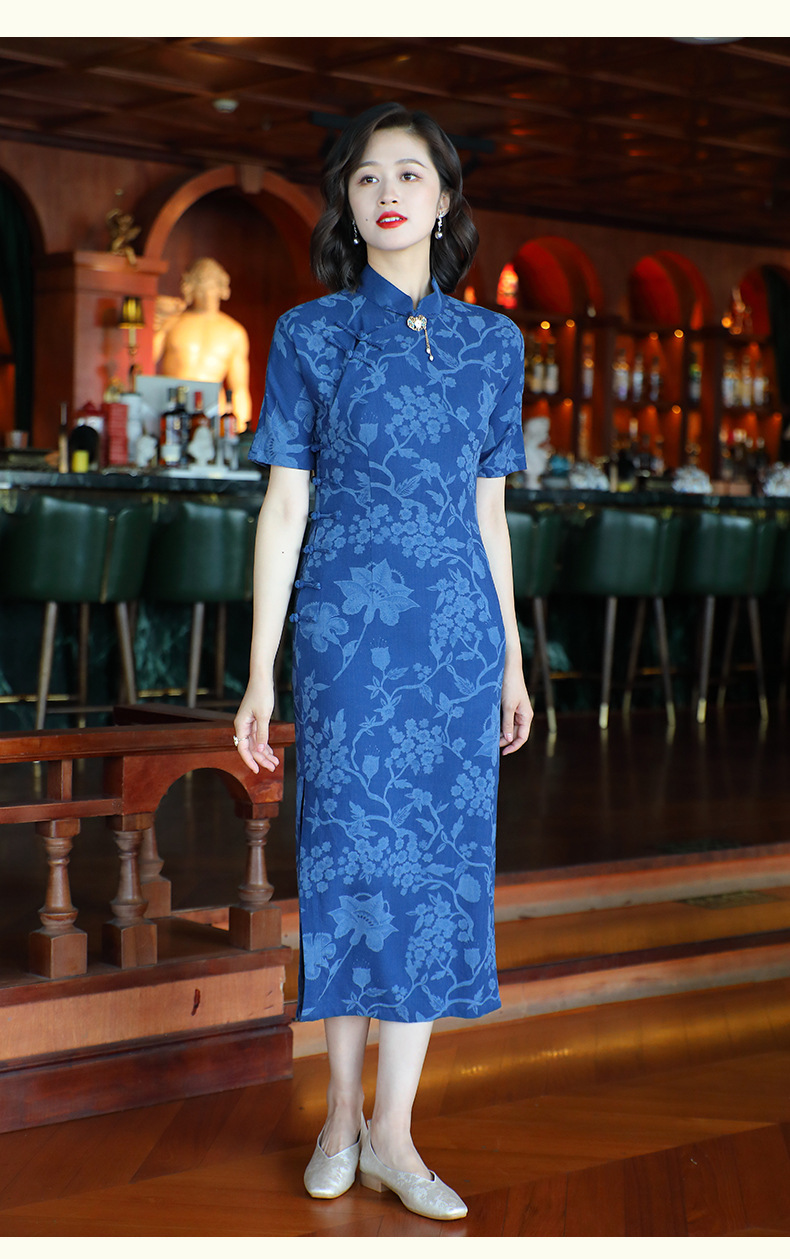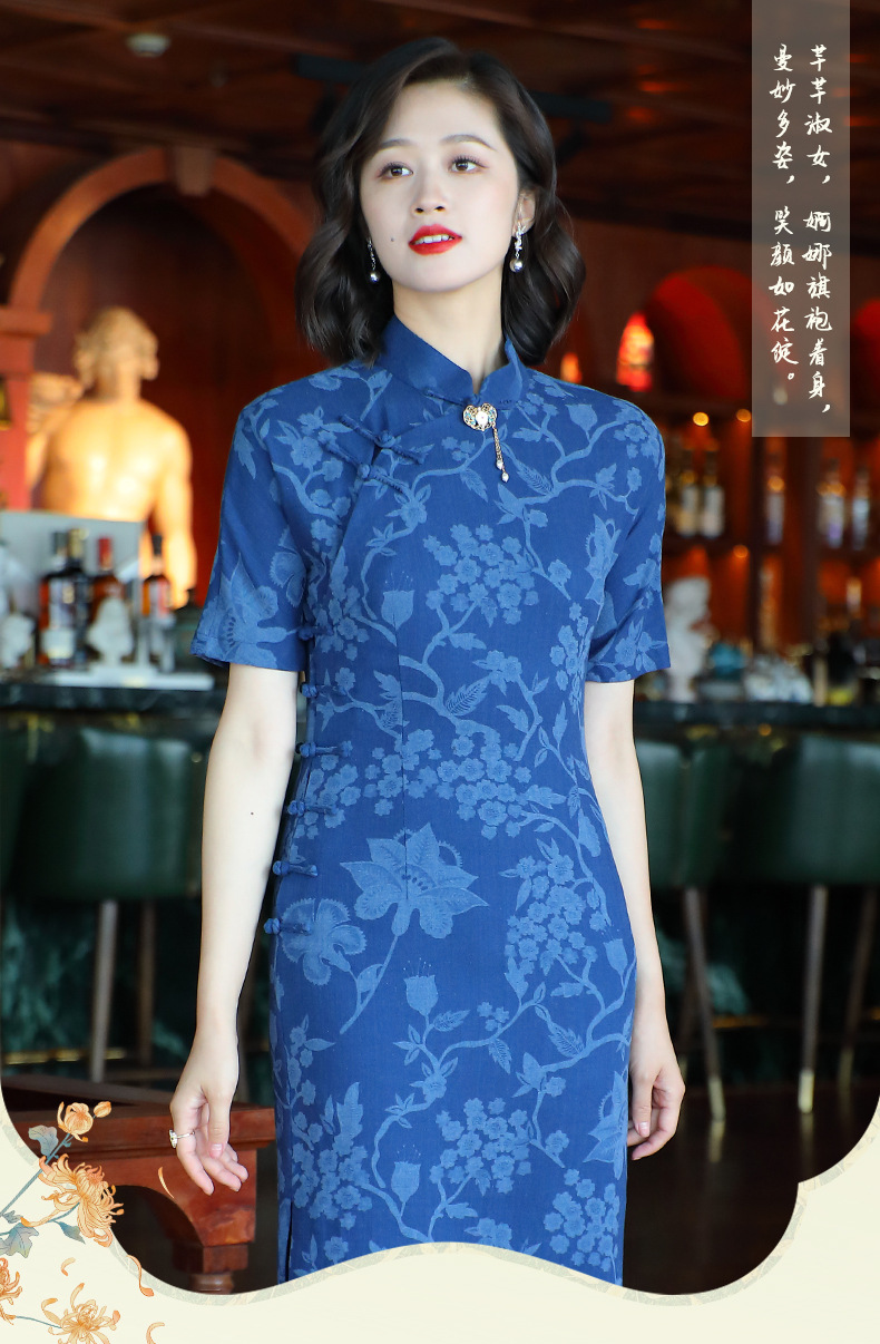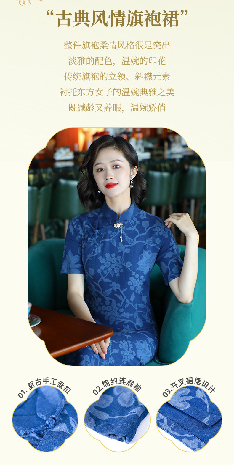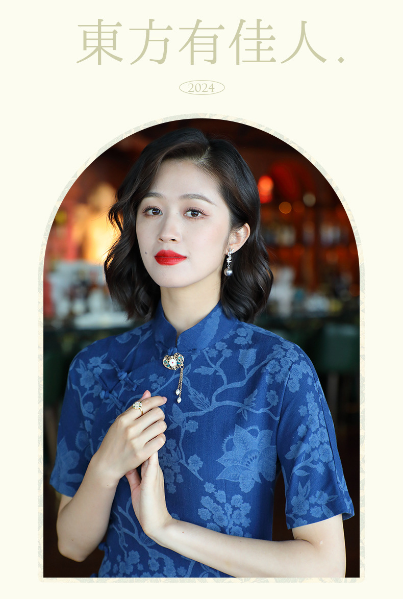 OY-24280中国风复古女装夏季新款棉麻印花日常改良旗袍连衣裙24280