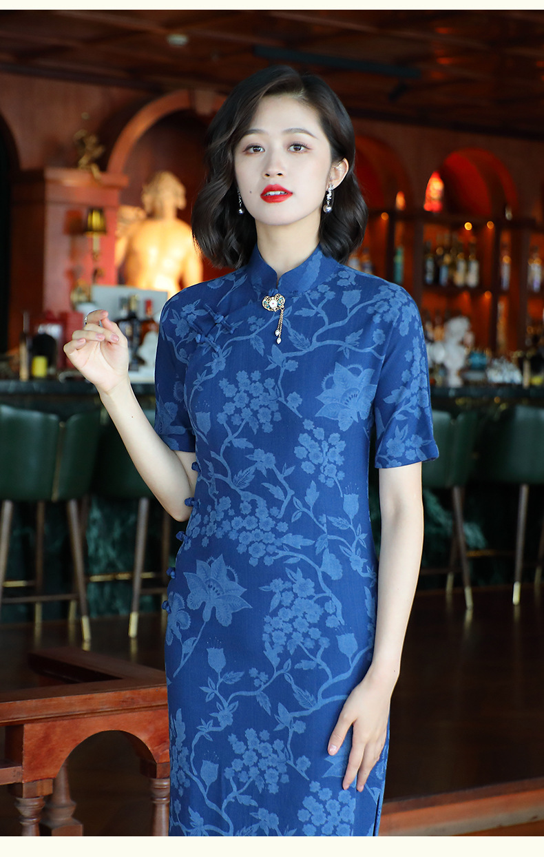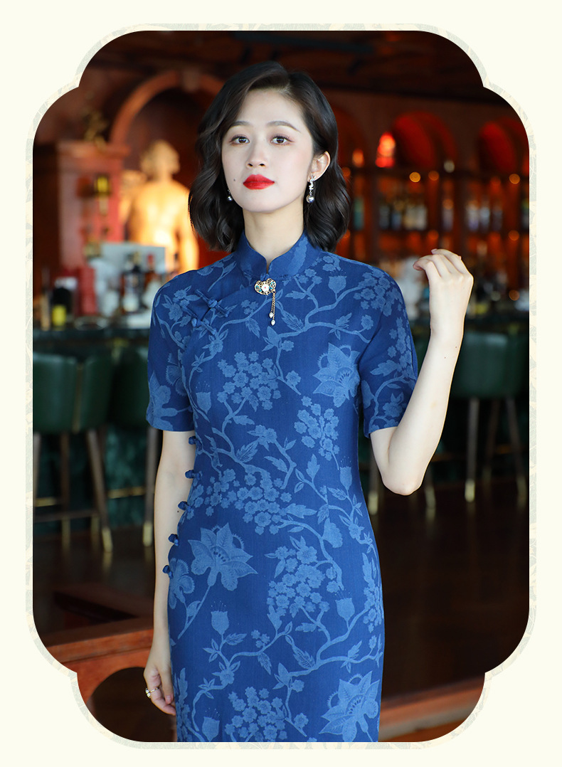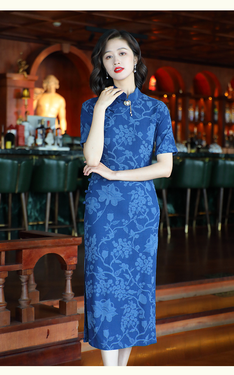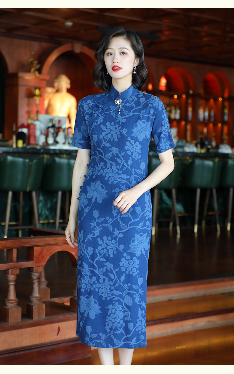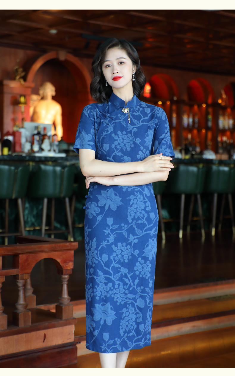 OY-24280中国风复古女装夏季新款棉麻印花日常改良旗袍连衣裙24280