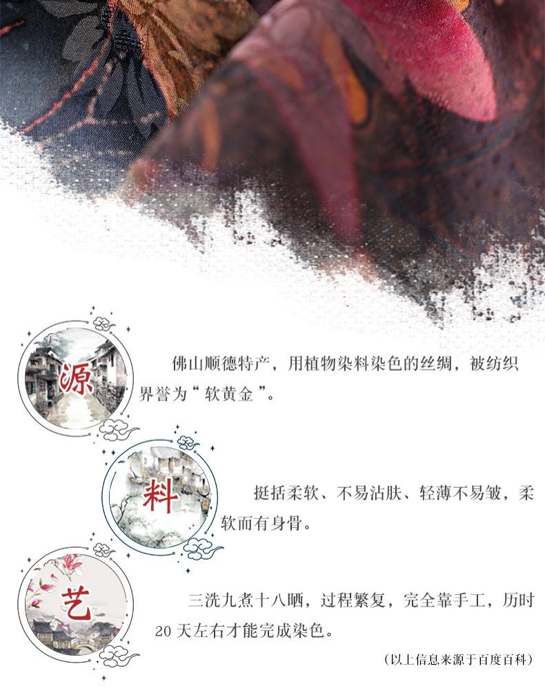 OLG-18J548 香云纱真丝连衣裙夏季女装短袖小个子旗袍刺绣桑蚕丝宽松裙子夏天