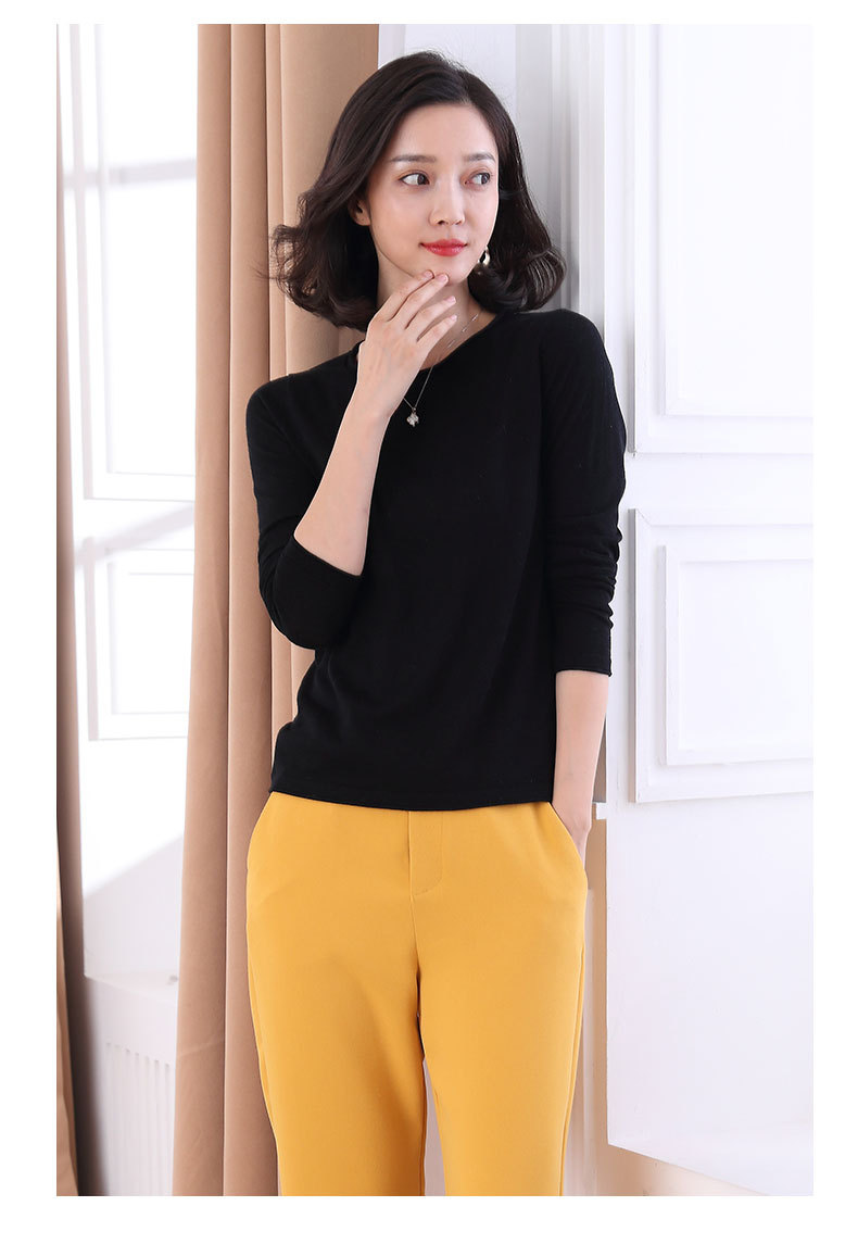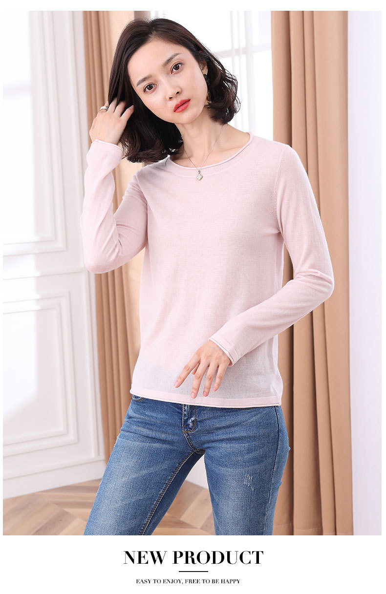 XDE-9089-9098秋冬韩版圆领超细百搭纯色直筒羊毛衫女毛衣女装打底衫