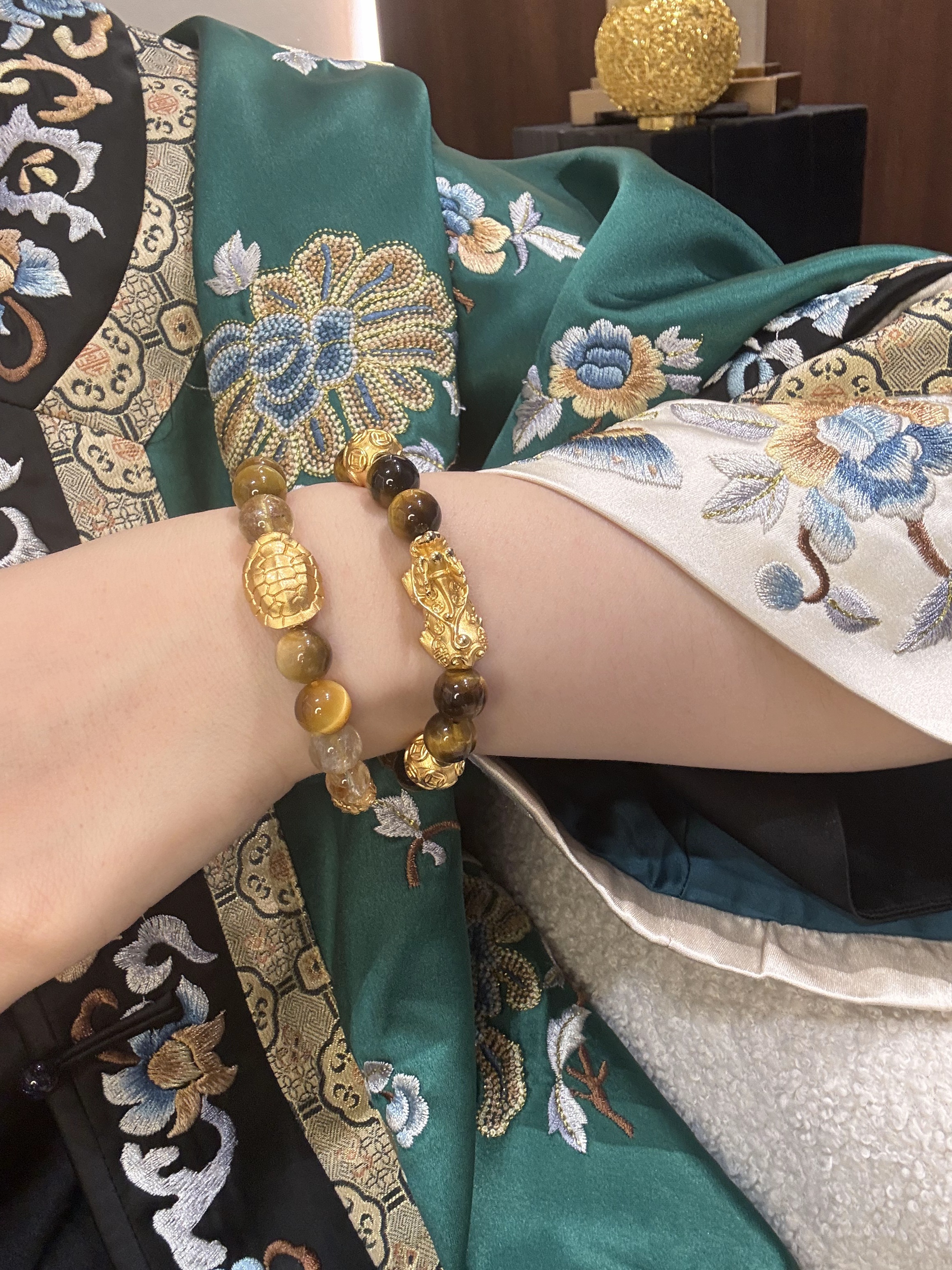 GAONAS 瑞兽献宝黑珠吞金兽金色手链11337SGO