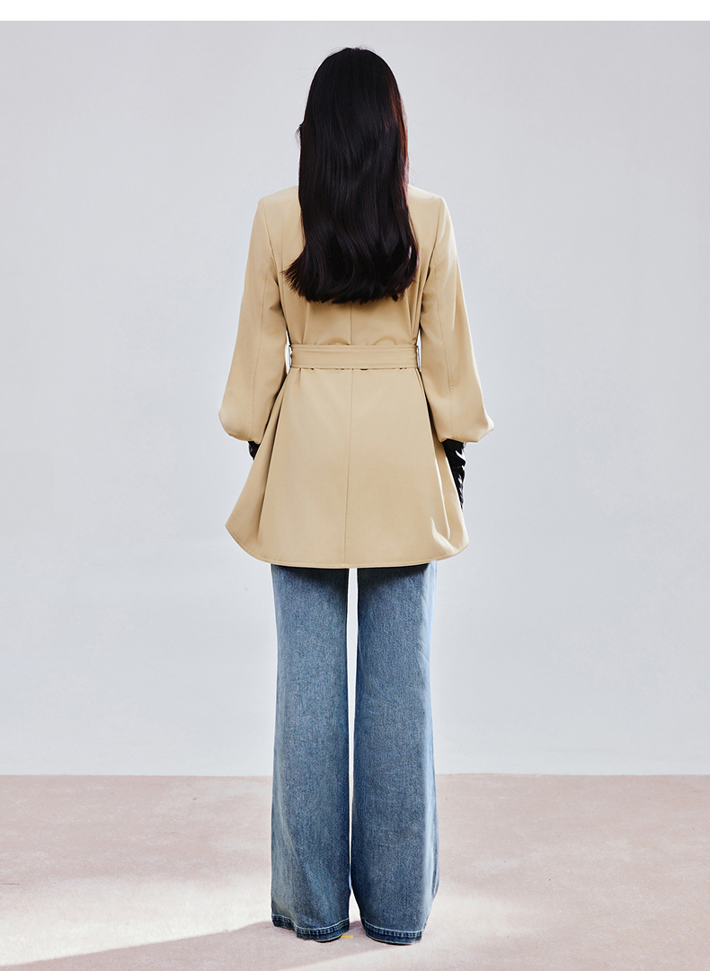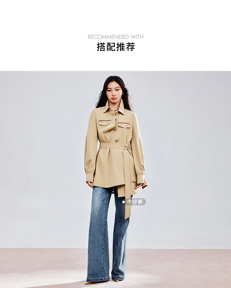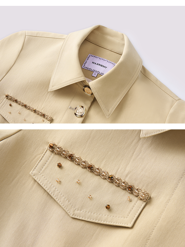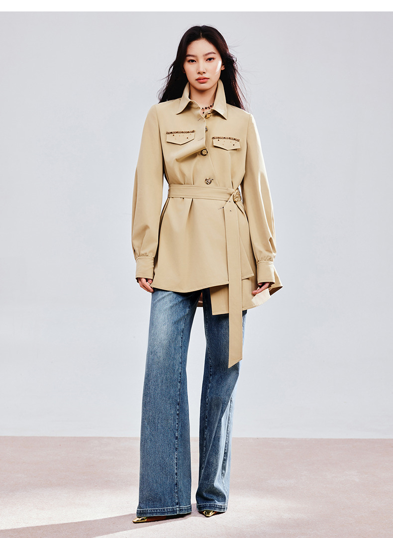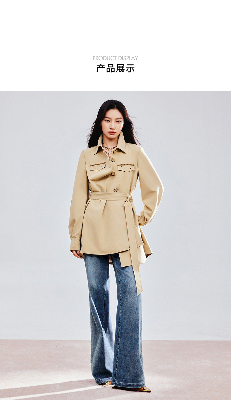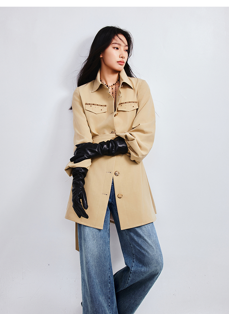 MAXRIENY精致优雅感风衣女浅春系穿搭圆形日字扣率性风收腰外套(货号:MS85WB751)