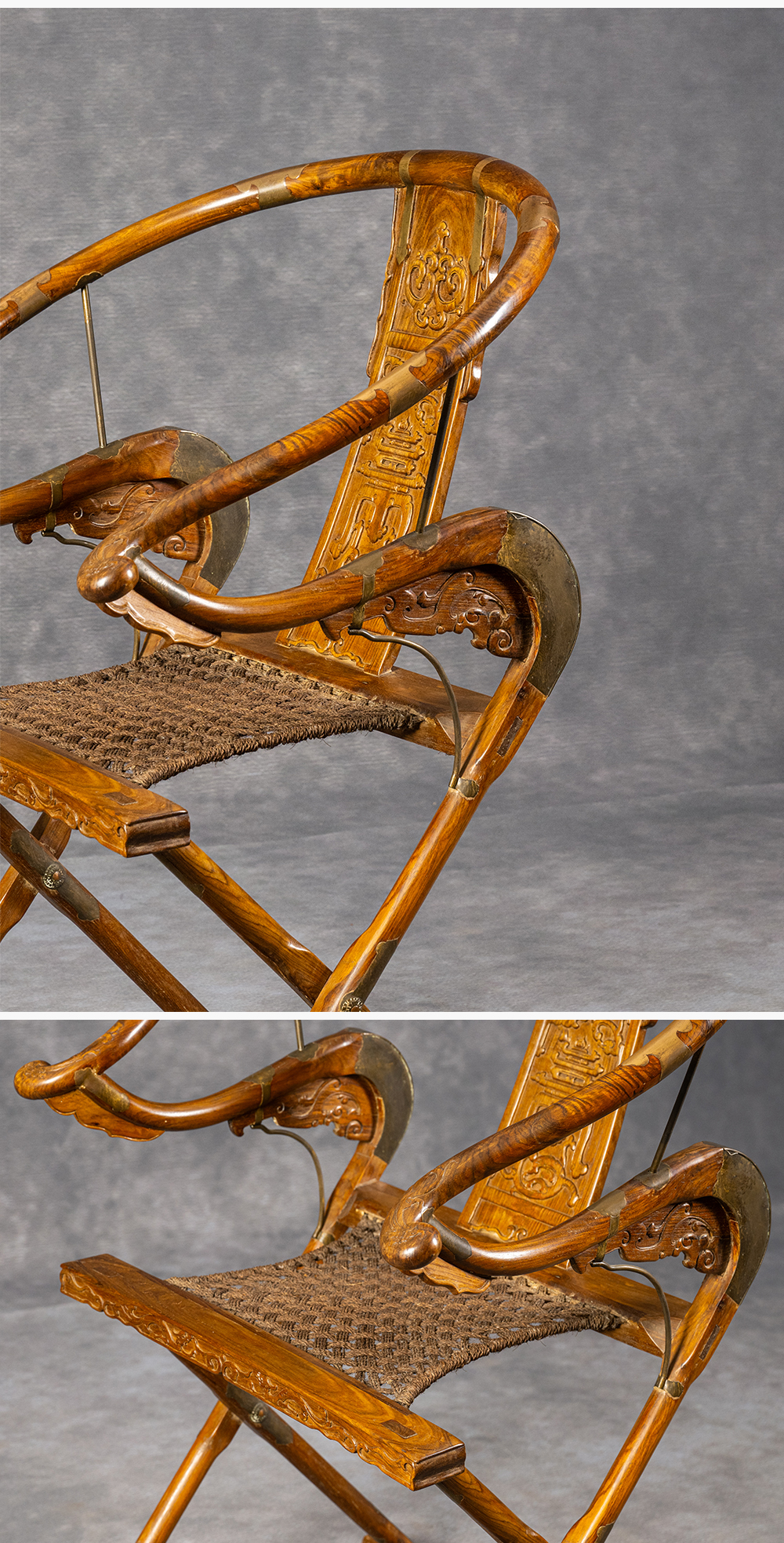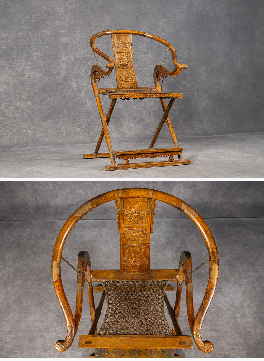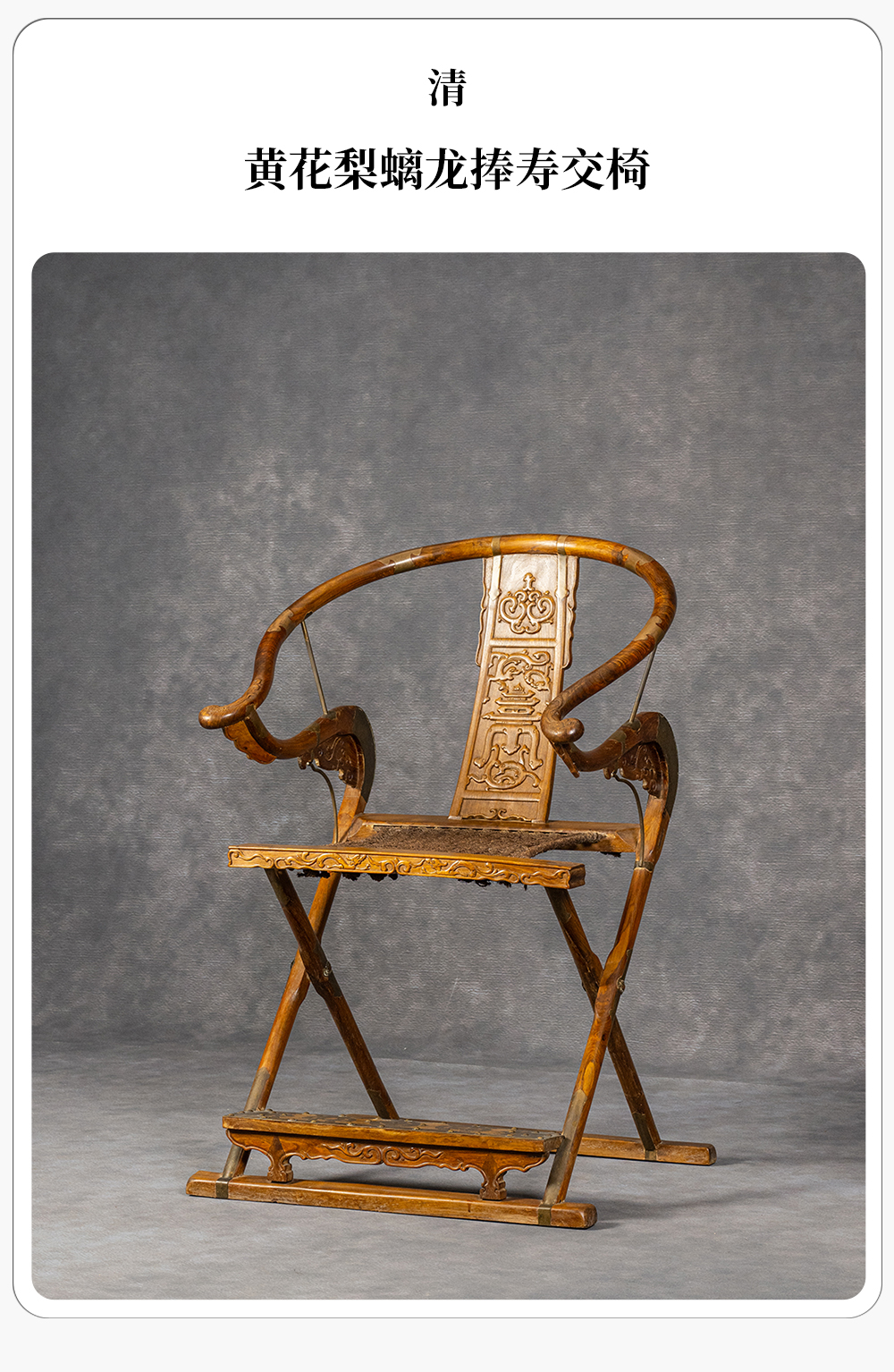 清 黄花梨螭龙捧寿交椅
