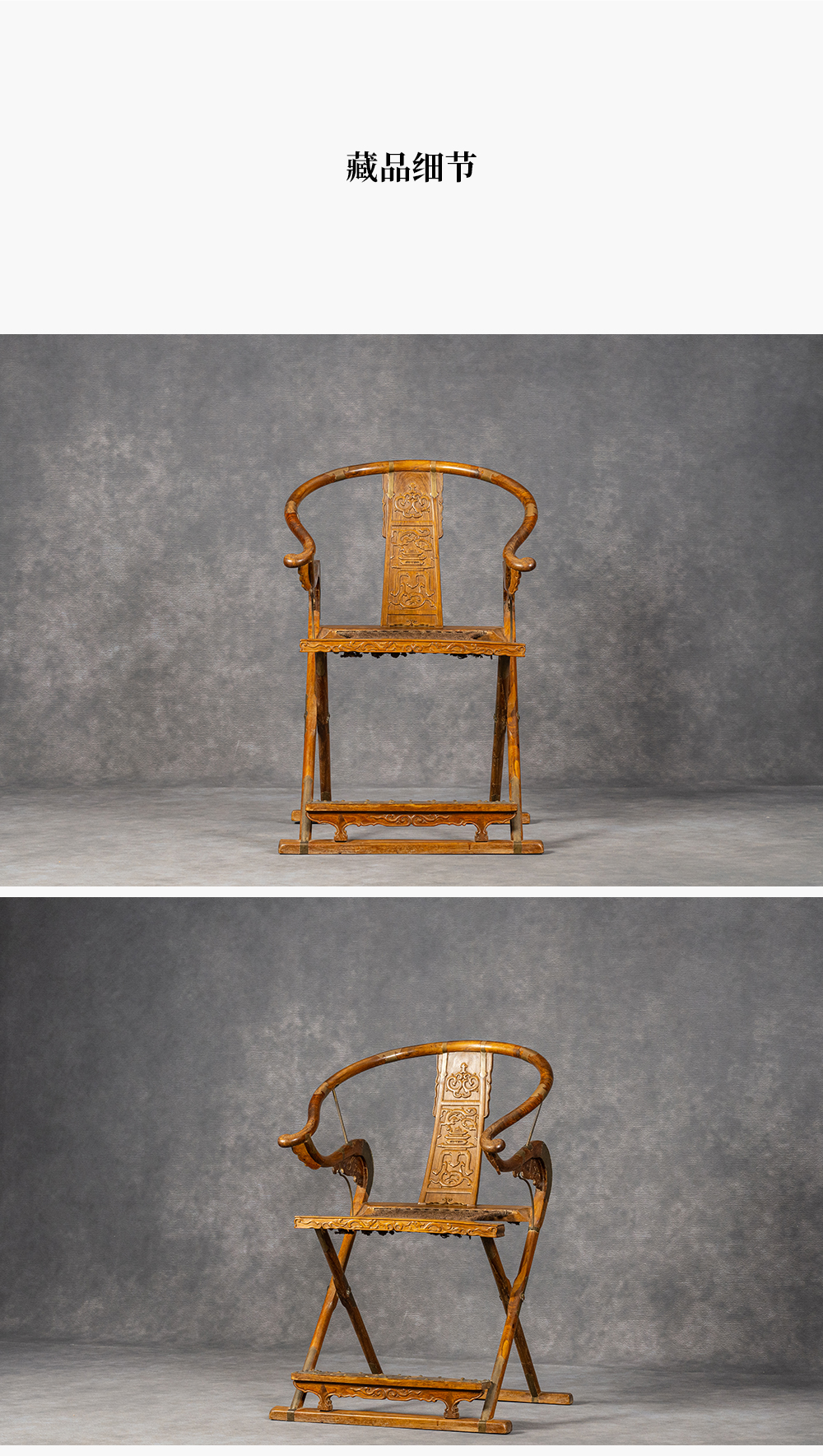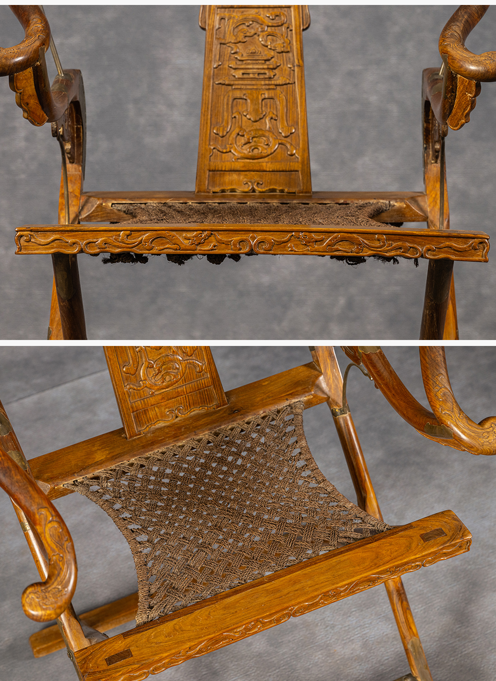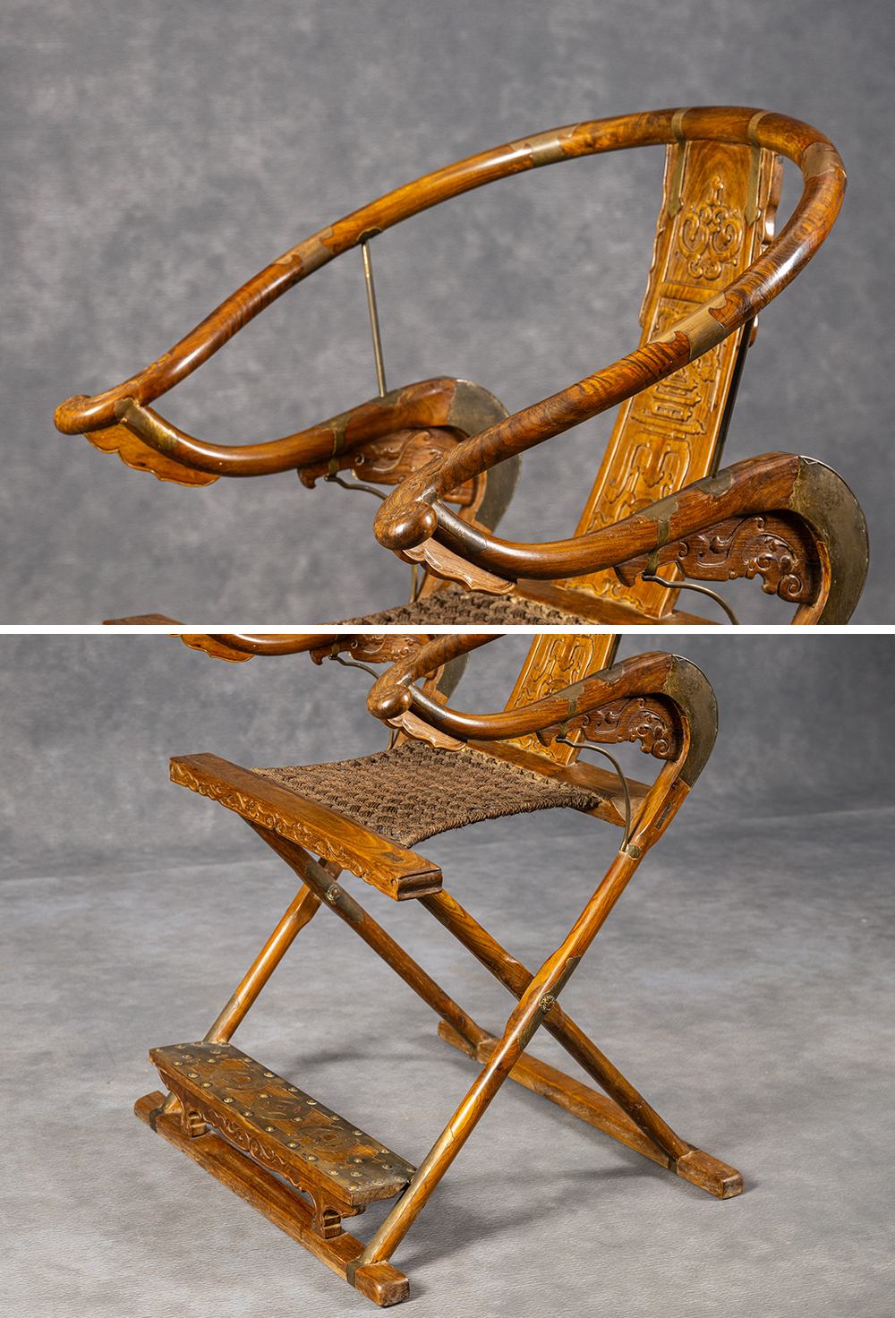 清 黄花梨螭龙捧寿交椅