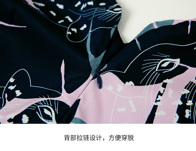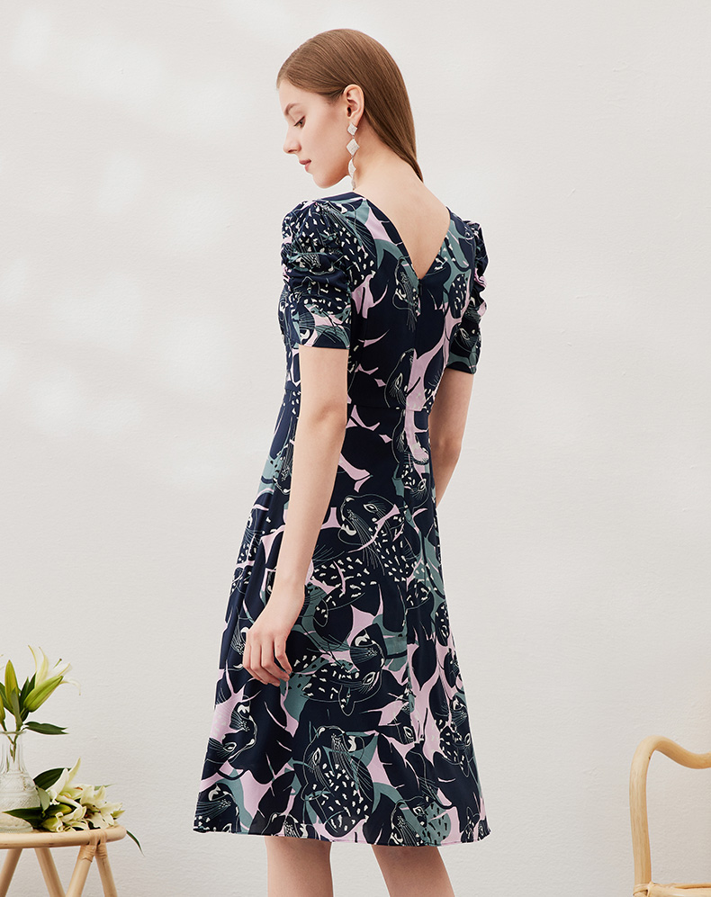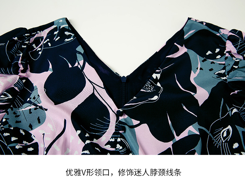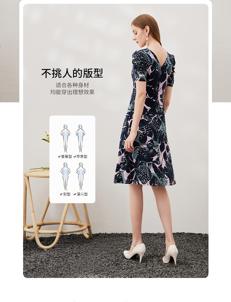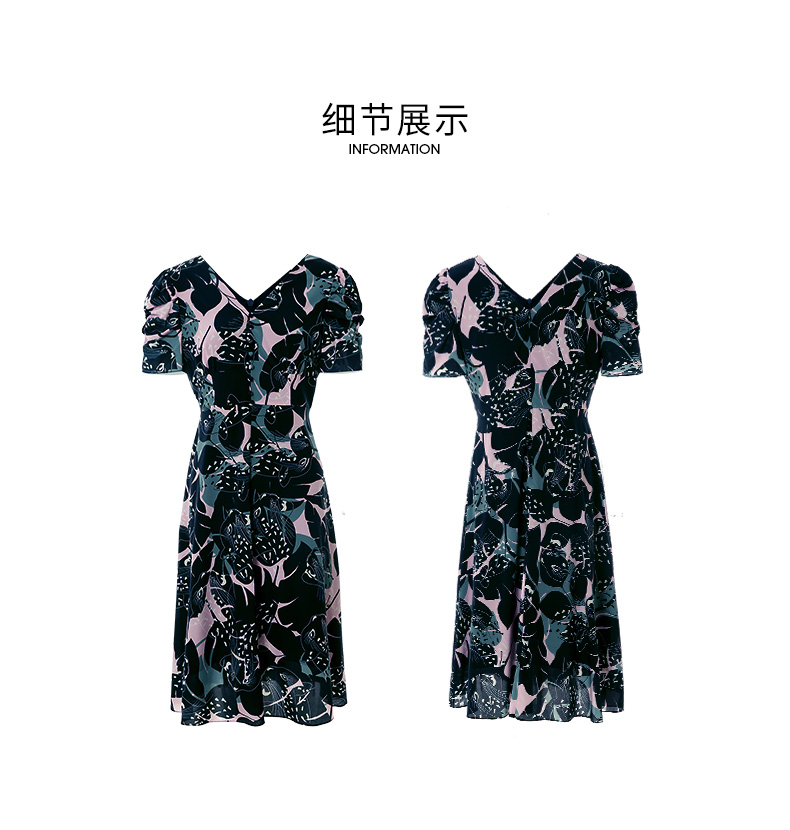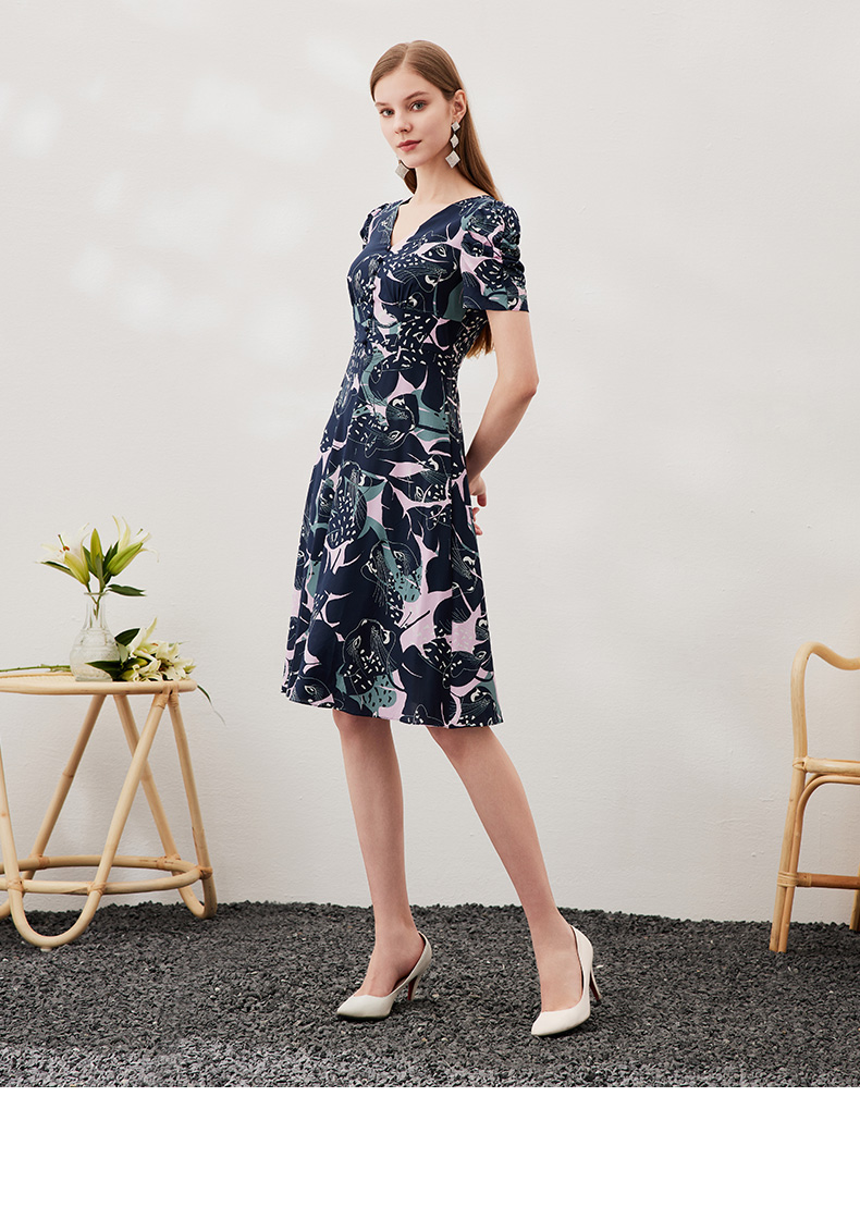 EITIE爱特爱夏款新品时尚V领显瘦高腰舒适印花连衣裙7007769