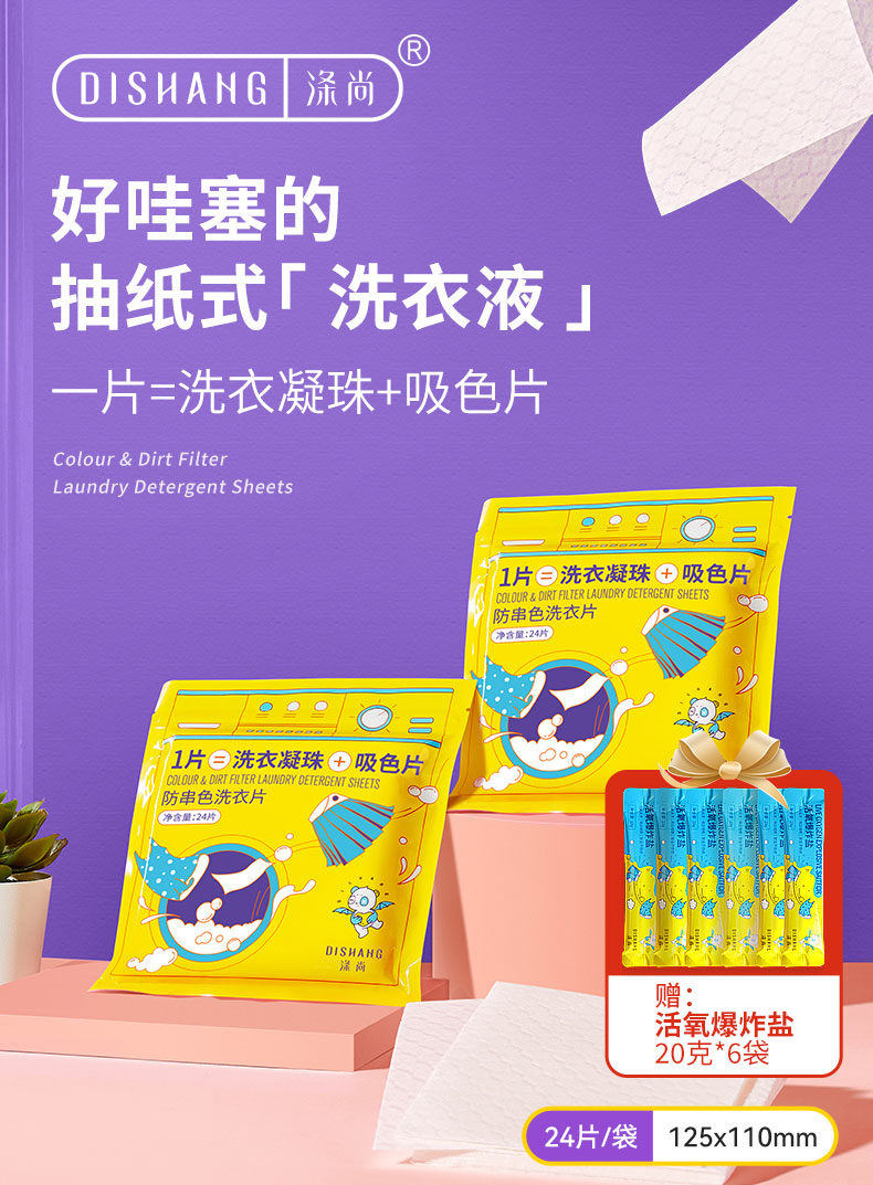 涤尚防串染洗衣片2袋装(送120克爆炸盐)