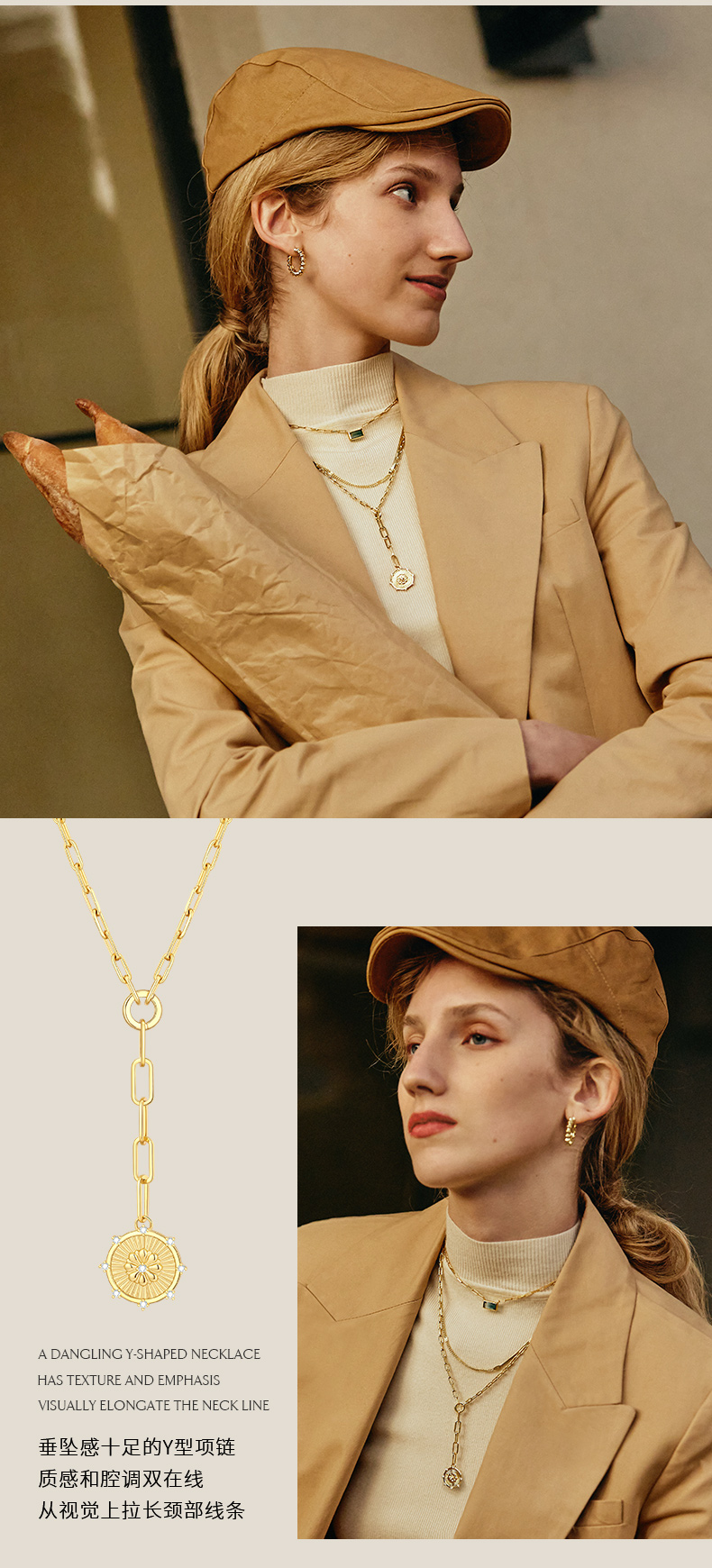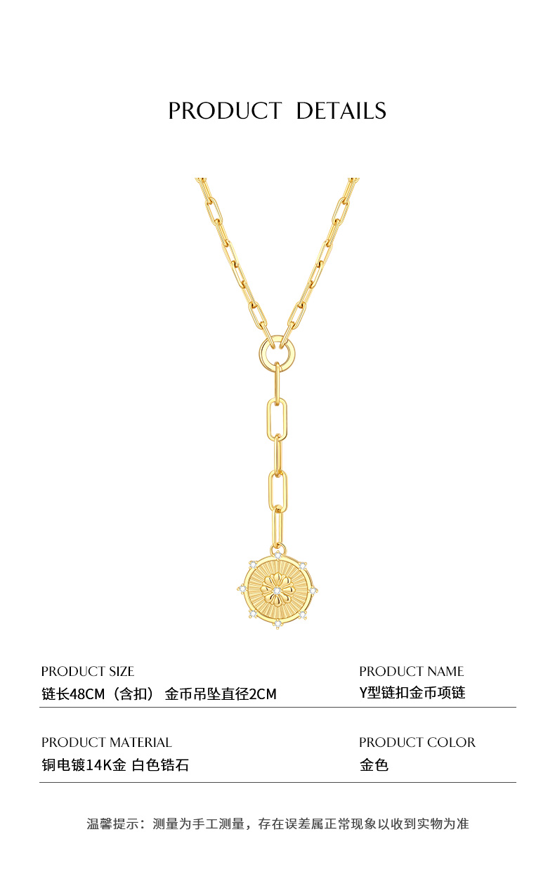复古Y型链 ONCHIC Y型链扣金币项链毛衣链