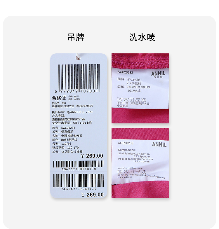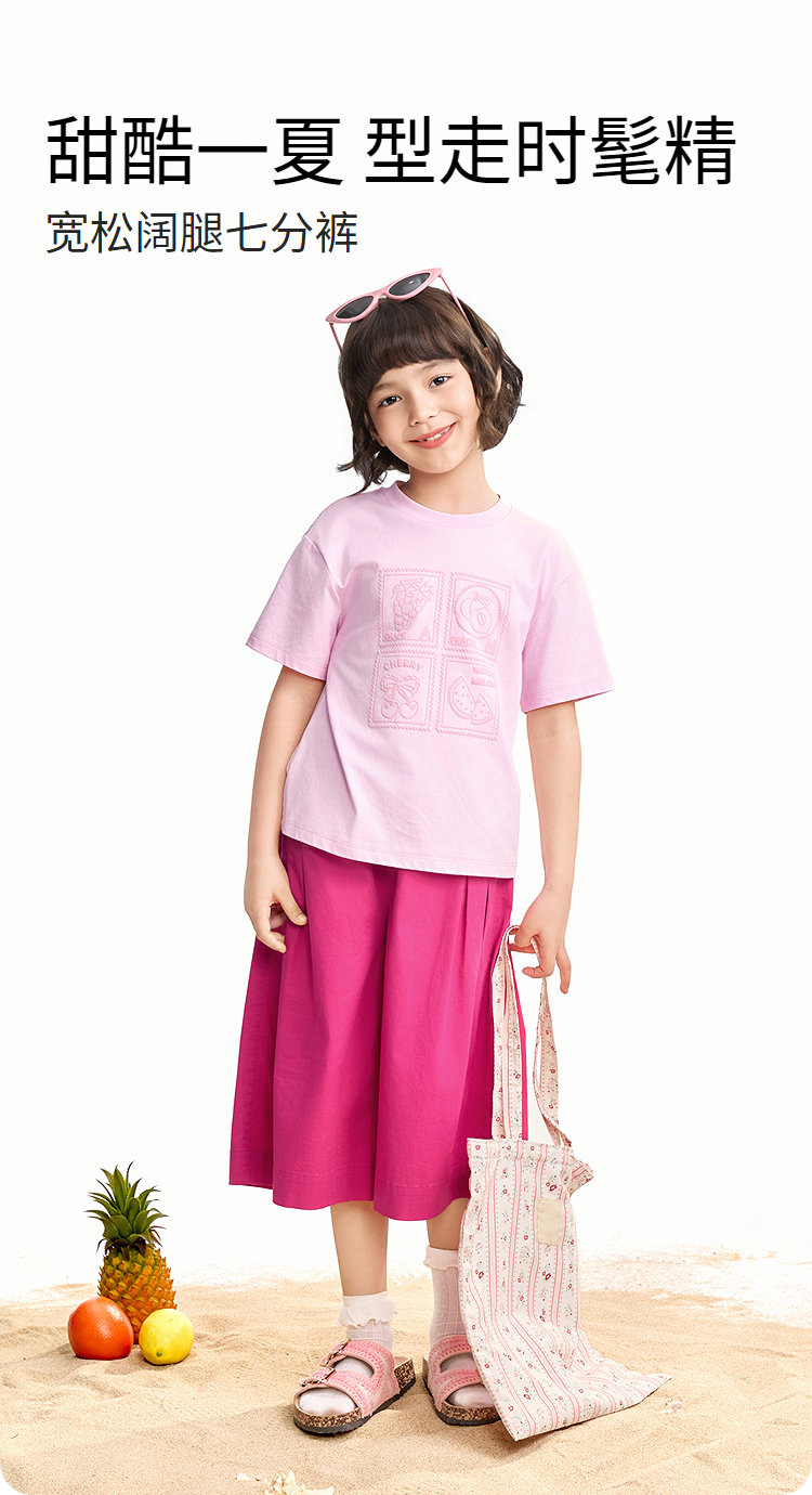 【实体店同款】女童全腰梭织七分裤夏季新款安奈儿童装AG626233