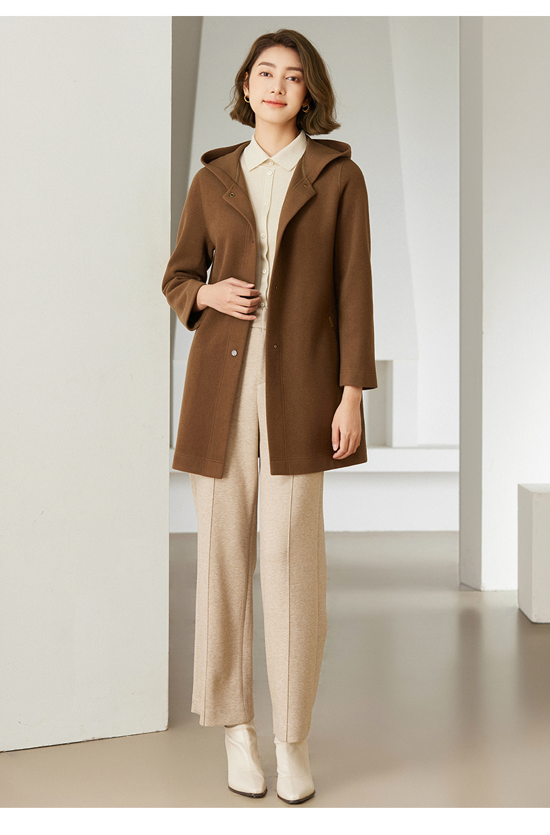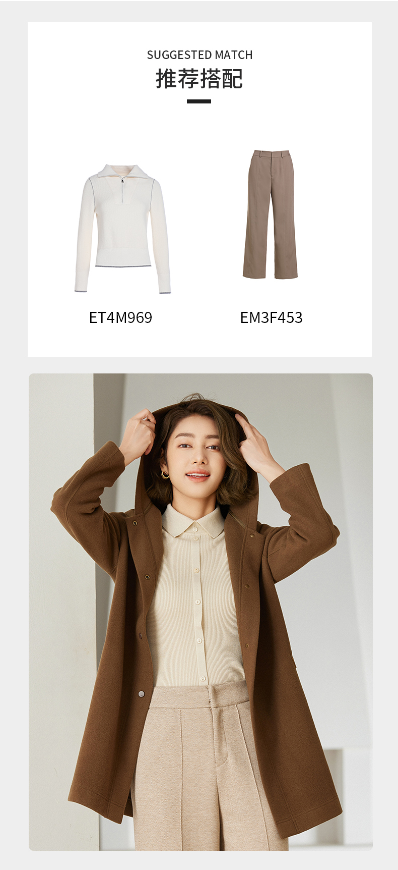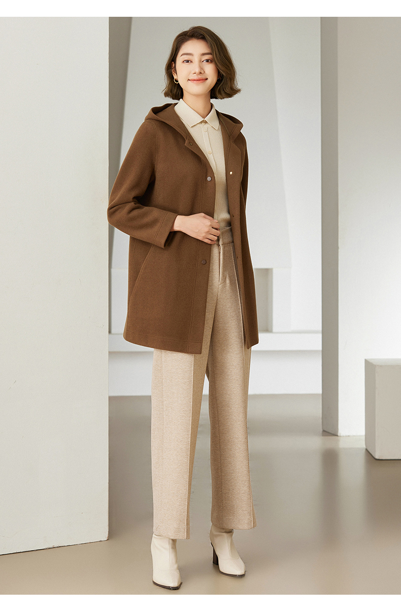 乔万尼羊毛大衣连帽减龄设计呢子外套EM4A593