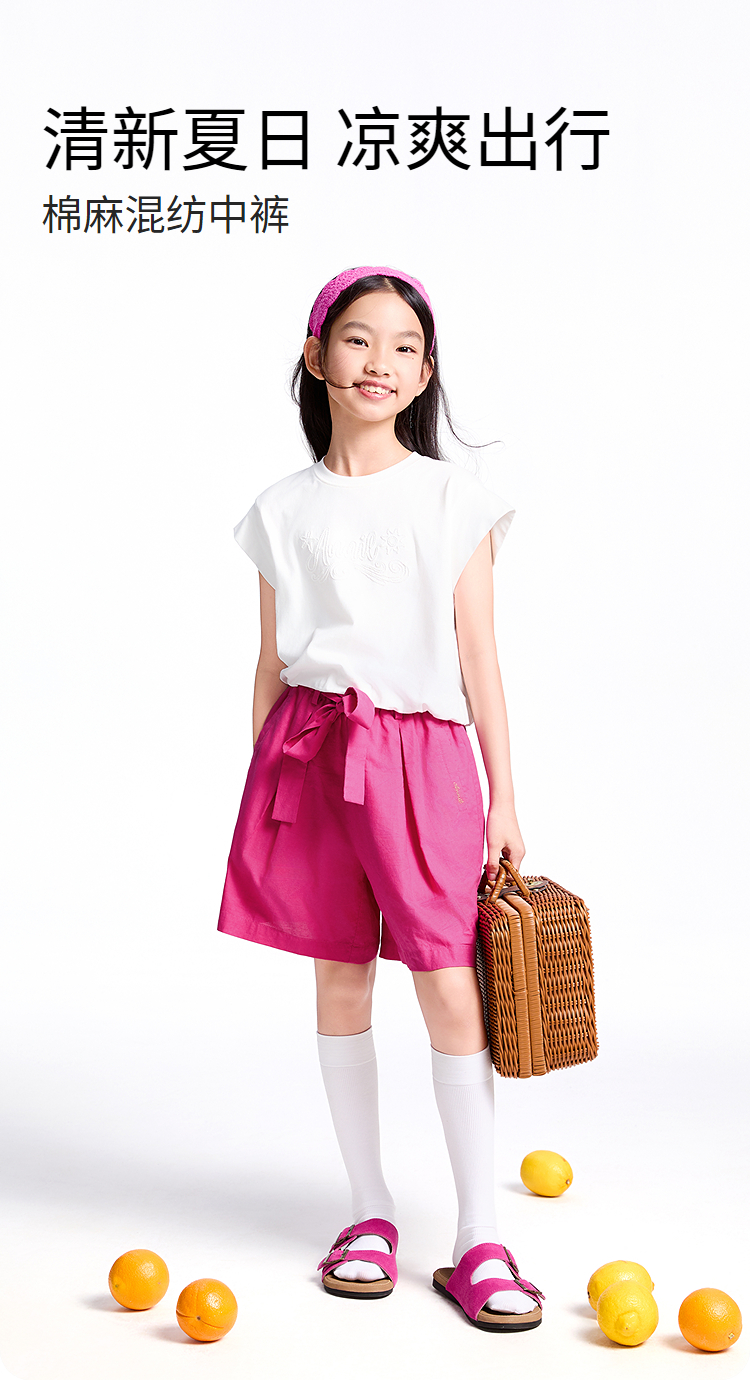 【实体店同款】女童全腰梭织中裤夏季新款安奈儿童装AG526684