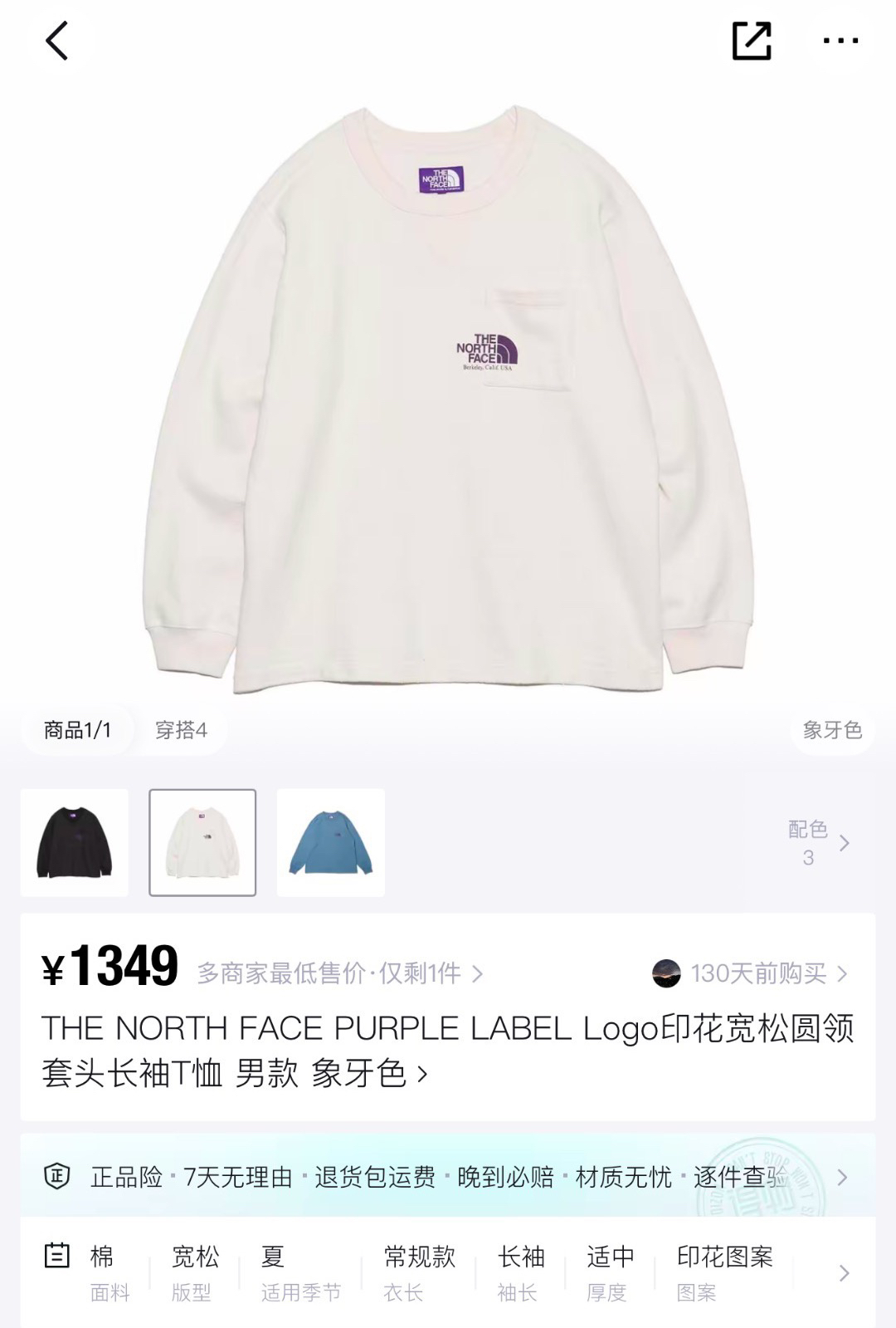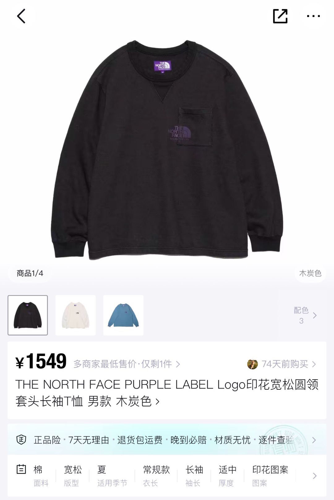日单北面紫标口袋卫衣打底衫长袖