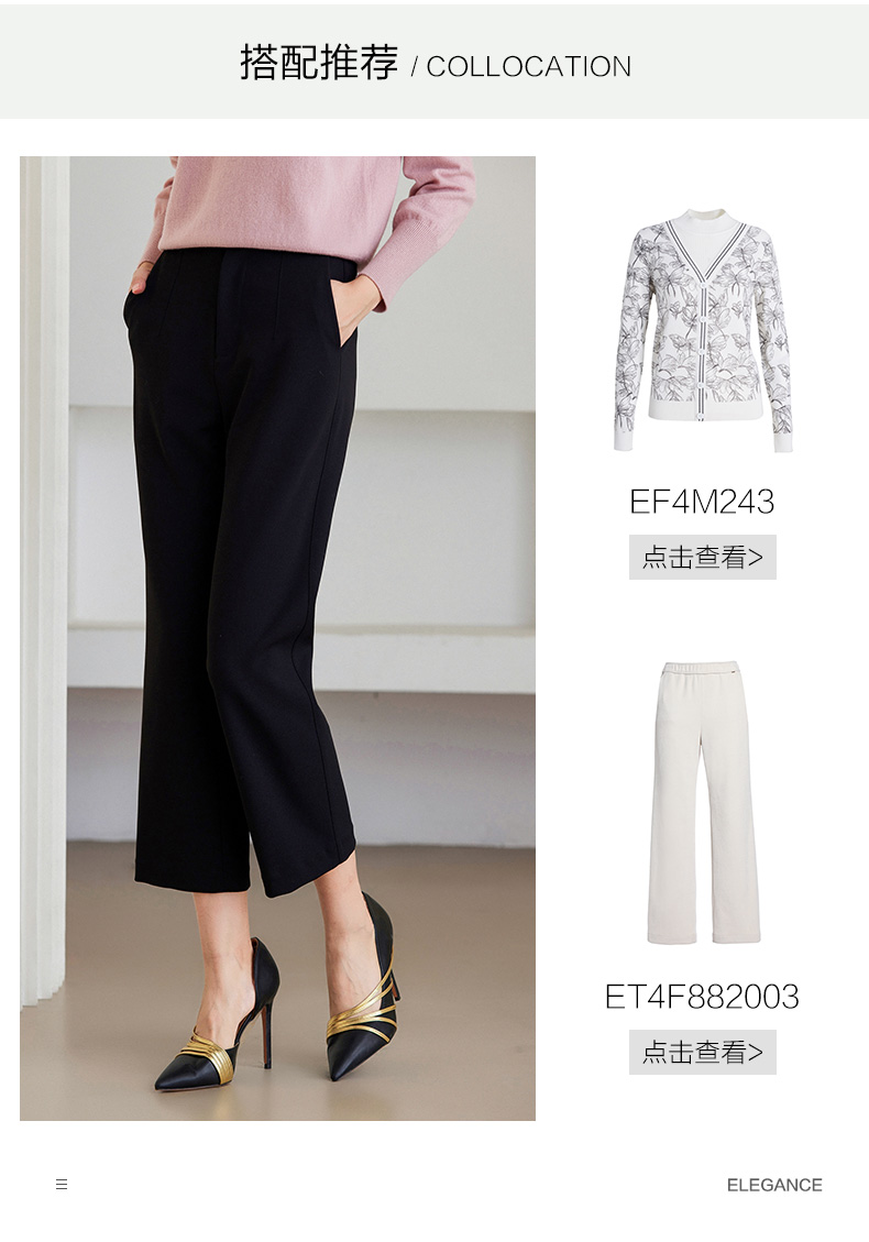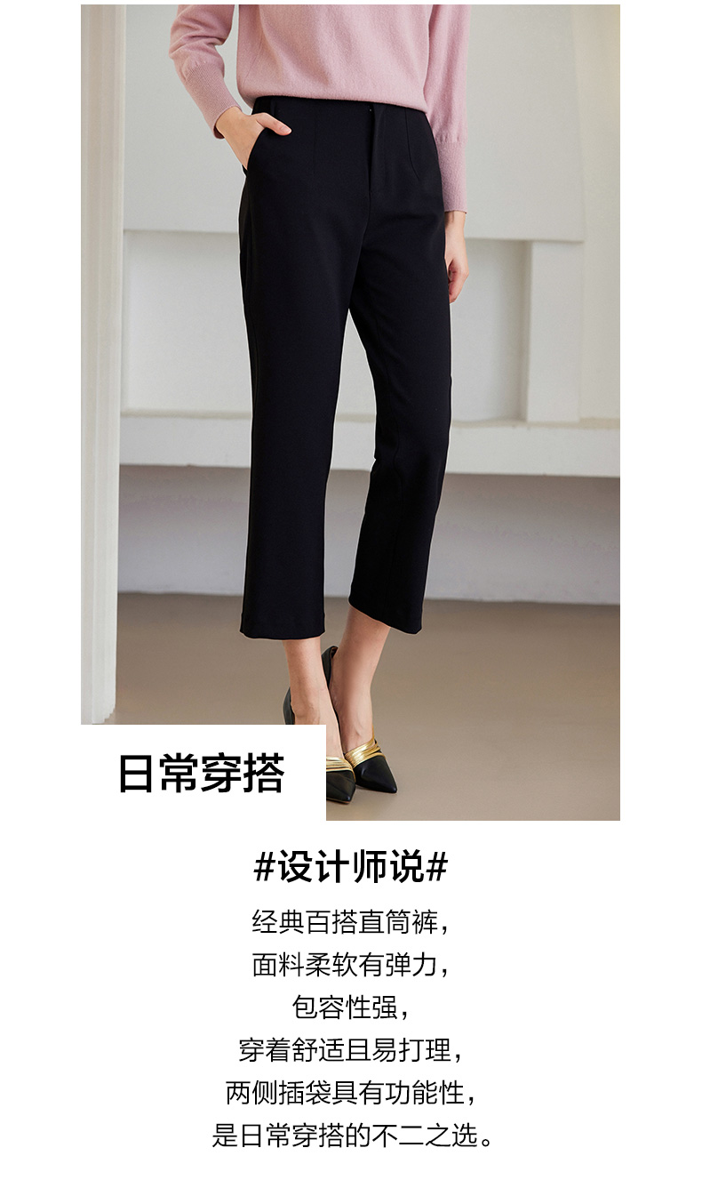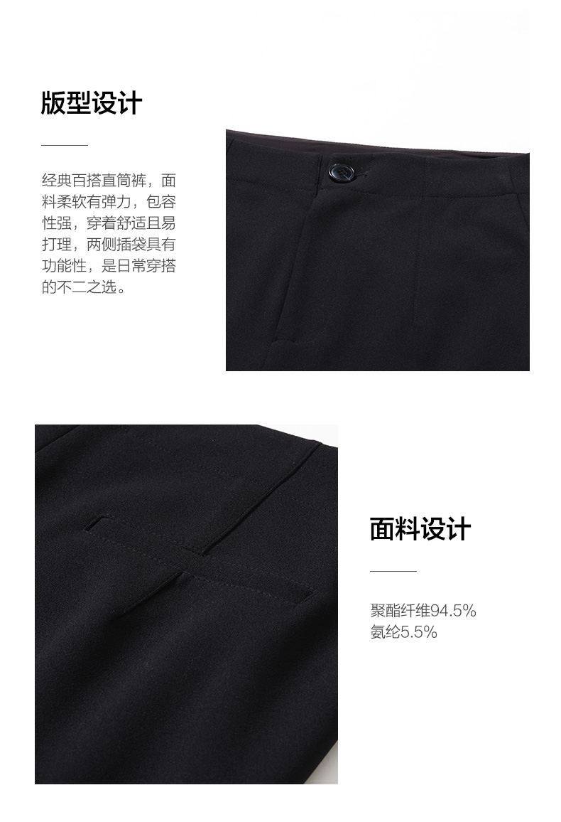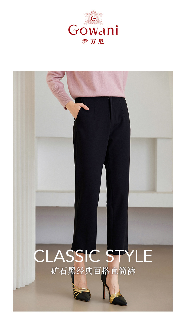 乔万尼女休闲裤新款秋冬直筒黑色显瘦百搭ET4F887
