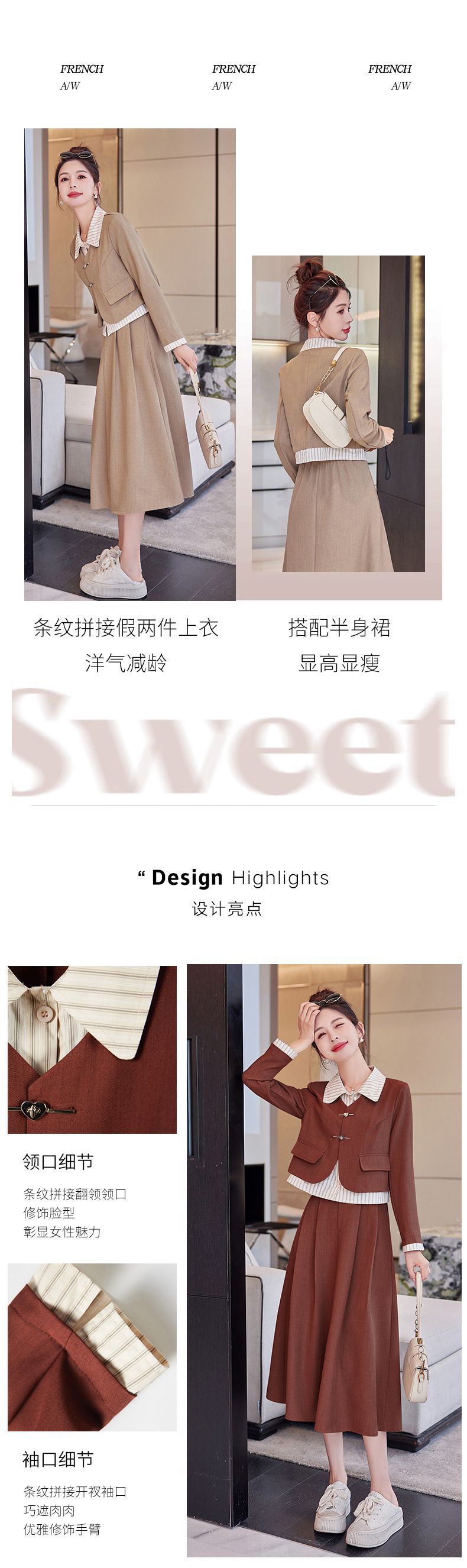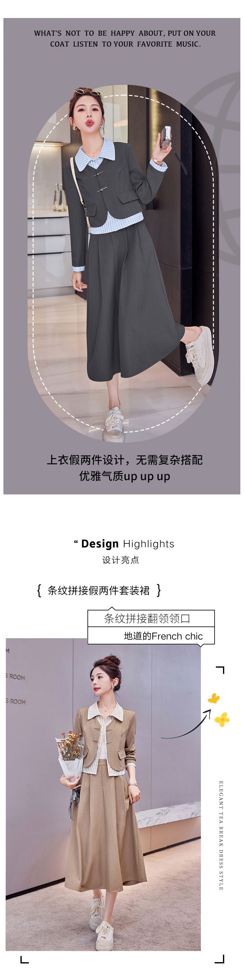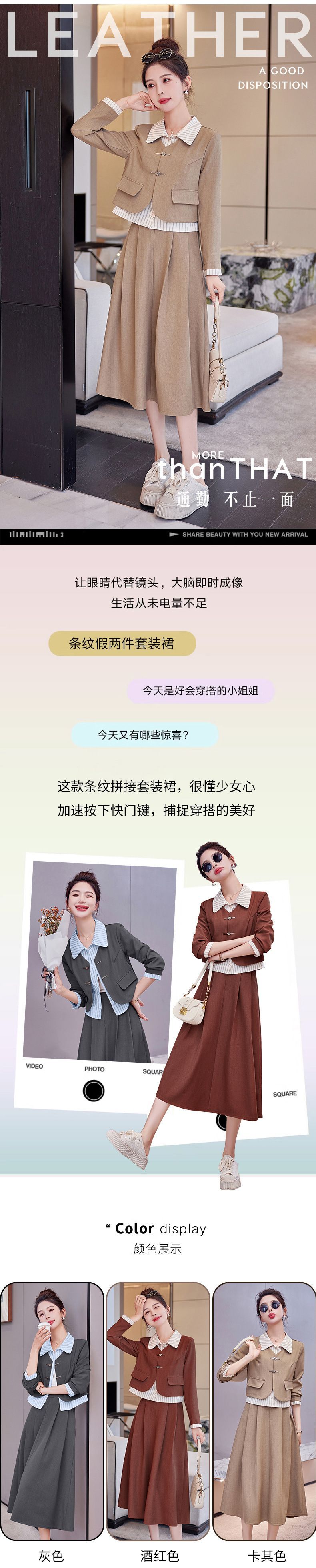 春装新款条纹拼色假两件上衣+半裙套装NSYY8867
