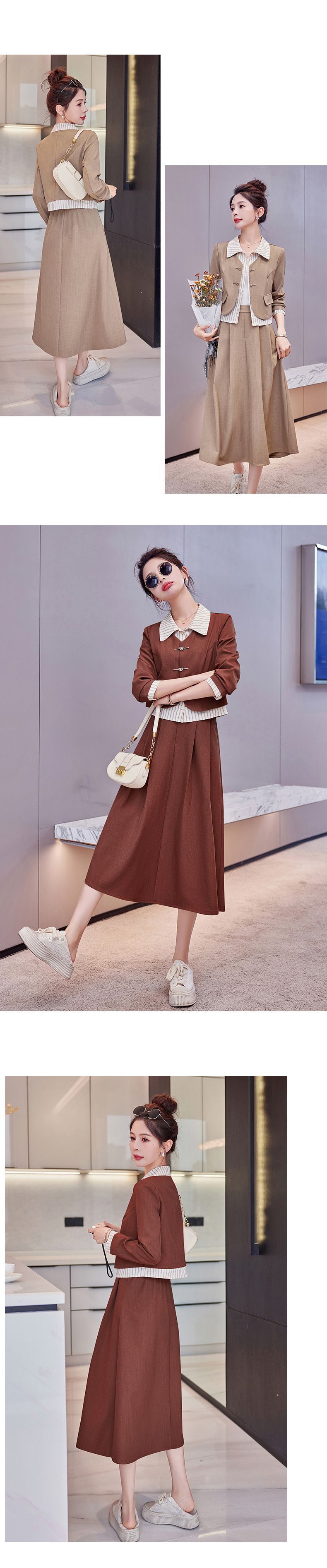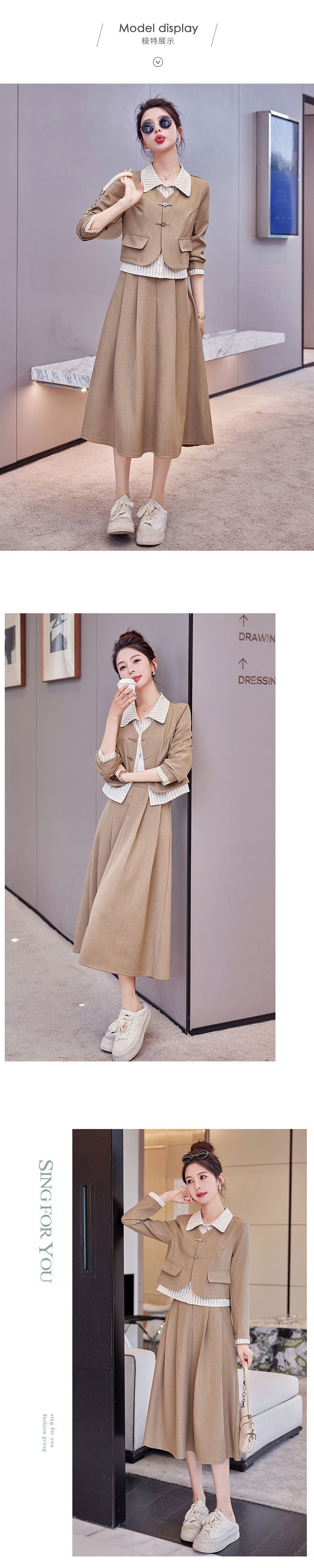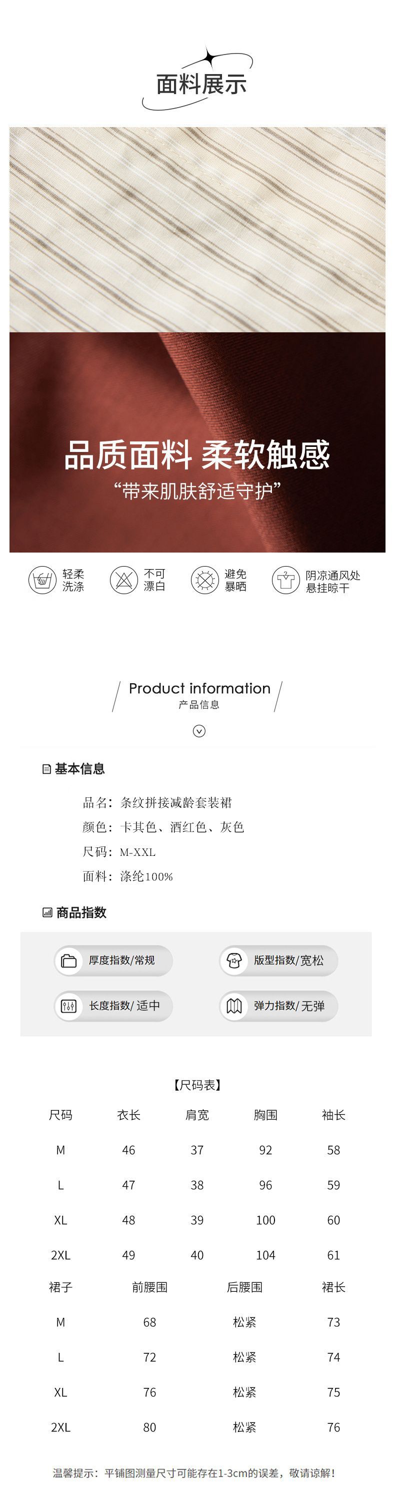 春装新款条纹拼色假两件上衣+半裙套装NSYY8867