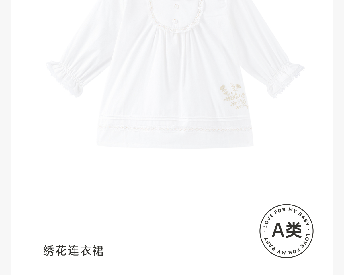 【商场同款】英氏女童连衣裙春秋夏季宝宝荷叶边领长袖裙子