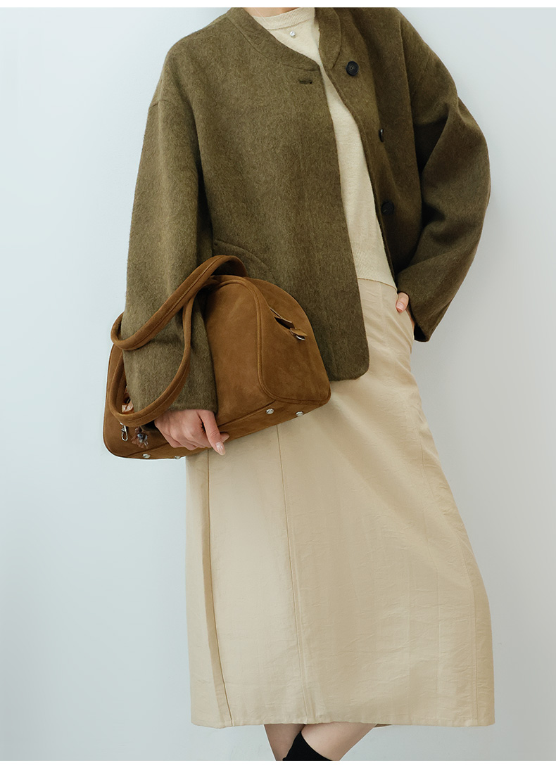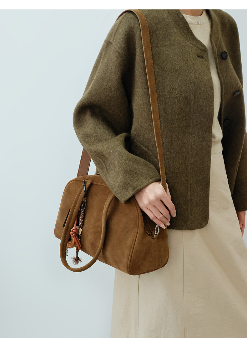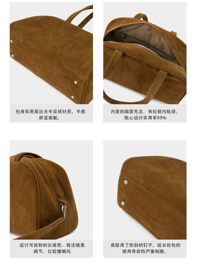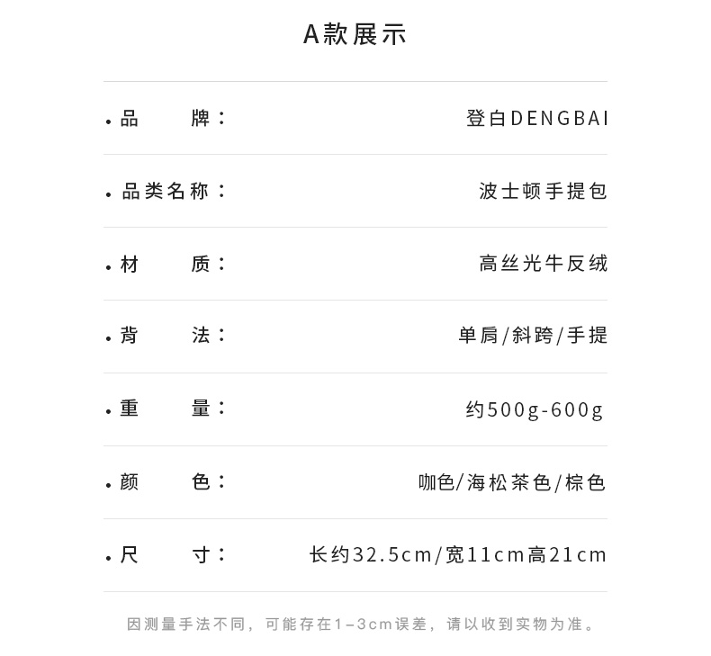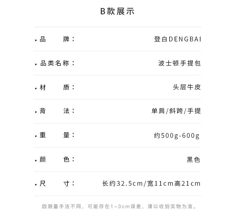 登白DENGBAI 波士顿手提托特包高丝光牛反绒