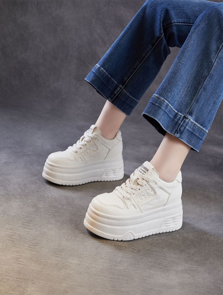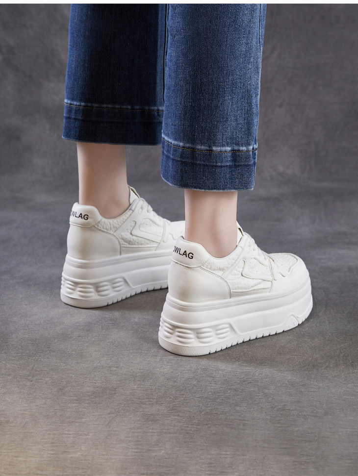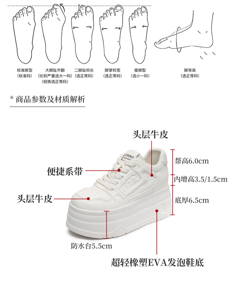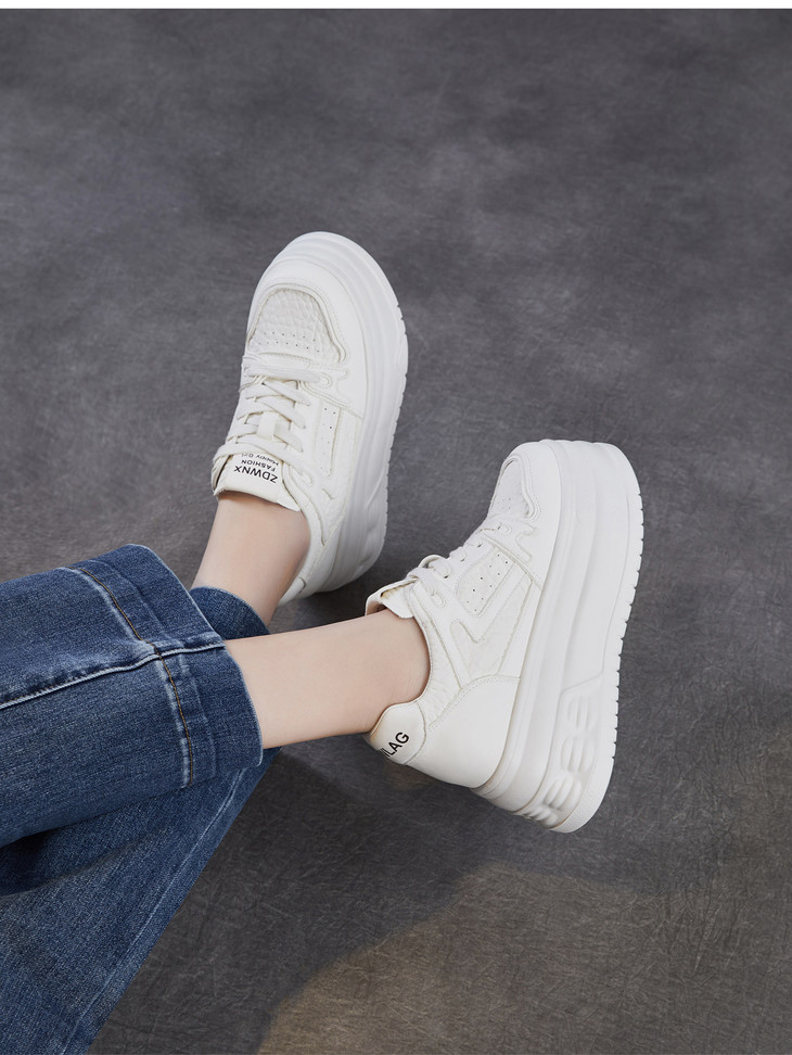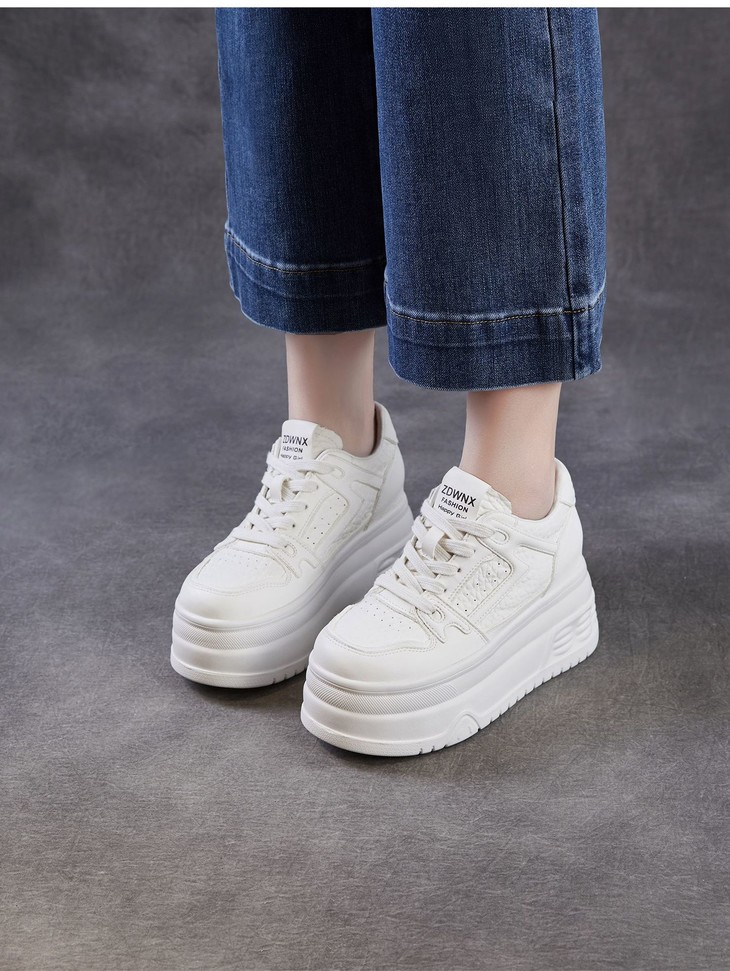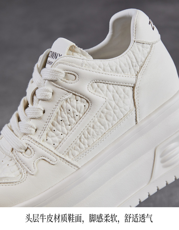 轻便全头层牛皮专业内增高女鞋8CM厚底松糕小白鞋ZM269001