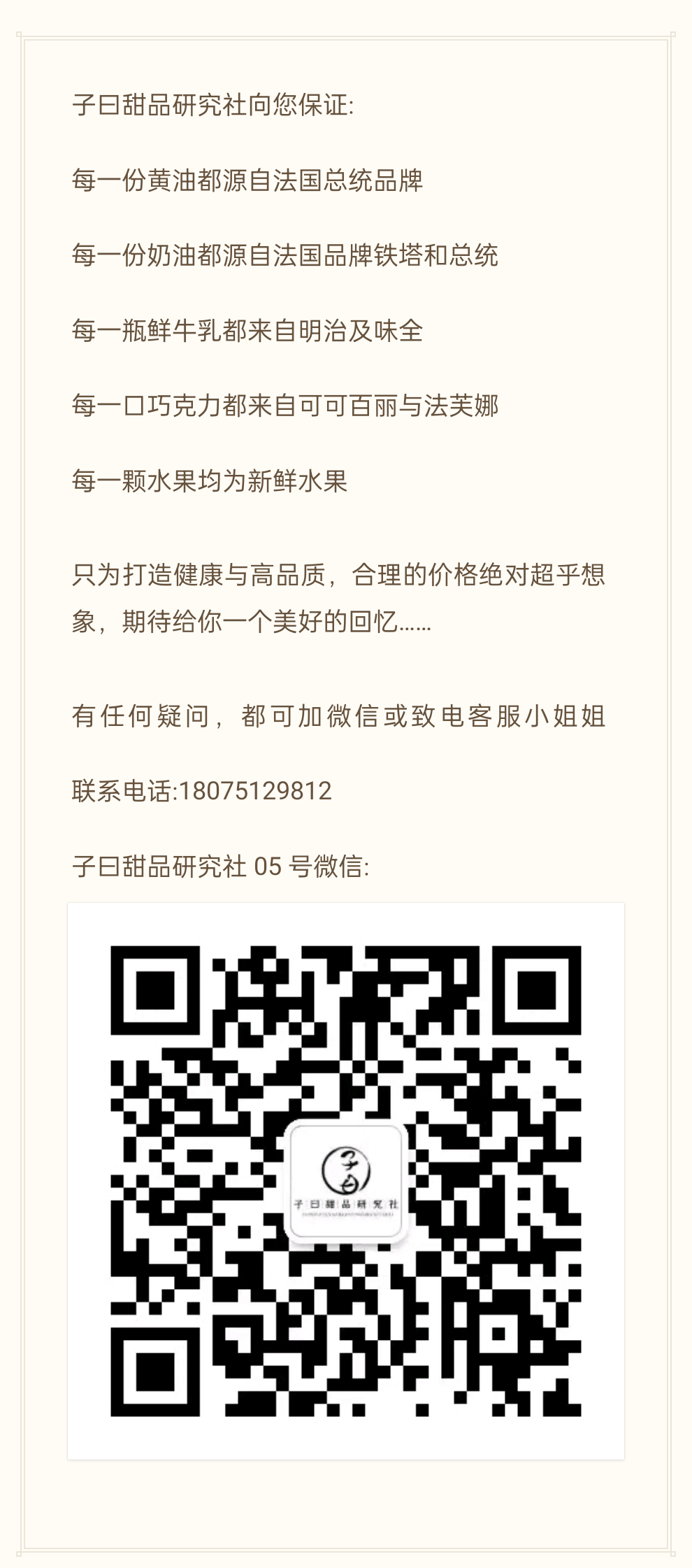 - 子曰:美味健康,可以兼得。专注口味蛋糕和高端定制蛋糕,小程序即可下单。18075129812