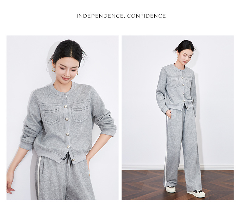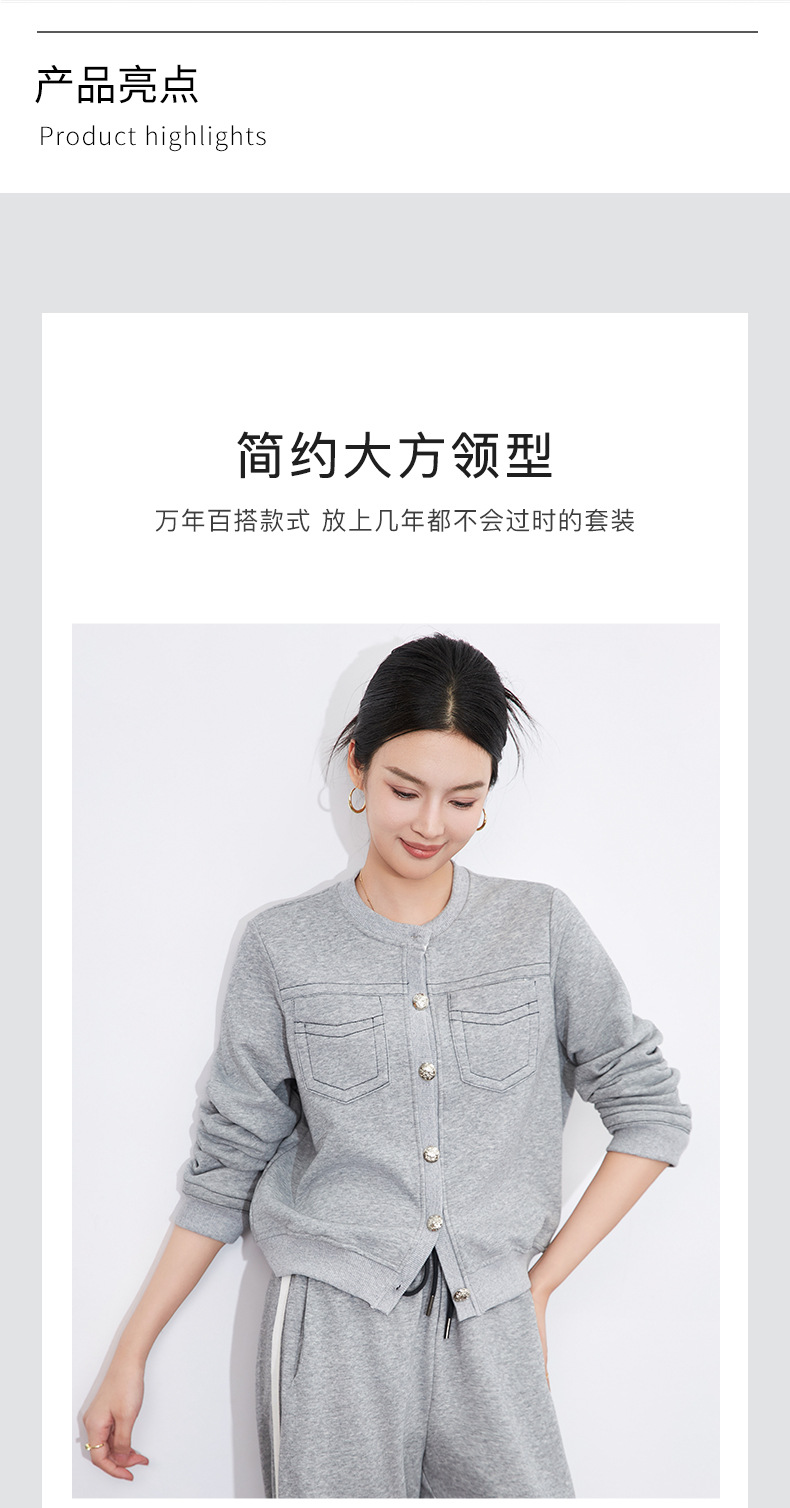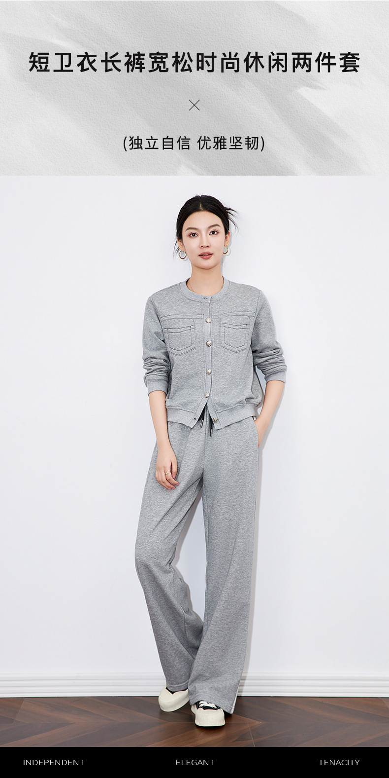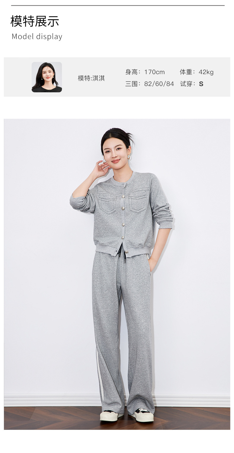 【高货wl】全新升级【铂金会员330/天猫439/差价109】(55008) 洛诗琳秋冬休闲时尚明线双口袋短款外套时髦休闲裤两件套